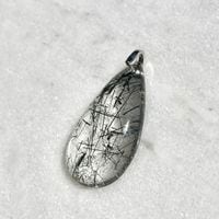 こちらはガネッシュヒマール産(ガネーシャ神の名がついた聖なる山)の通称「グリーンルチル」(鉱物名はアクチノライトインクォーツ)のペンダントです。