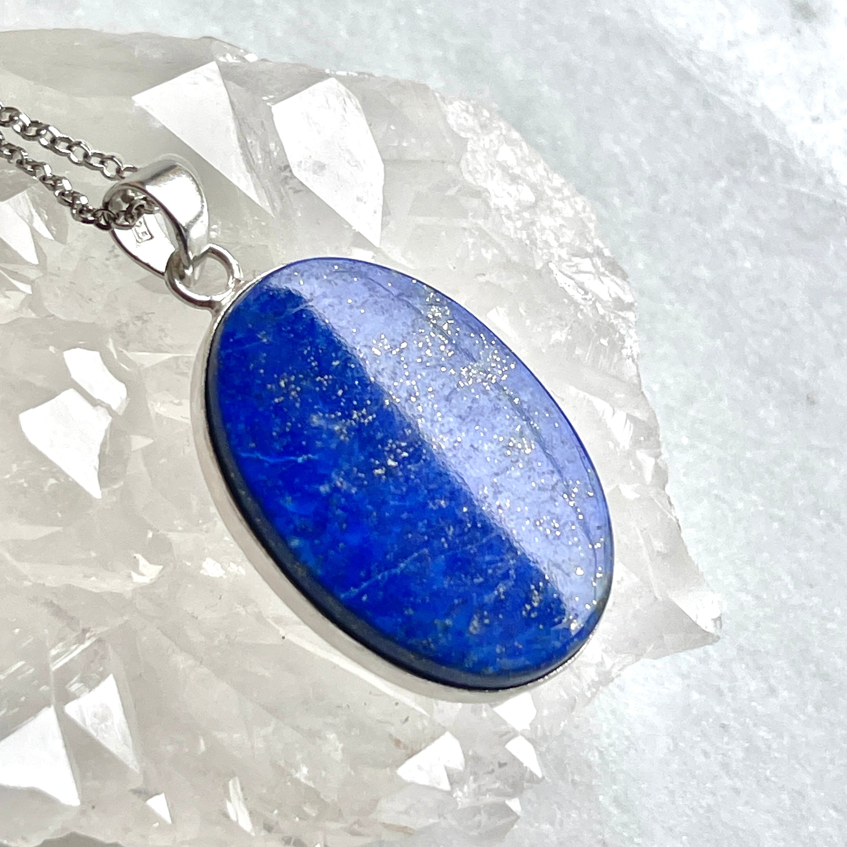 【超美石】ラピスラズリ オーバル型 ペンダント(チェーンつき) 5108