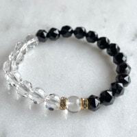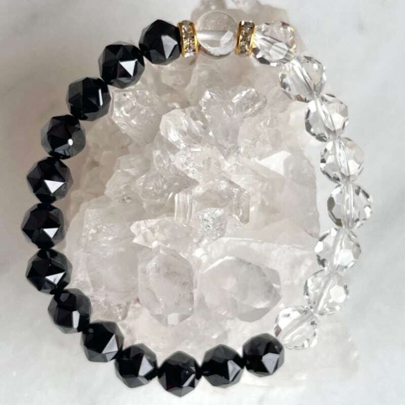 バッキーボール形の水晶と、ポイントには一粒、ヒマラヤ水晶を組み合わせたエマオリジナルのブレスレットです。