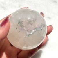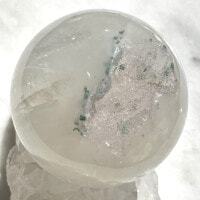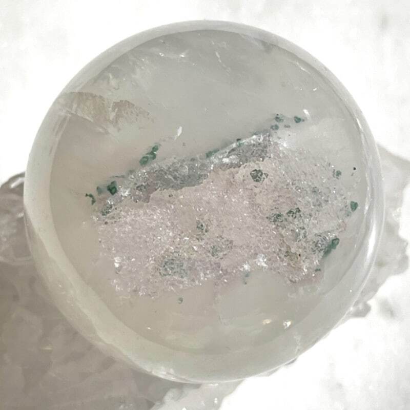 • 【超美石】ホワイトアゲート(水晶) 笑い口 丸玉(虹入り)(台座つき)