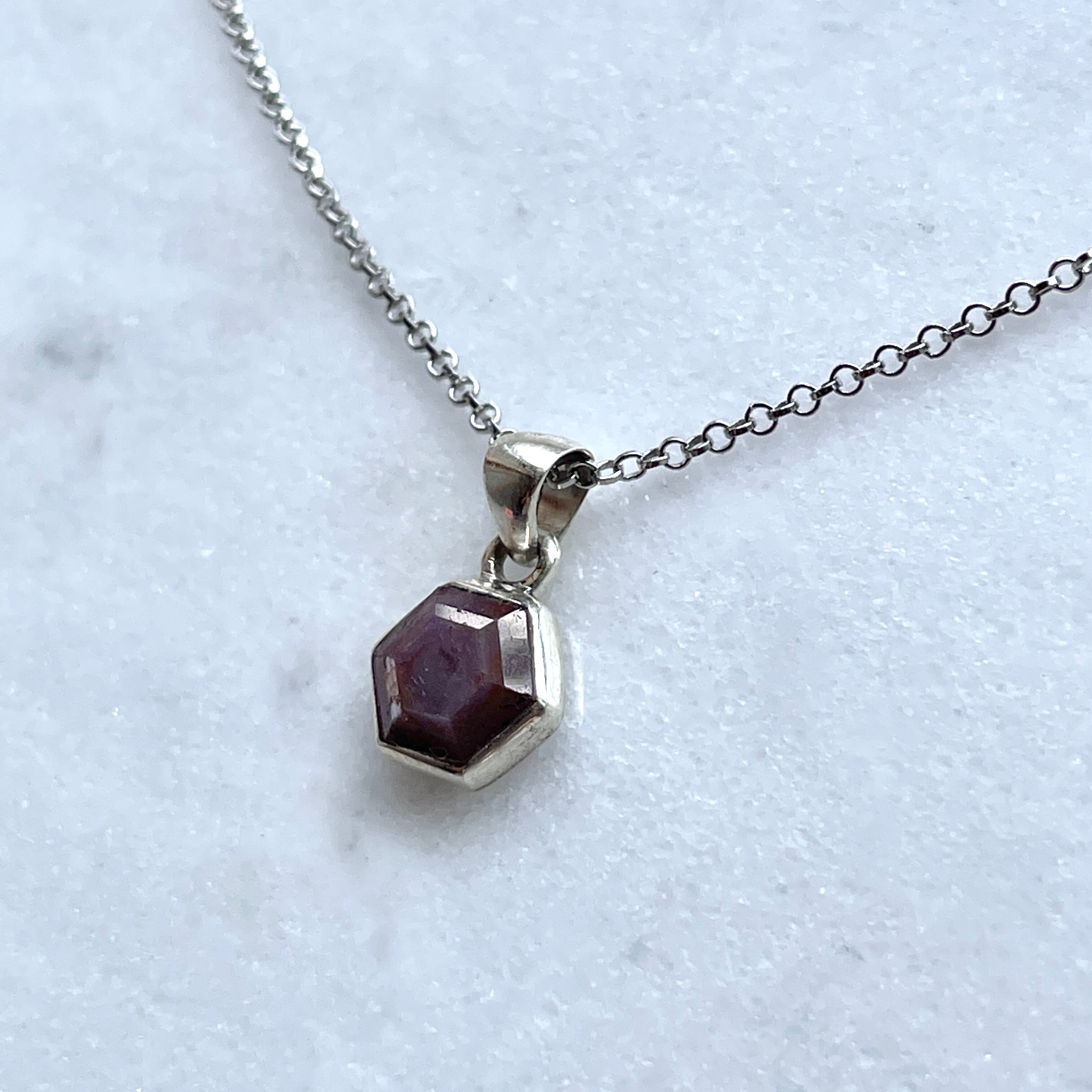六角形(ヘキサゴン)の非加熱ルビーペンダントです。