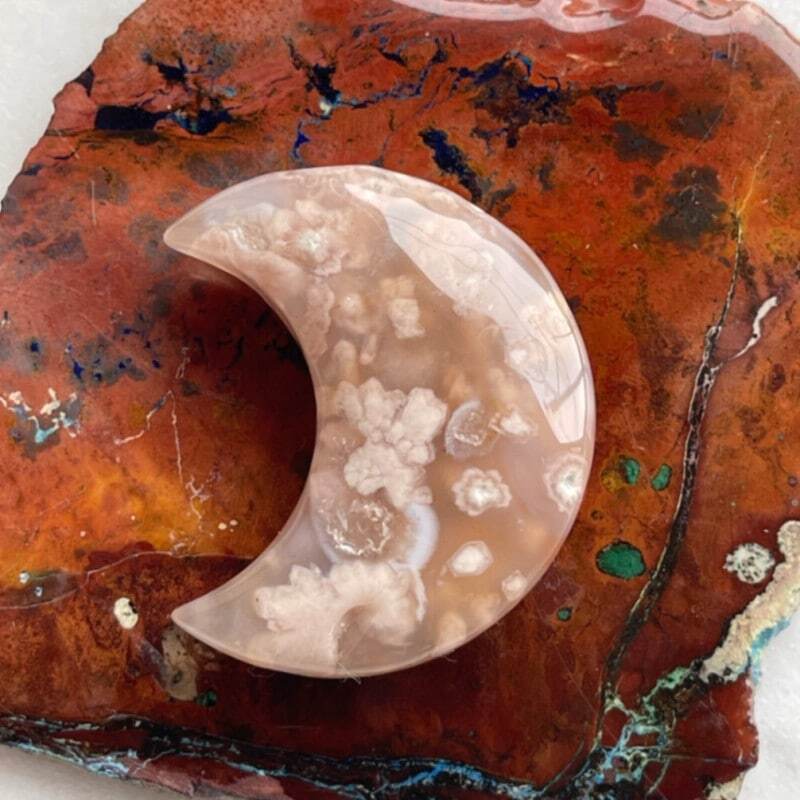 桜のお花のような模様が美しい瑪瑙を「桜瑪瑙」と呼びます。ツルツルしていて、握っていて心地いいです。
