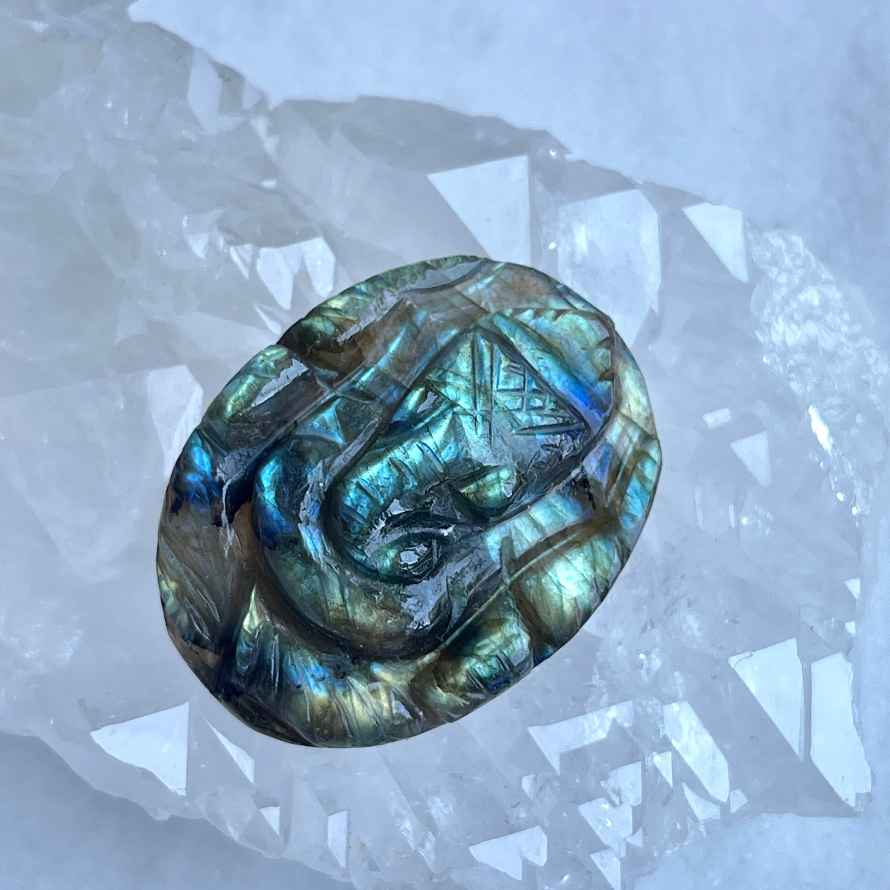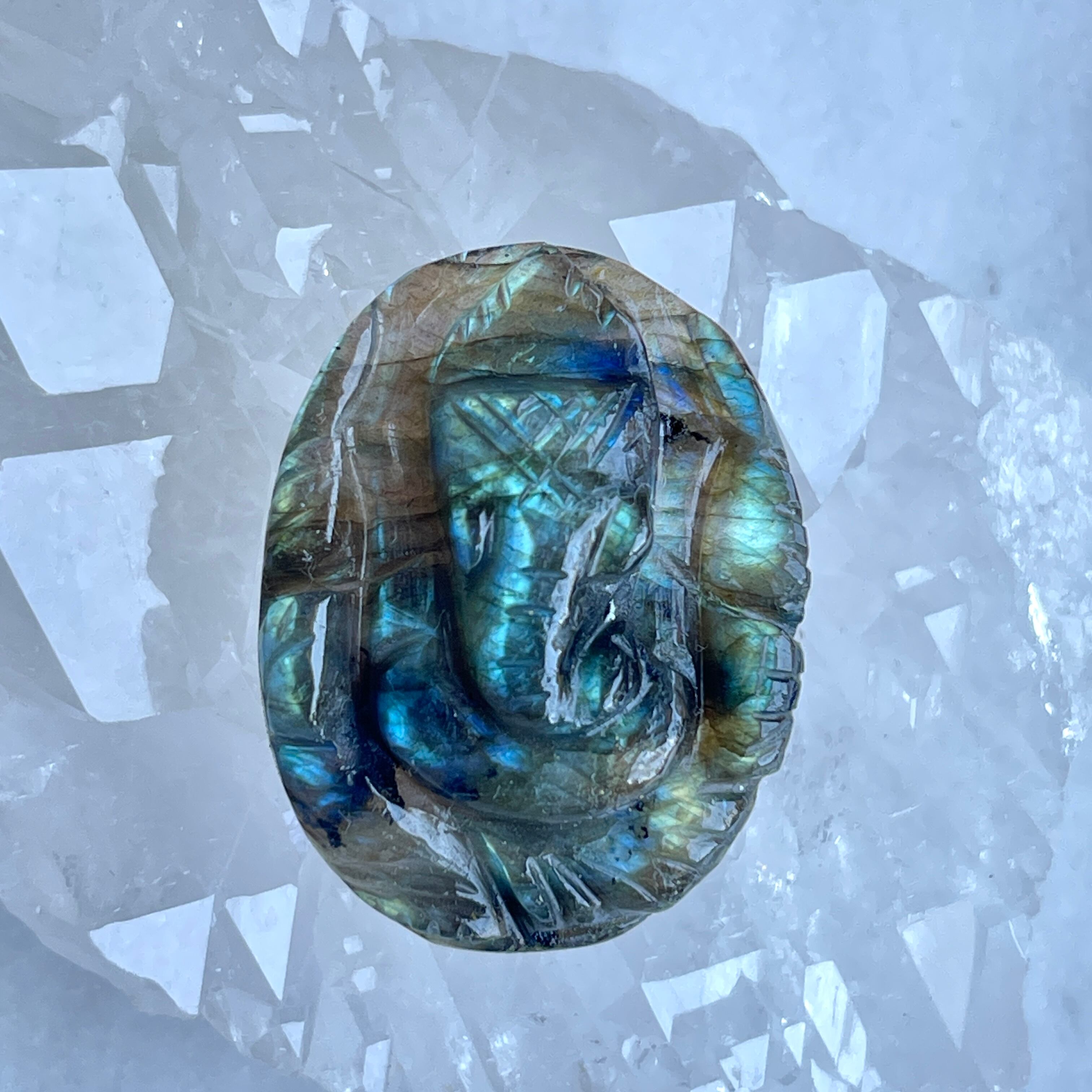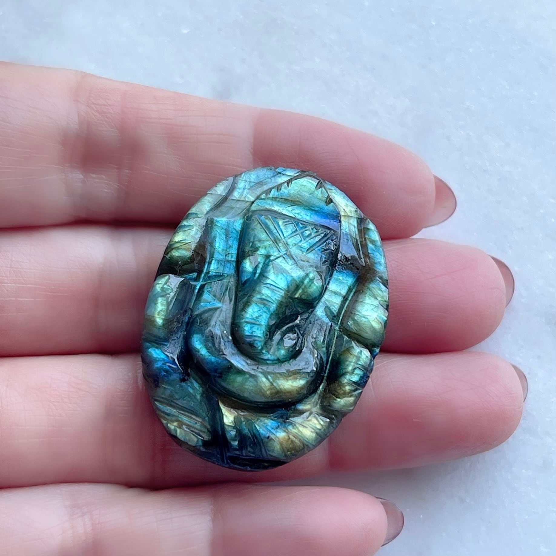 • 【超美石】ガネーシャ神 ラブラドライト 成功のお守り タンブル(ポーチ付き) 8908