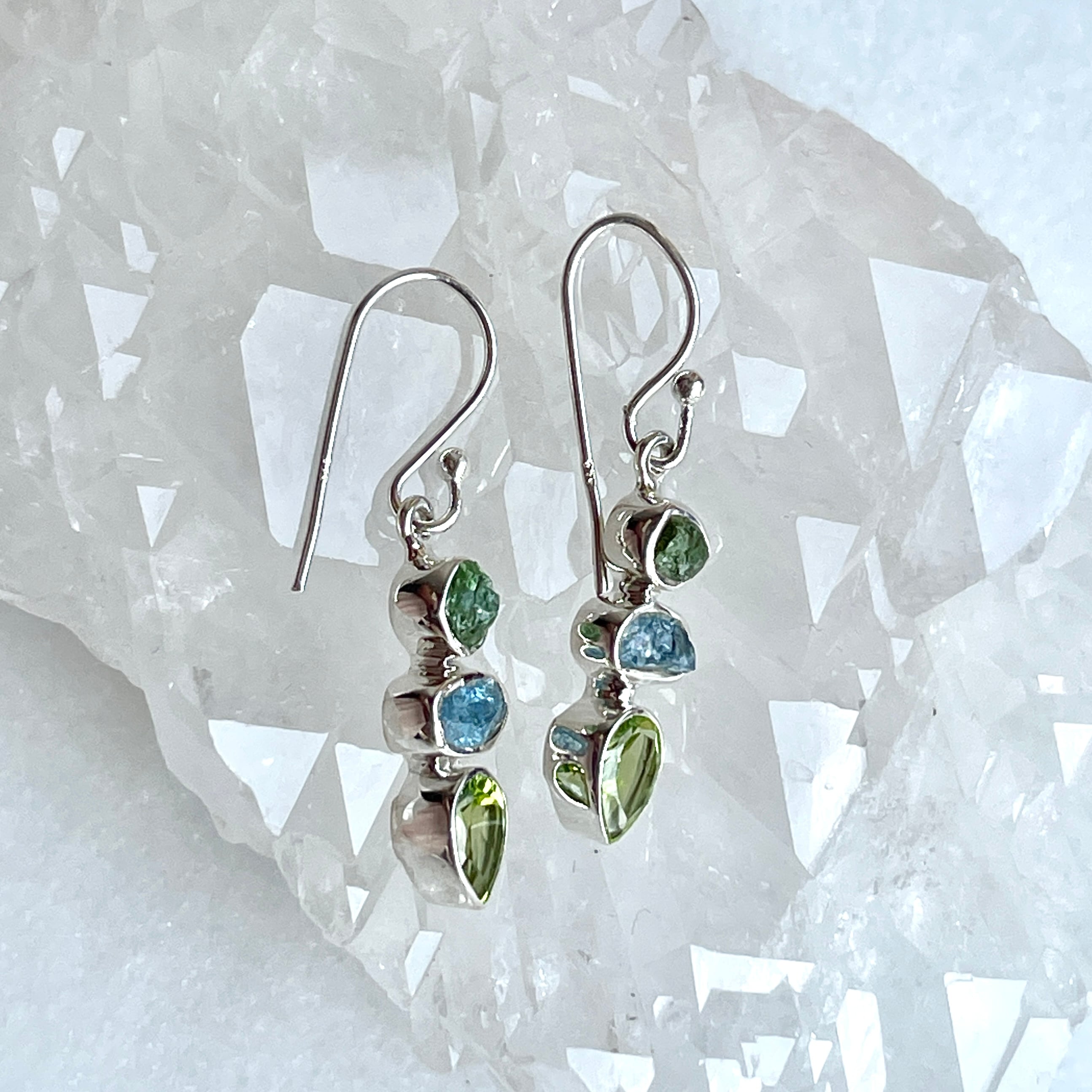 美しいペリドット、そして濃いブルーが魅力的なアクアマリンとトルマリン(レア石のグリーントルマリン)のピアス。