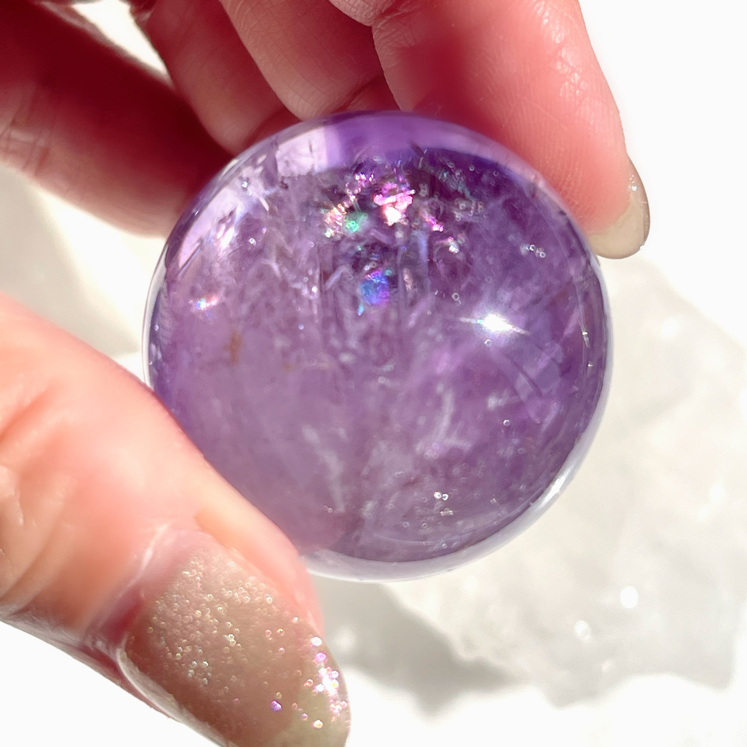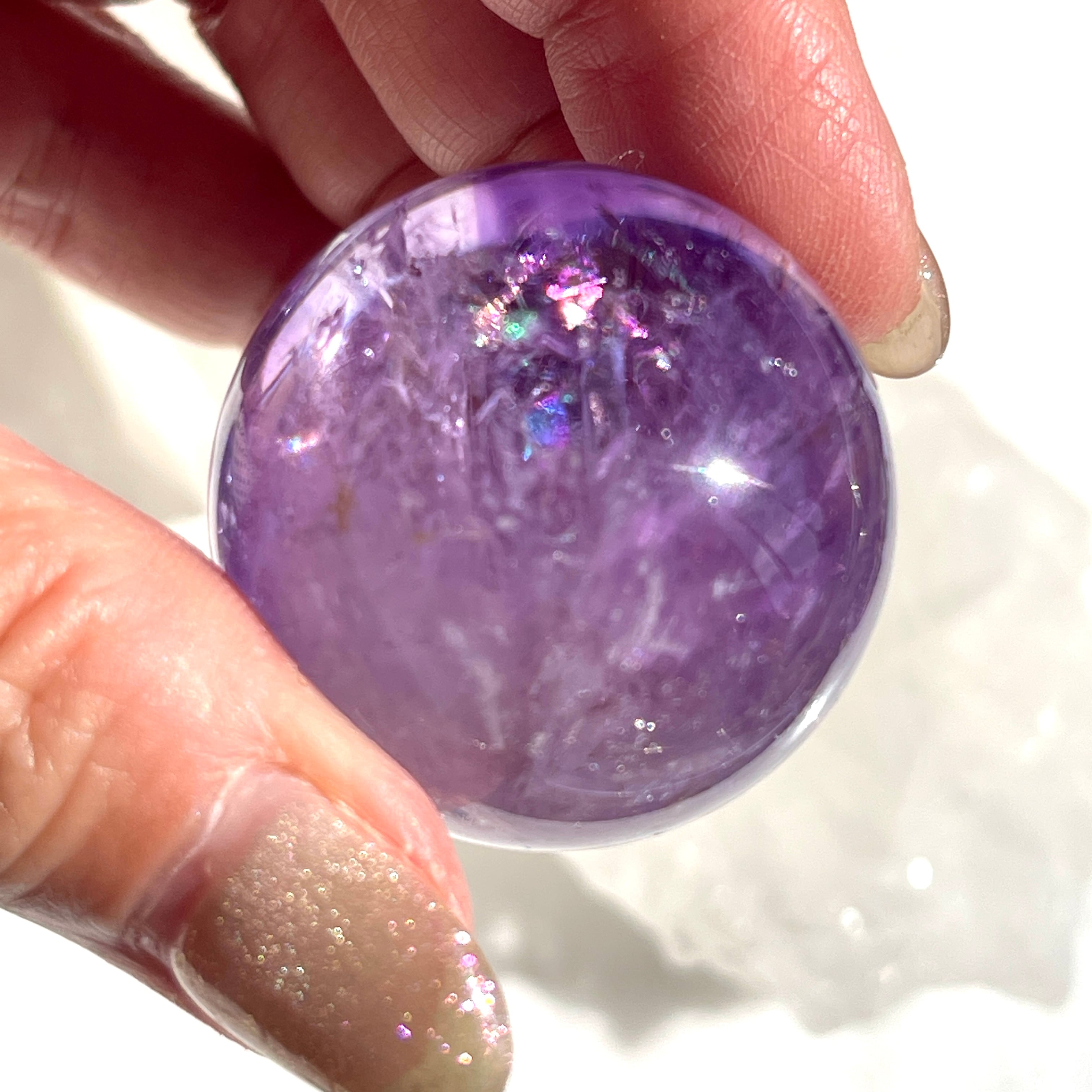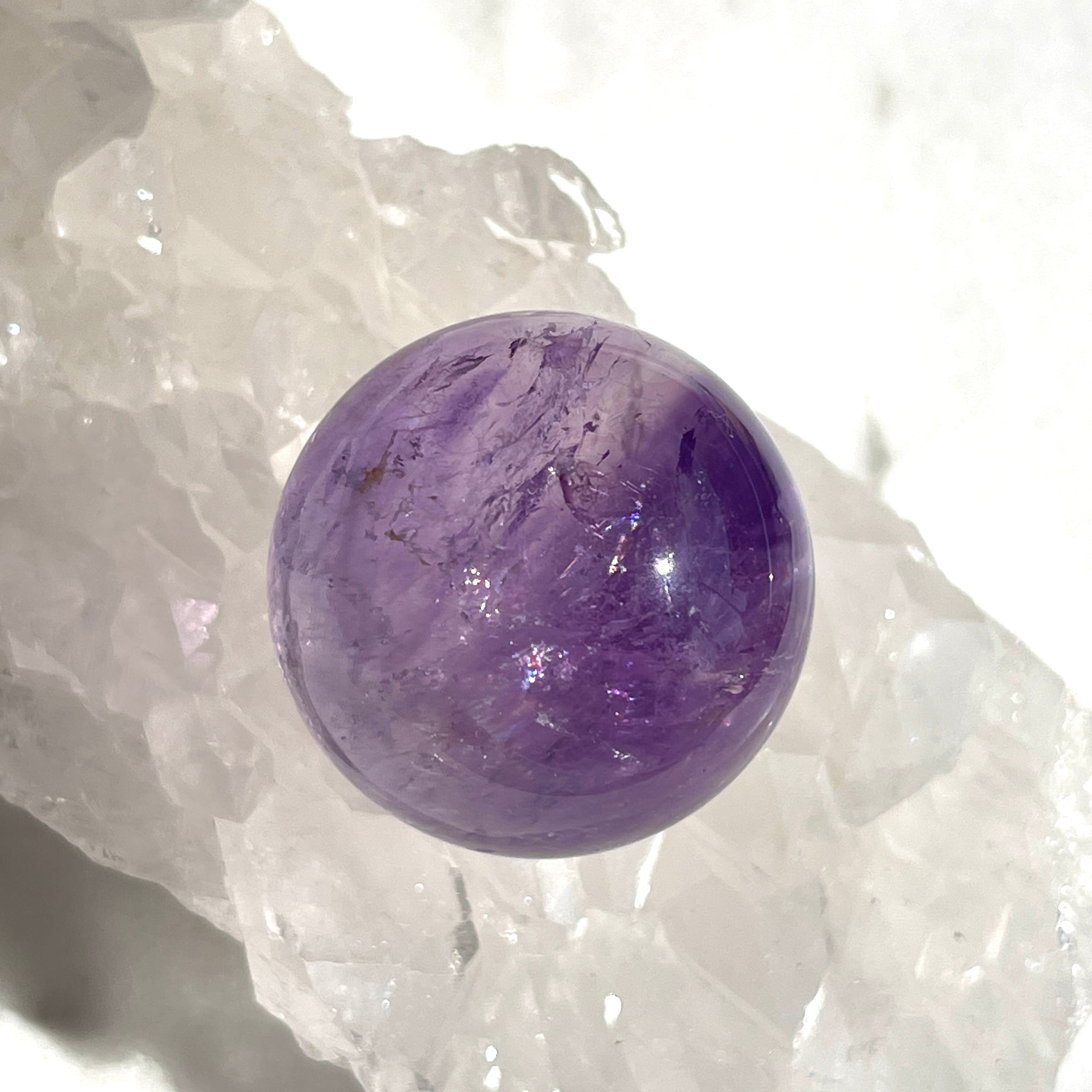 美しいアイリスアメジストの丸玉です。そのまま握り石としても使えます。