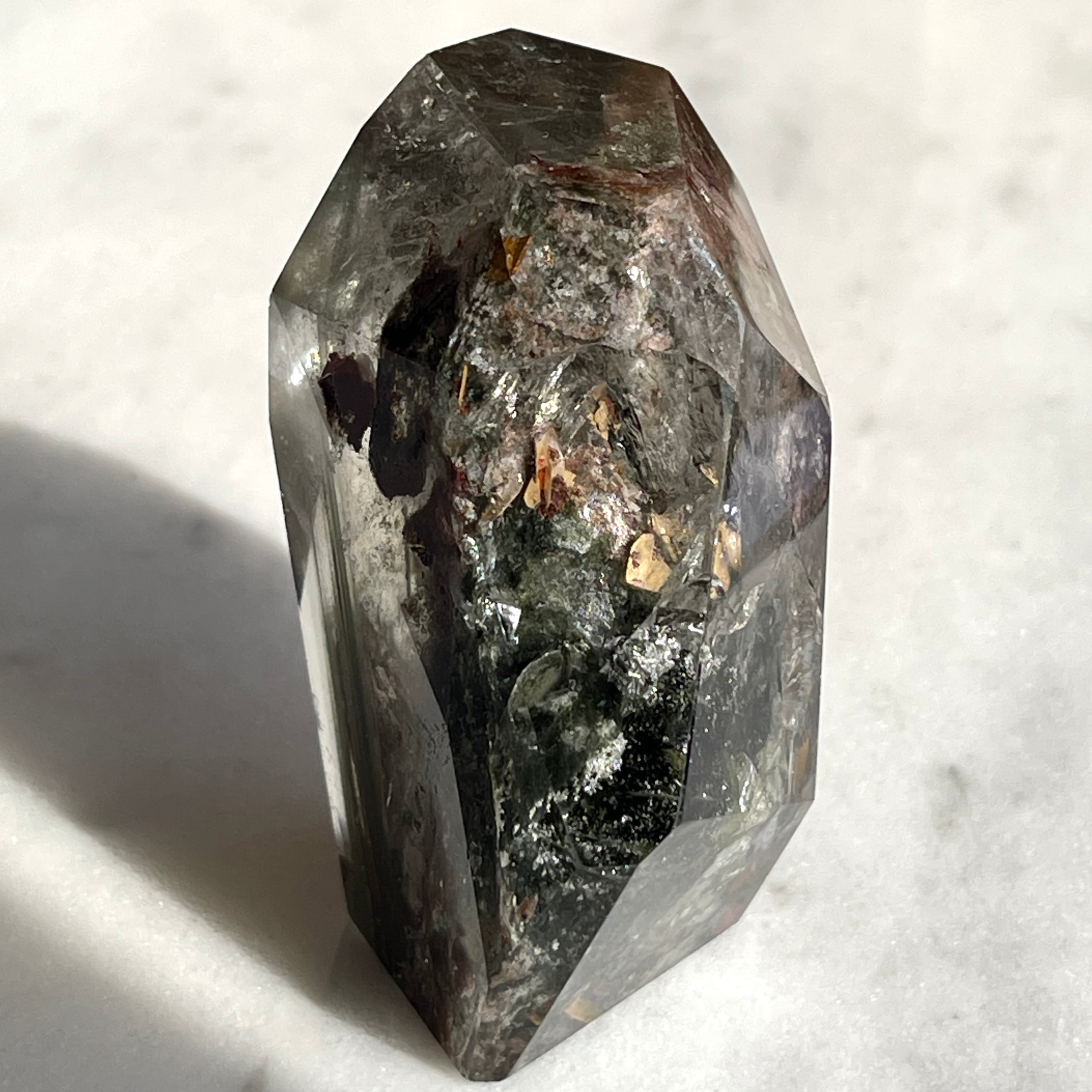 ガーデンクォーツは透明な水晶の中に様々な内包物が入り、幻想的な景色を見せてくれる水晶のことを言います。(リモナイト、ヘマタイト、リモナイト、クローライト、トレモライト、マイカ、アンフィボール、ロイヒテンバージャイトなど様々な内包物が閉じ込められた水晶)
