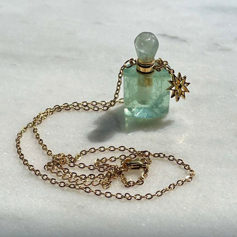• 【訳アリ】【超美石】美しいフローライトの香水瓶 ペンダント(虹入り) (チェーンつき) 3785
