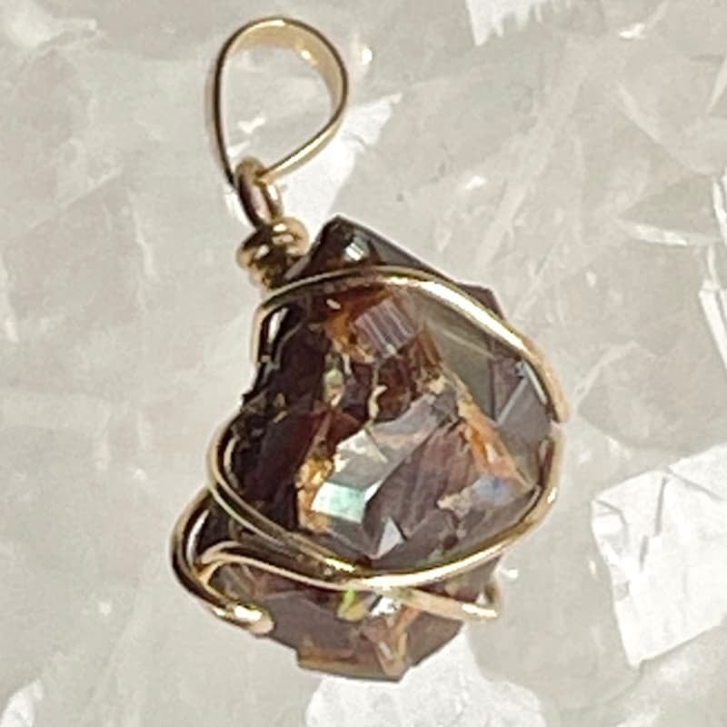 【希少】【国産】【超美石】レインボーガーネット 原石 ペンダント(18金) 6493