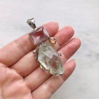 こちらは大きなグリーンアメジスト、ピンクアメジスト、シトリンがセットされたペンダントでツーソンで出逢いました。
