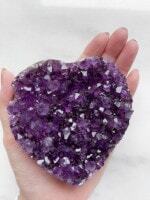 • 【訳アリ】【超美石】ハート型 アメジストクラスターの恋愛お守り石(左側に原石由来の剥離あります) 2605