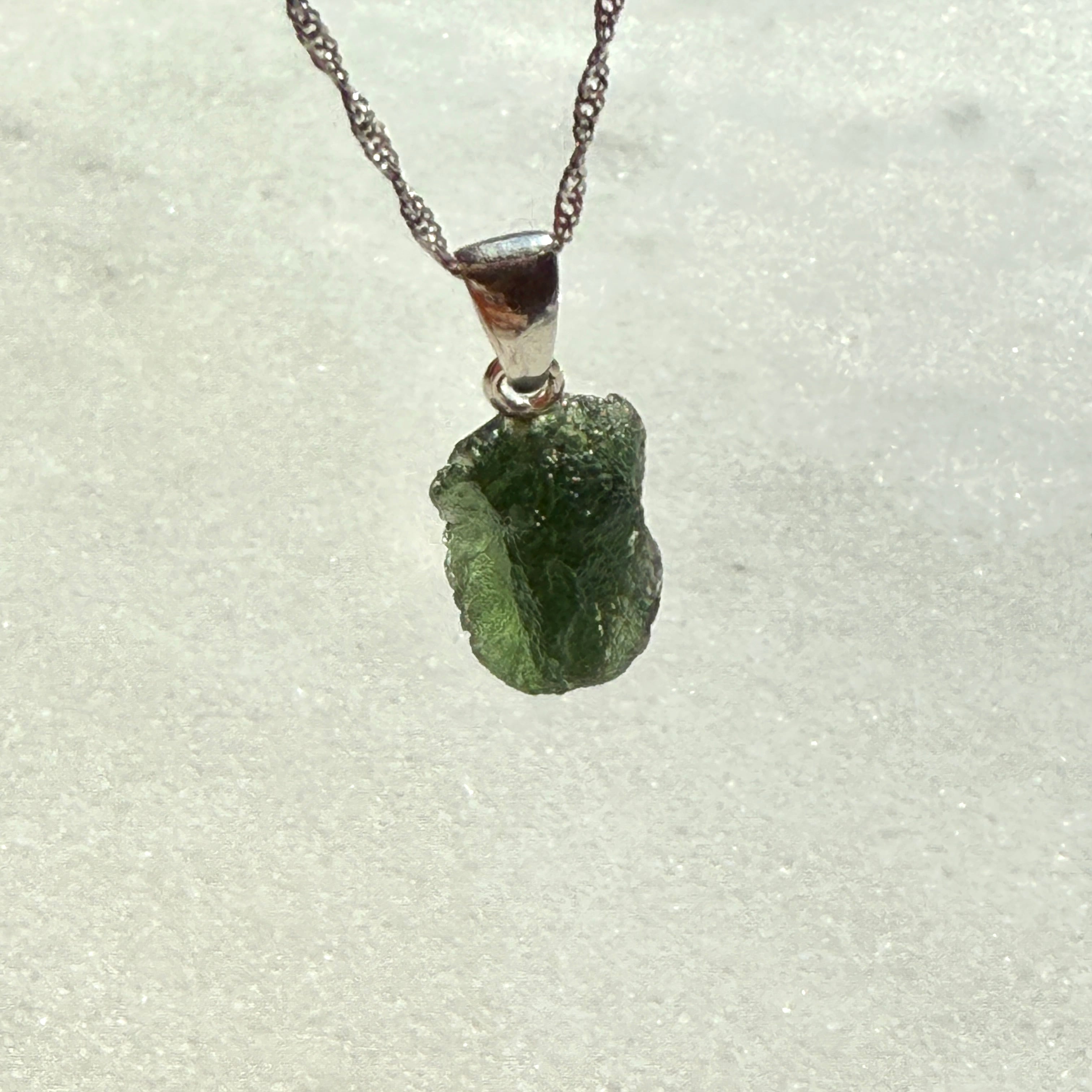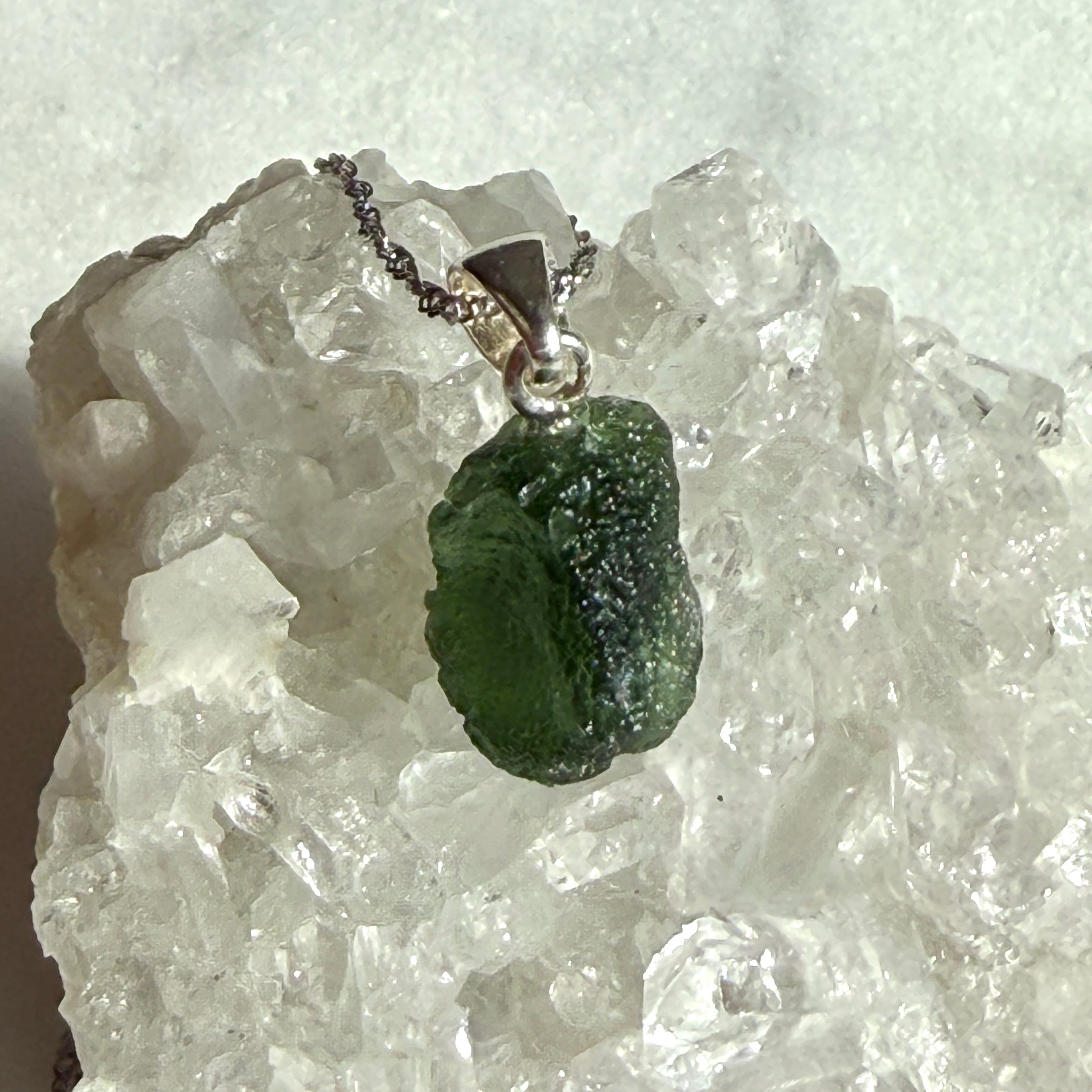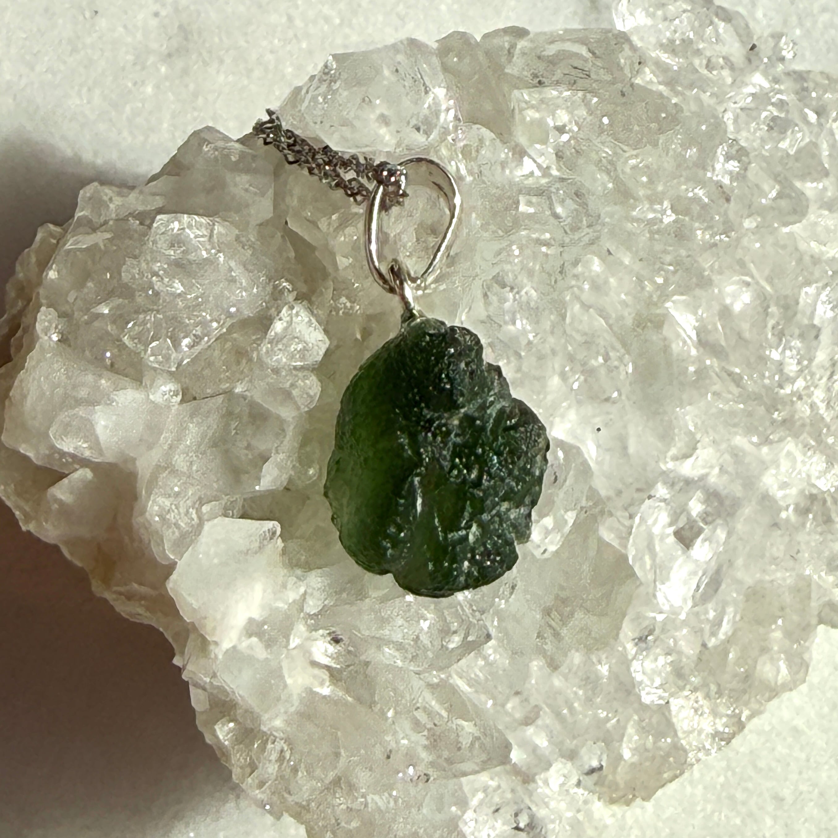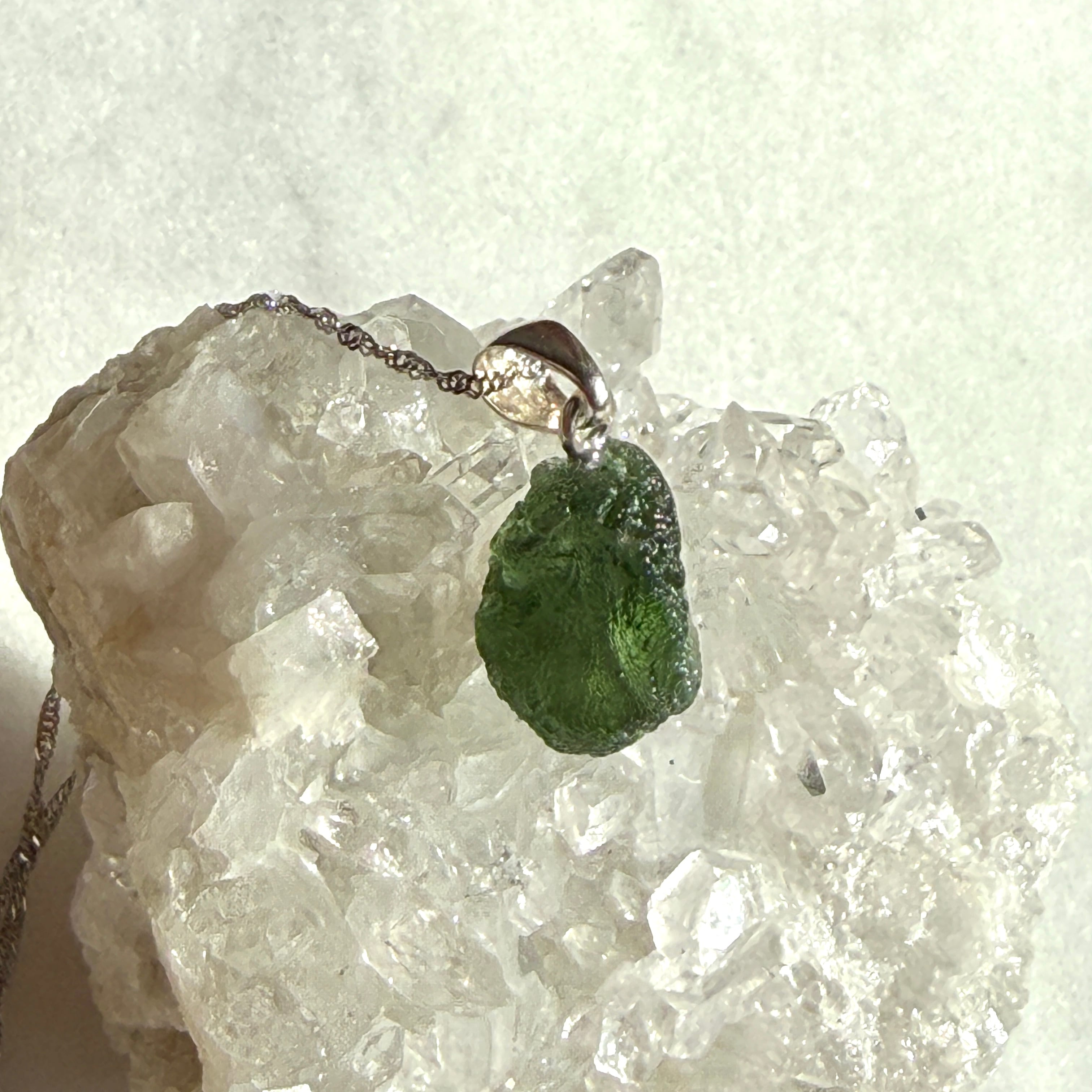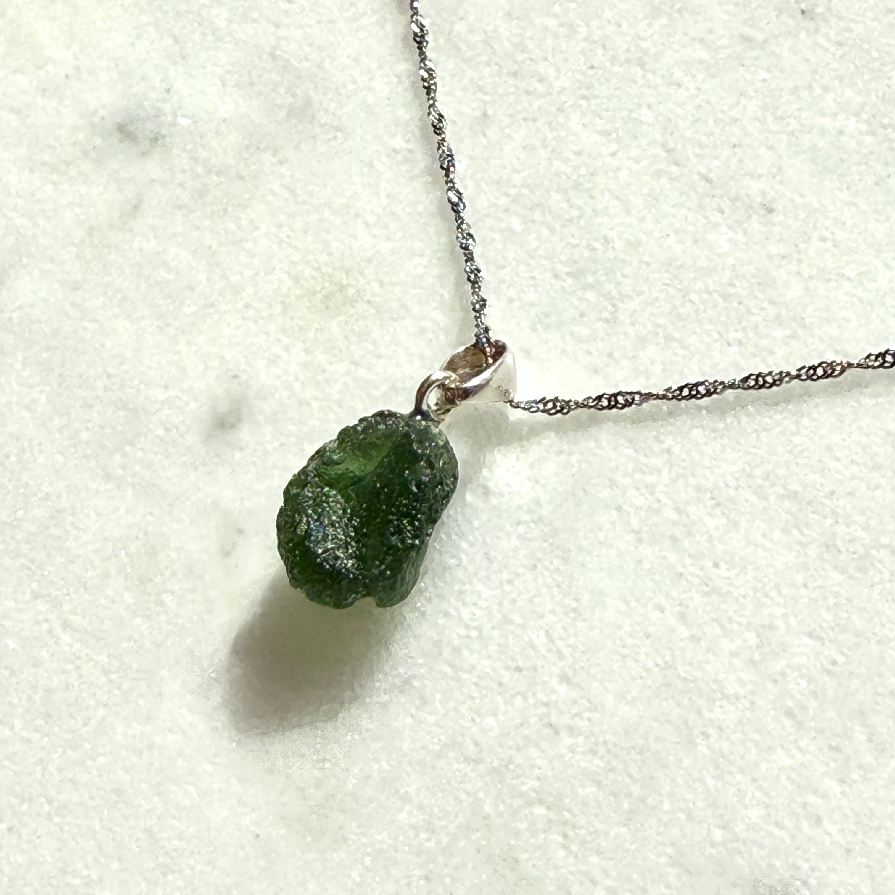 モルダバイトは、約1,500万年前に隕石が地球に衝突した際の衝撃で生まれた、奇跡のガラス質天然石。