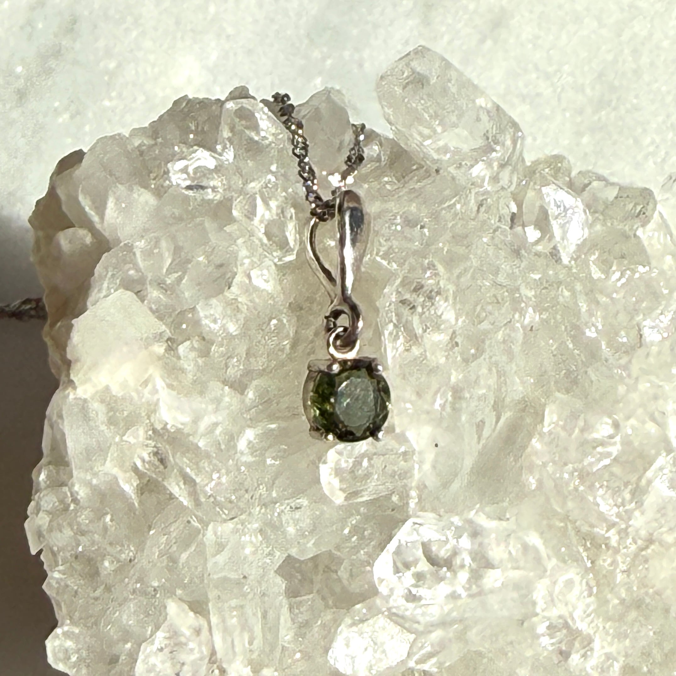 モルダバイトは、約1,500万年前に隕石が地球に衝突した際の衝撃で生まれた、奇跡のガラス質天然石。