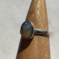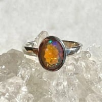 シルバーもしっかりしていて、オパールという石は欠けやすいのでリングの場合は特に、仕入れは慎重になりますが、こちらは石の周りをシルバーで囲ったデザインになっていますので、ぶつけてもそうそう割れないであろうデザインです。