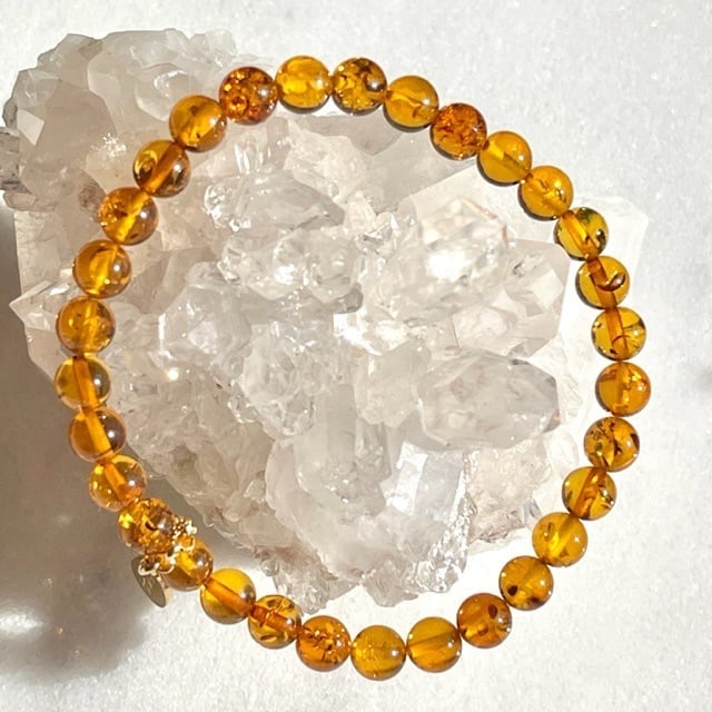 【超美石】琥珀(アンバー)6mm ブレスレット(要サイズ確認) 2174