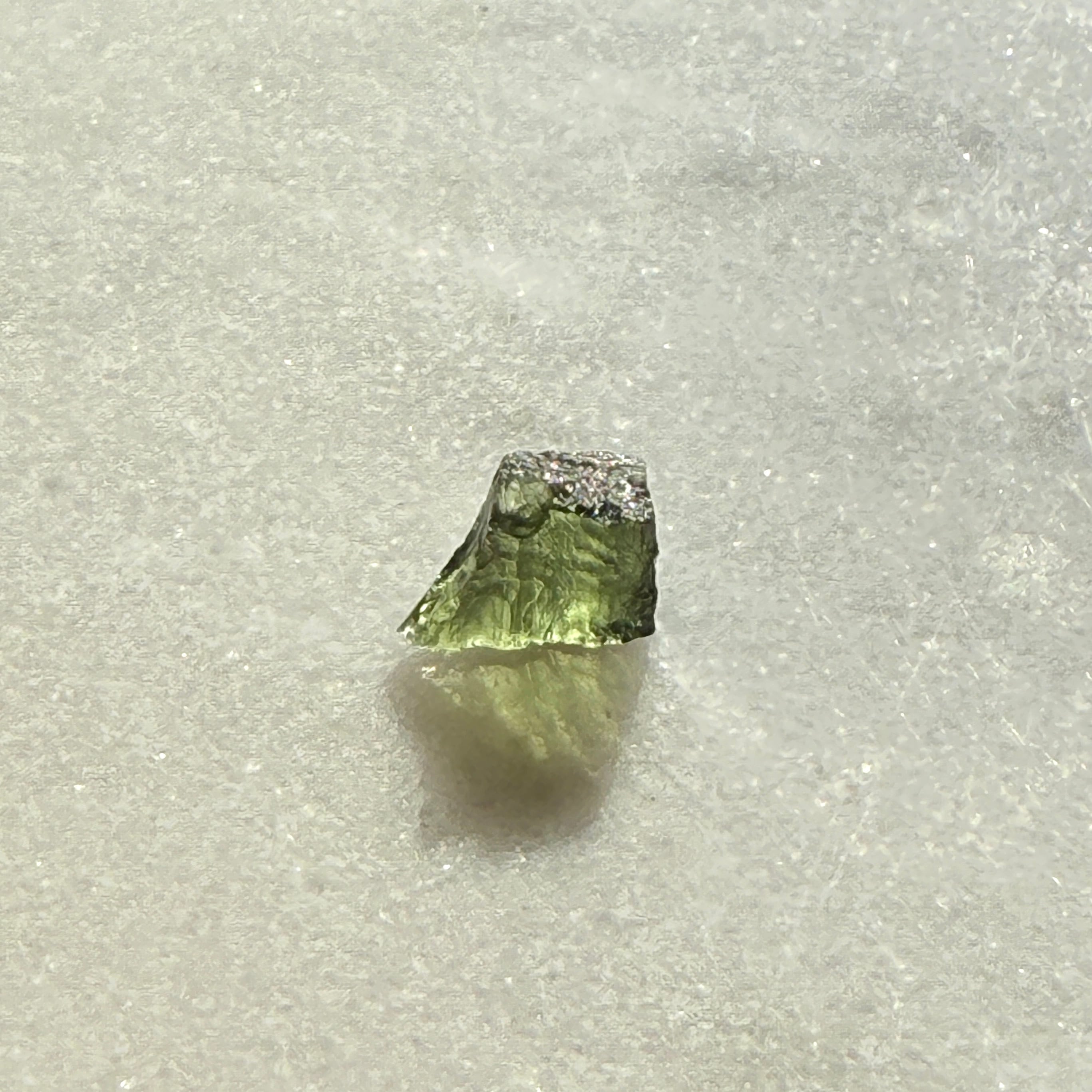 美しいグリーンのテクタイト(隕石由来の鉱物を総称してそう呼びます)。