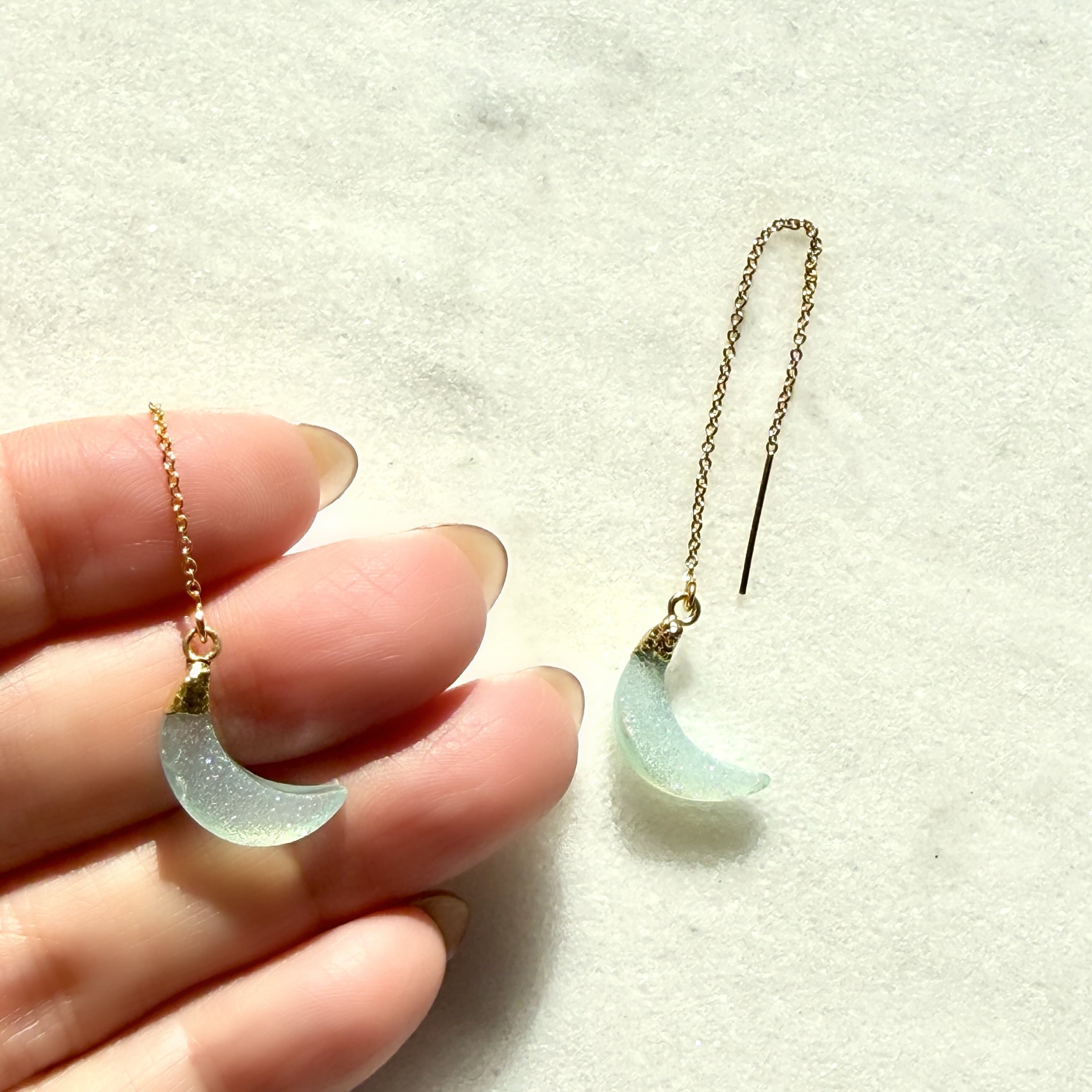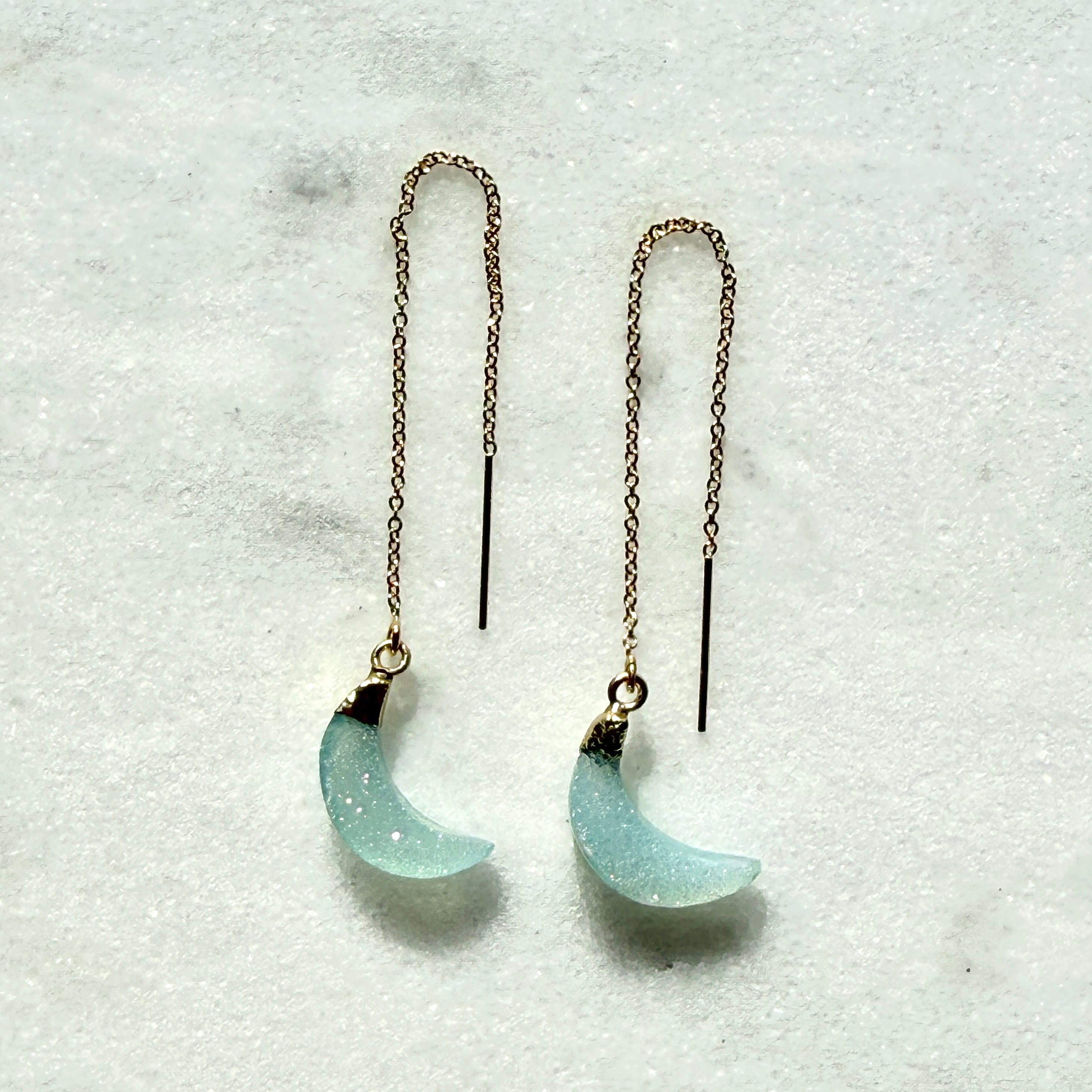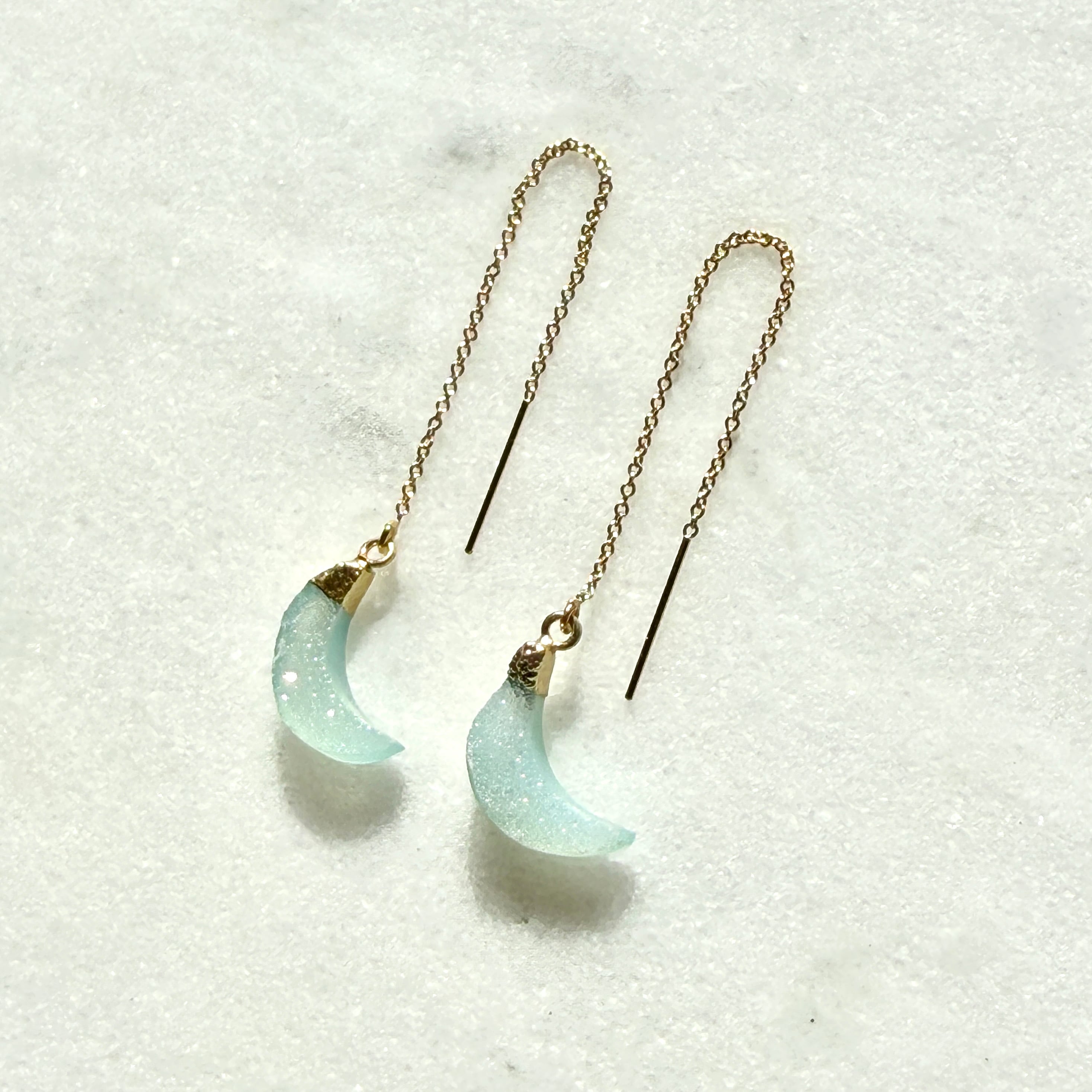 • 【美石】ドゥルージークォーツ(水晶結晶)お月様 ピアス<水色> 1119