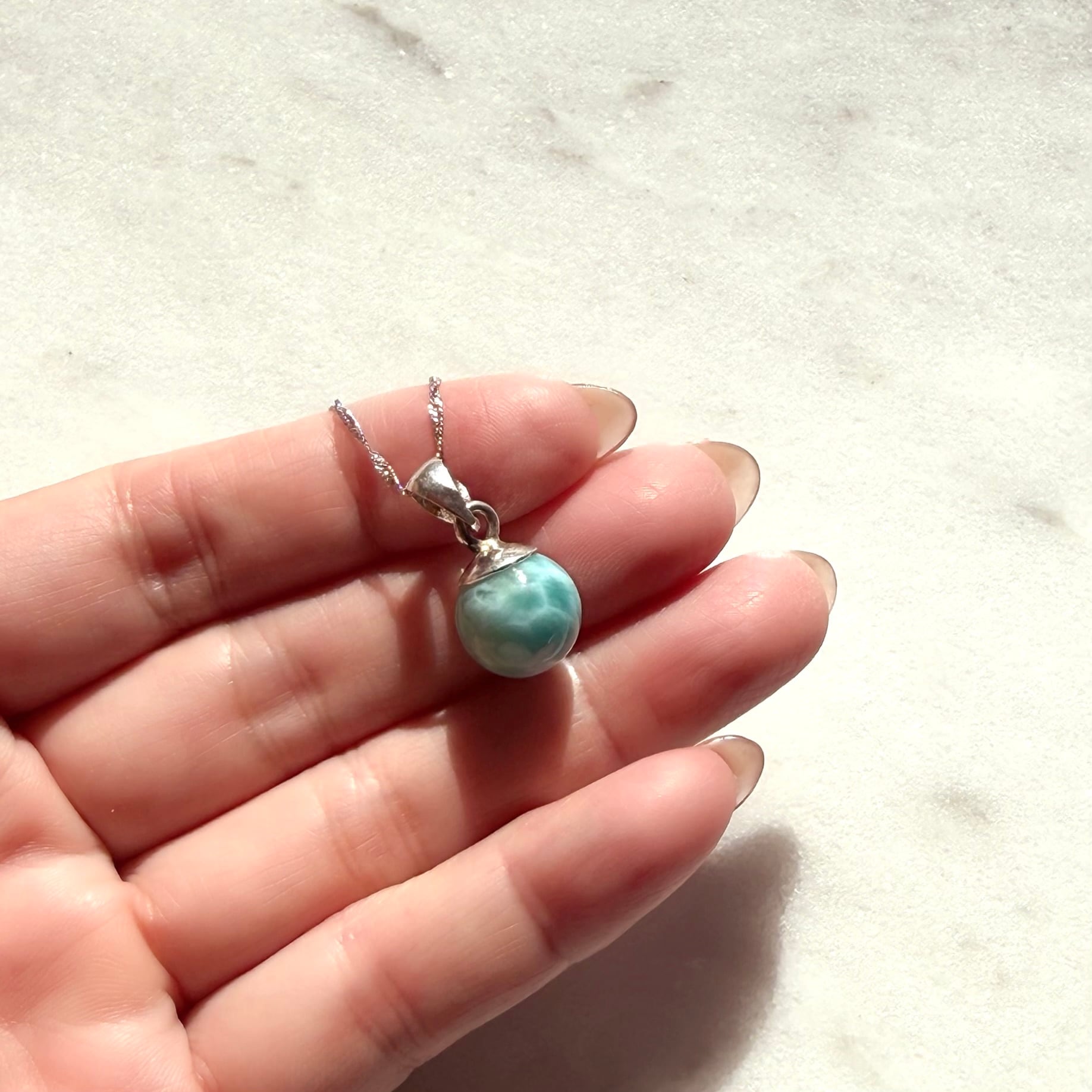 ラリマーは、まるで海の光がそのまま結晶になったような石。