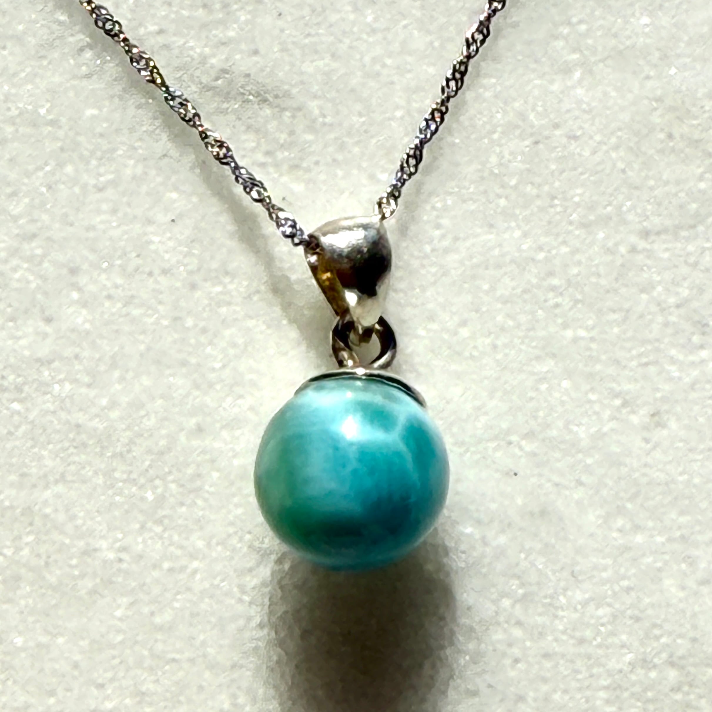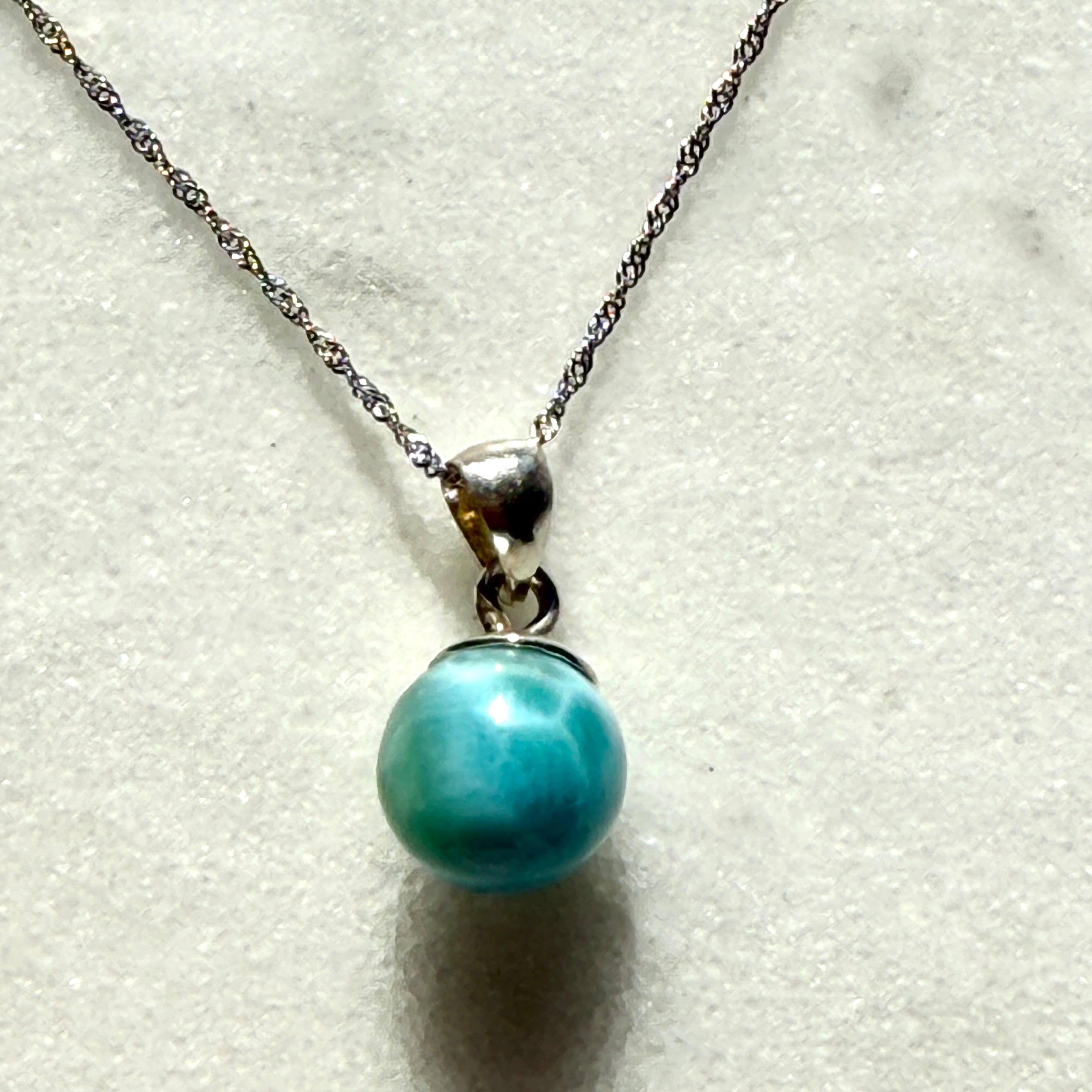 “愛と癒しの海”を宿すクリスタル、ラリマーのペンダントです。
