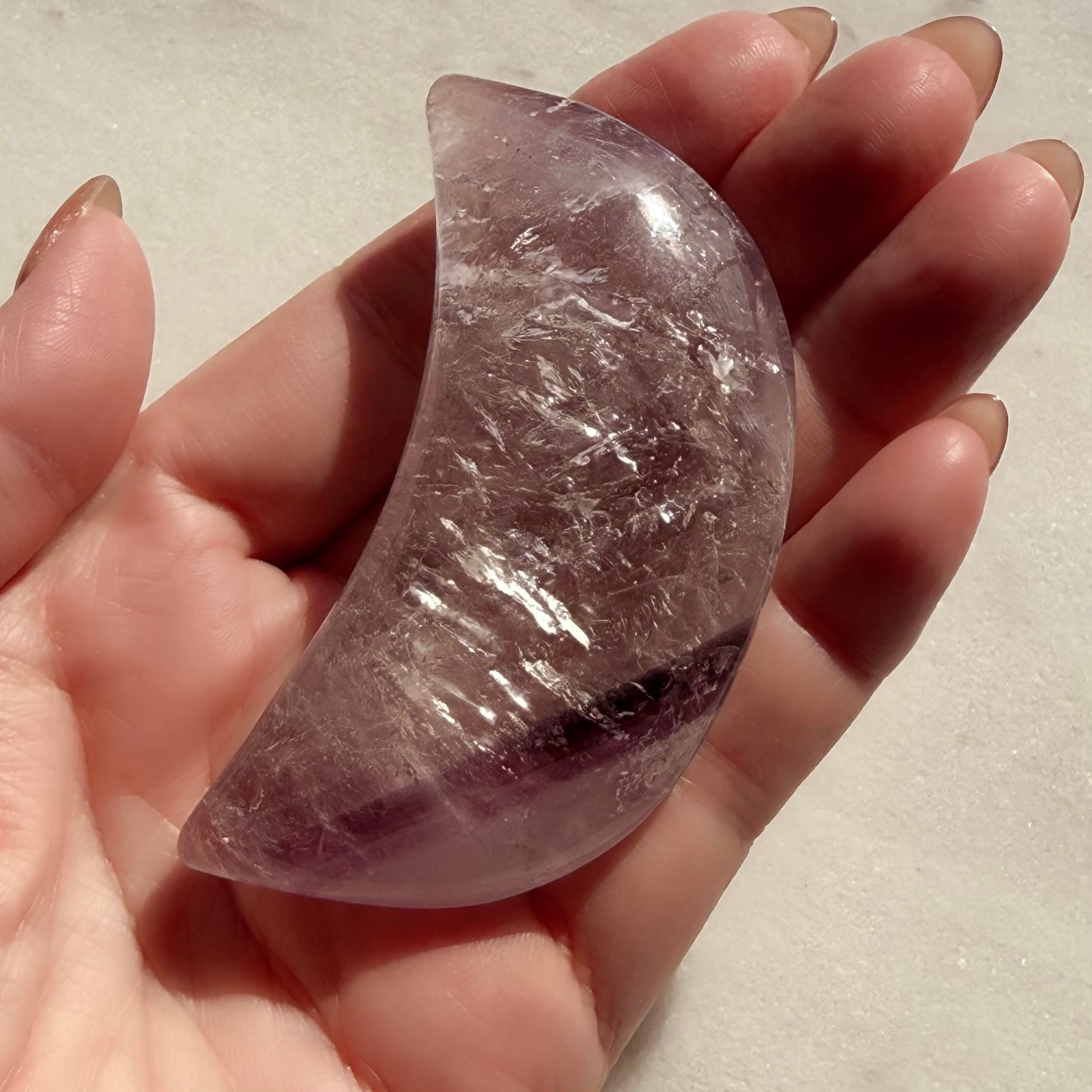 手のひらにそっと収まる、美しい月の握り石。