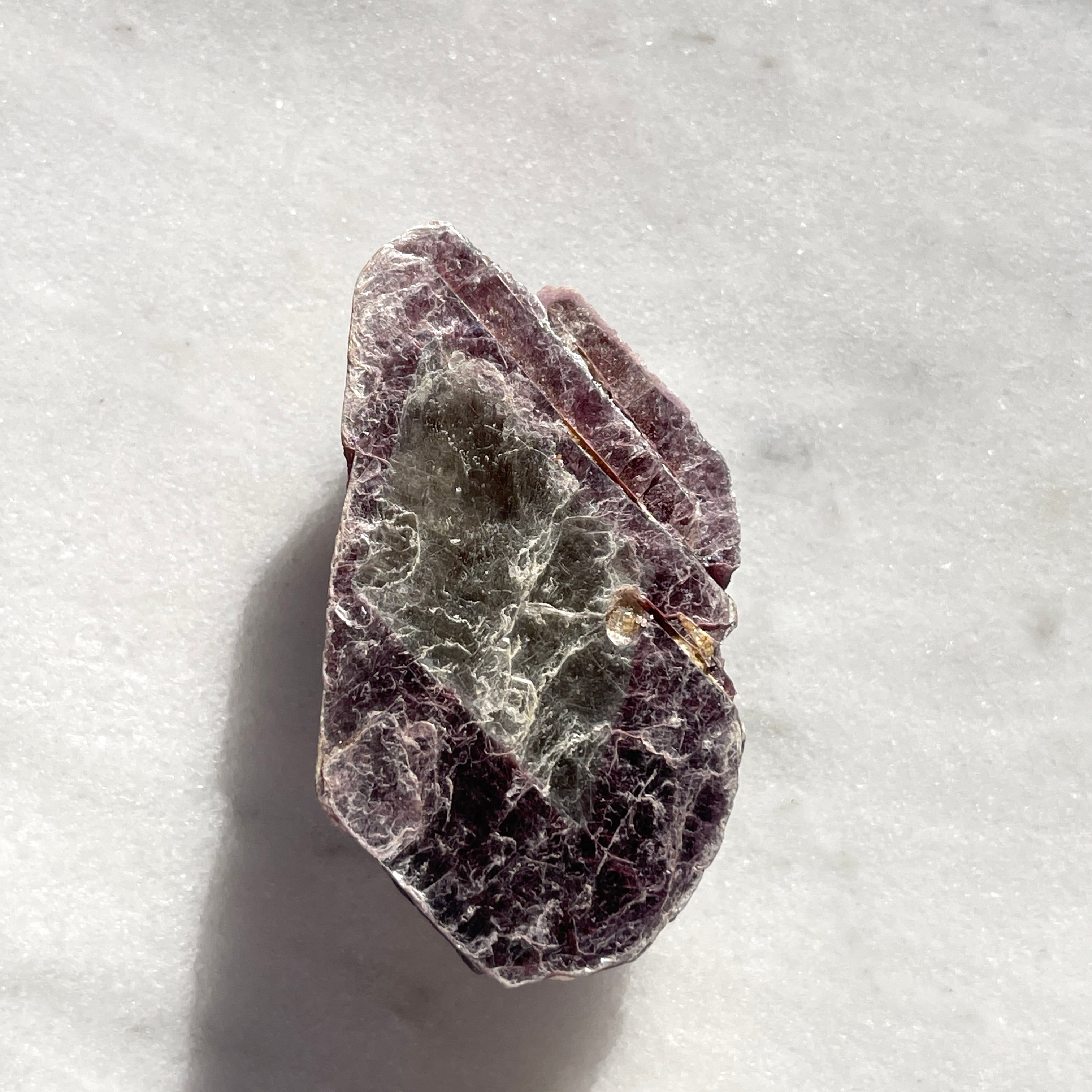 なんと、真ん中にダイヤの形にゴールデンカラーのレピドライトが共生していて、自然と浮き出ています。