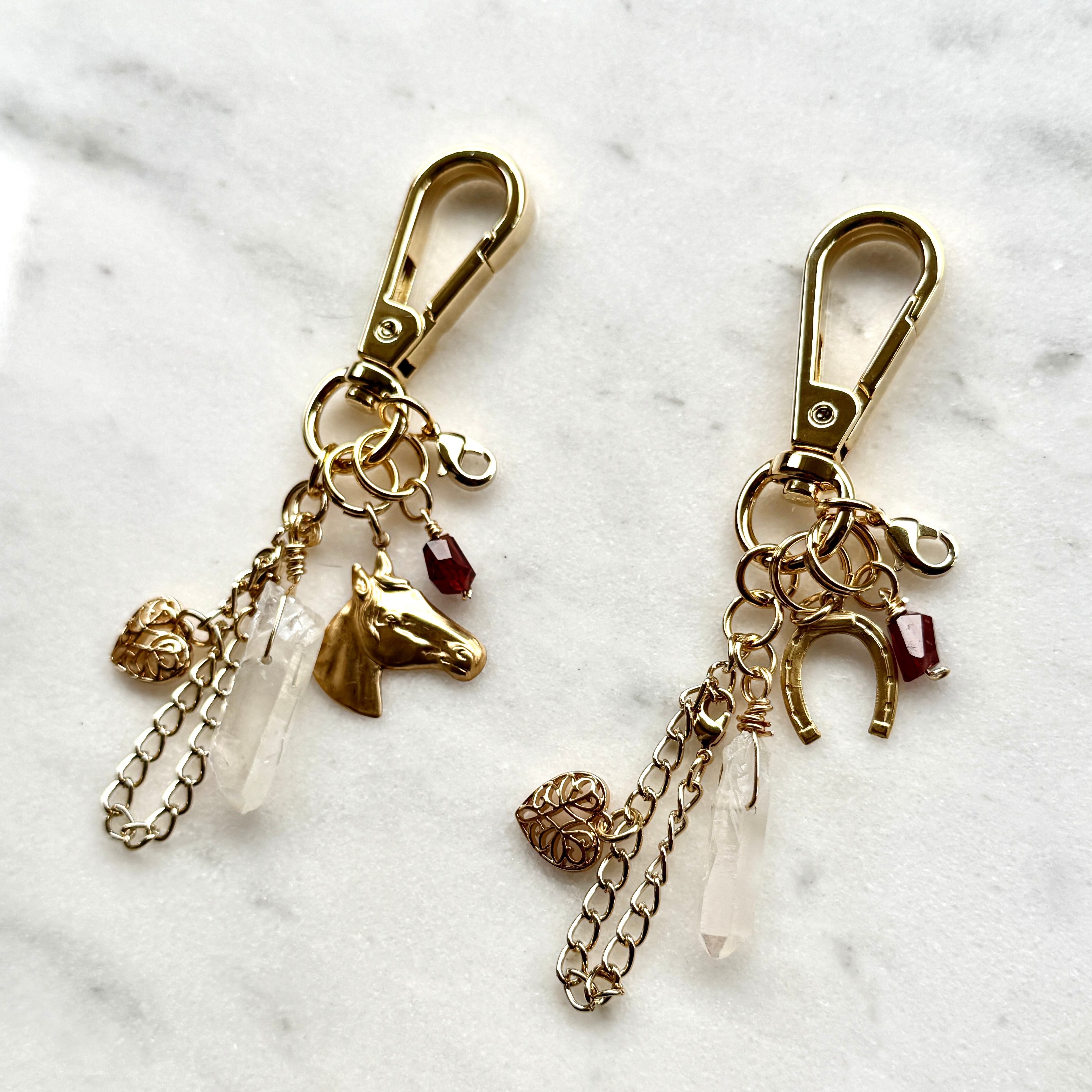 そんなあなたに「絆」「約束」「誓い」の意味を持つガーネットと全体運をパワーアップさせる水晶のバッグチャームをデザインしました。水晶は「魔除け」にもなりますので、是非、毎日のお出かけにご活用ください。