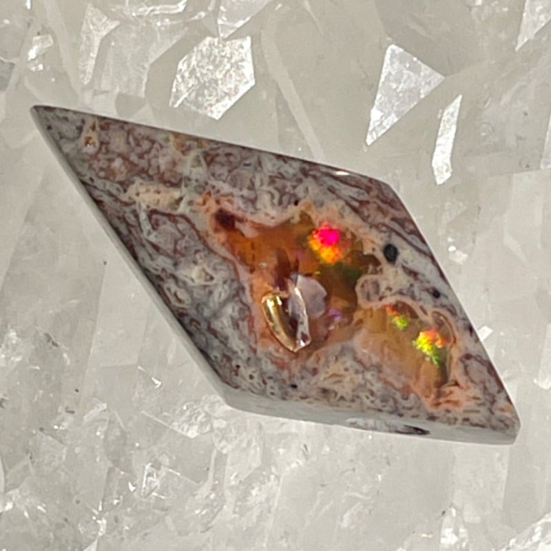 カフェオレカラーの母岩に遊色効果のある部分が真ん中にあり、独特な温かい雰囲気の石です。