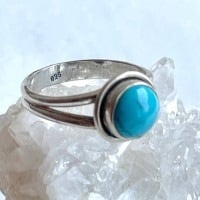 天然ターコイズ(トルコ石) 直径 10.7mm、厚さ 5.2mm(枠まで入れて計測)