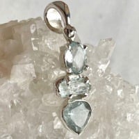 真っ直ぐな愛を届けてくれるブルートパーズと幸せの御守り石として古来より大切にされてきたアクアマリン(真ん中と下の石)の組み合わせです。