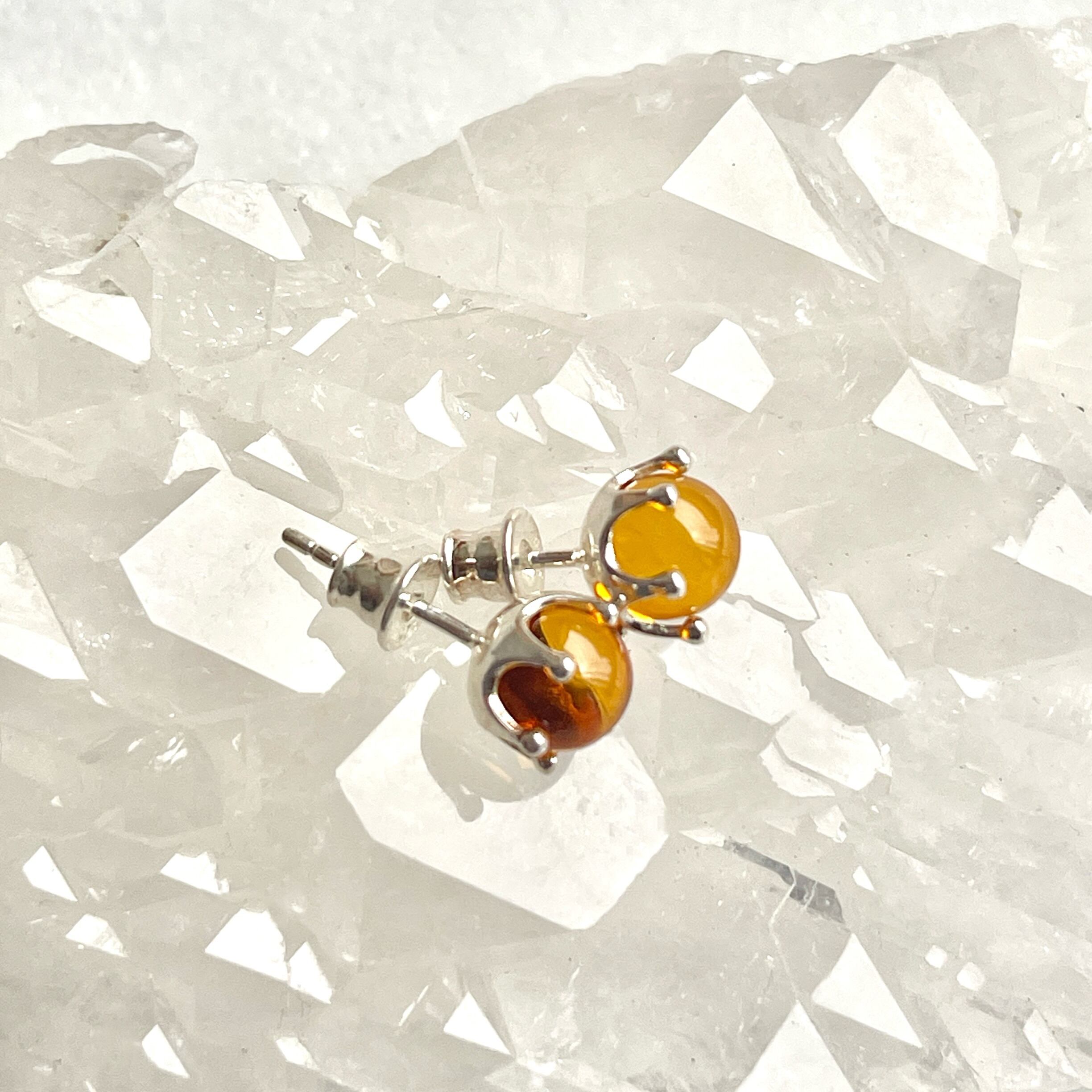• 【超美石】天然琥珀(アンバー) ピアス <王冠デザイン> 1223