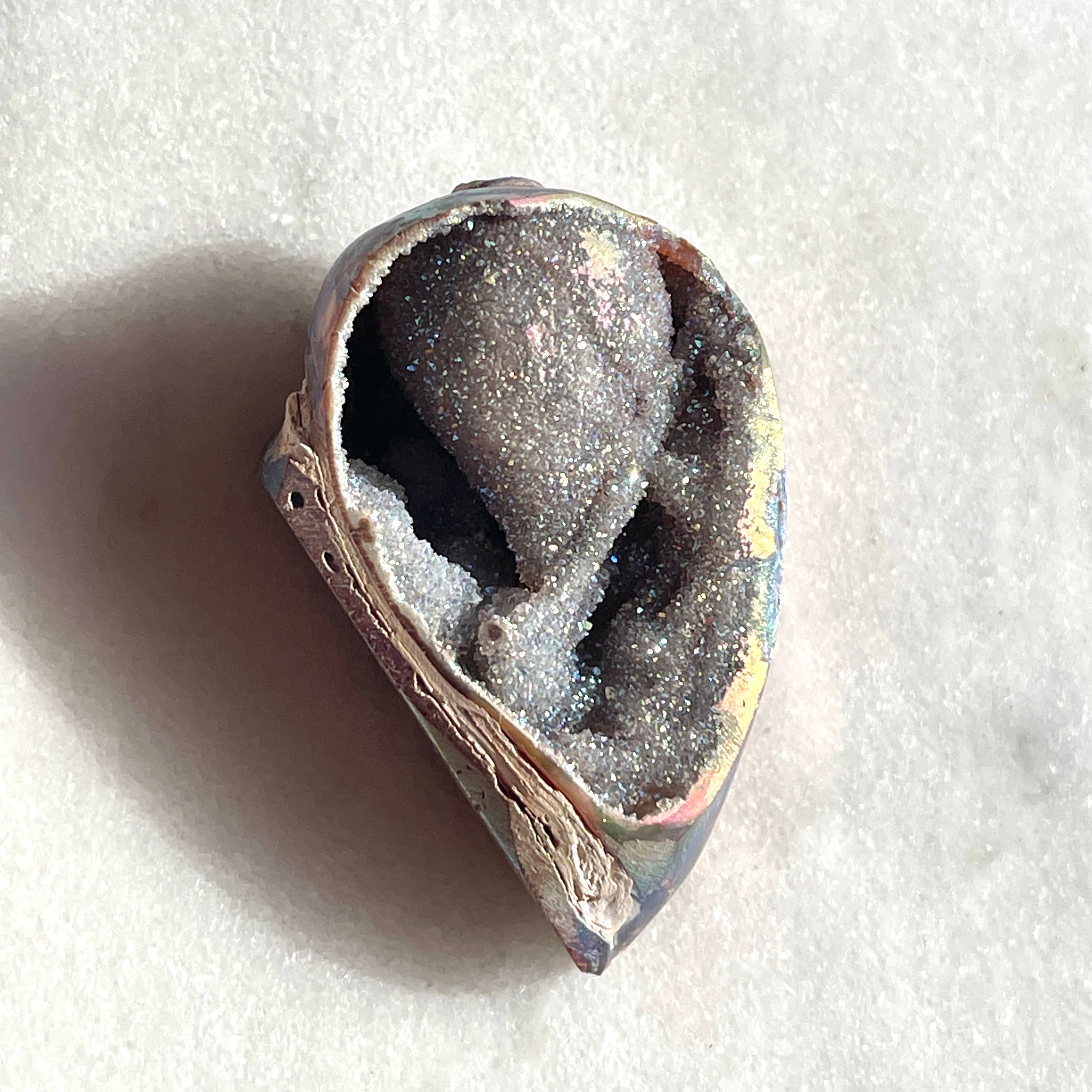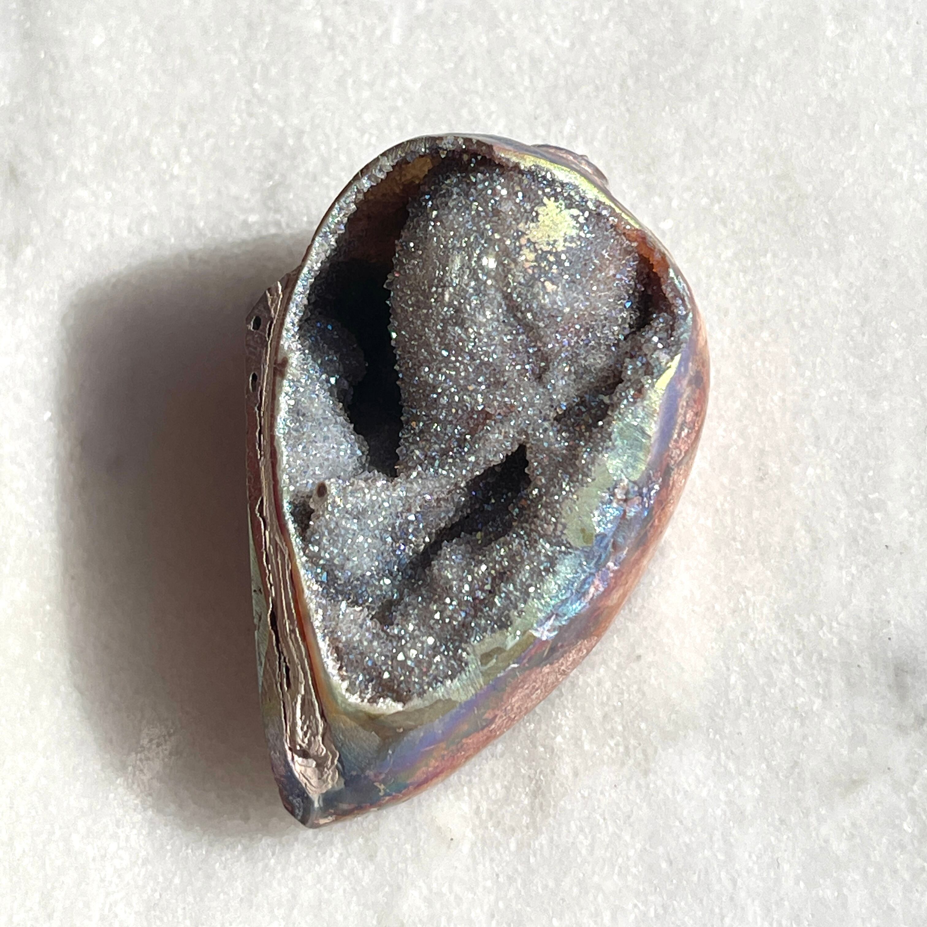 スピラライトジェム・シェルは1億年以上も前の巻貝が化石化し、そこに水晶が結晶化した非常に珍しい貝です。