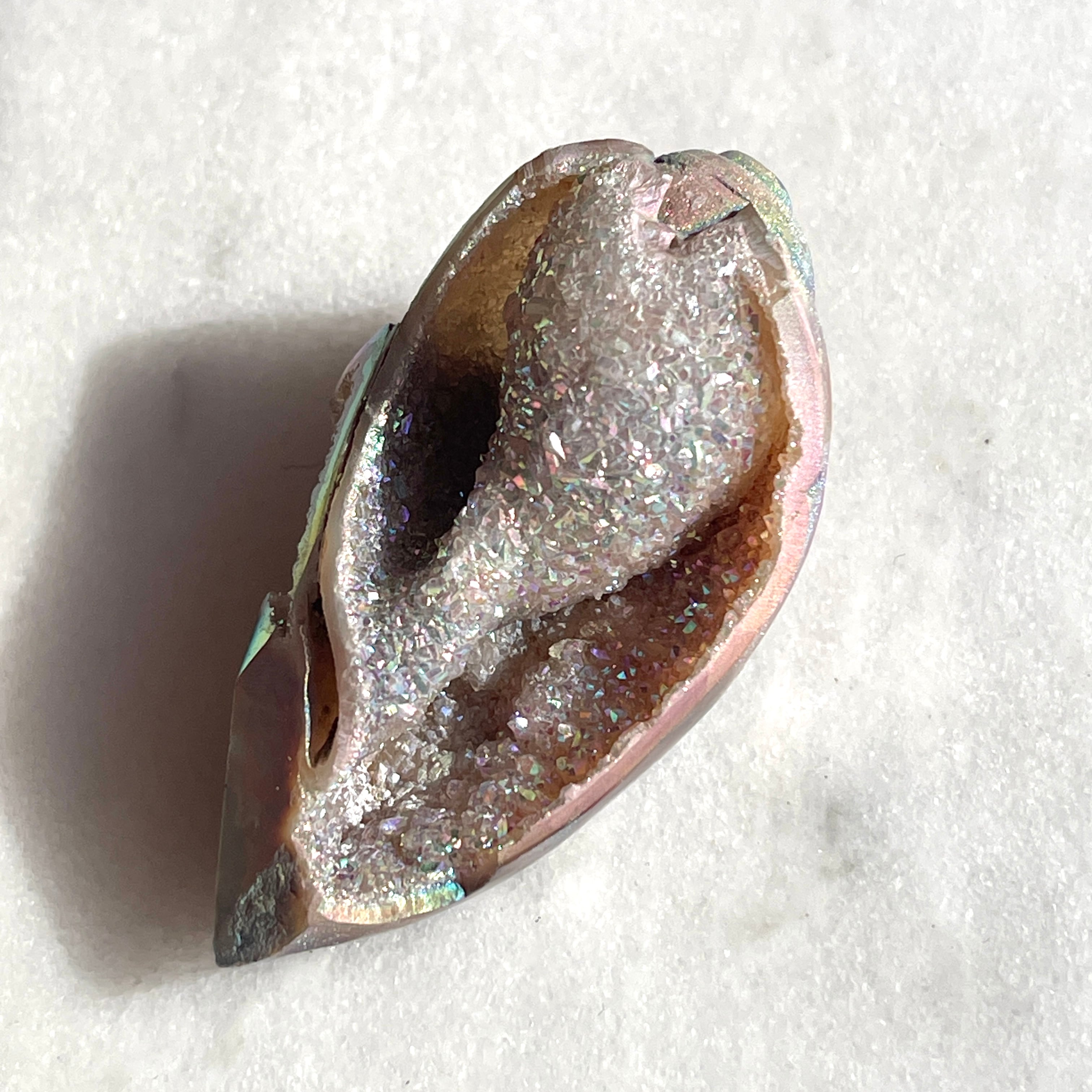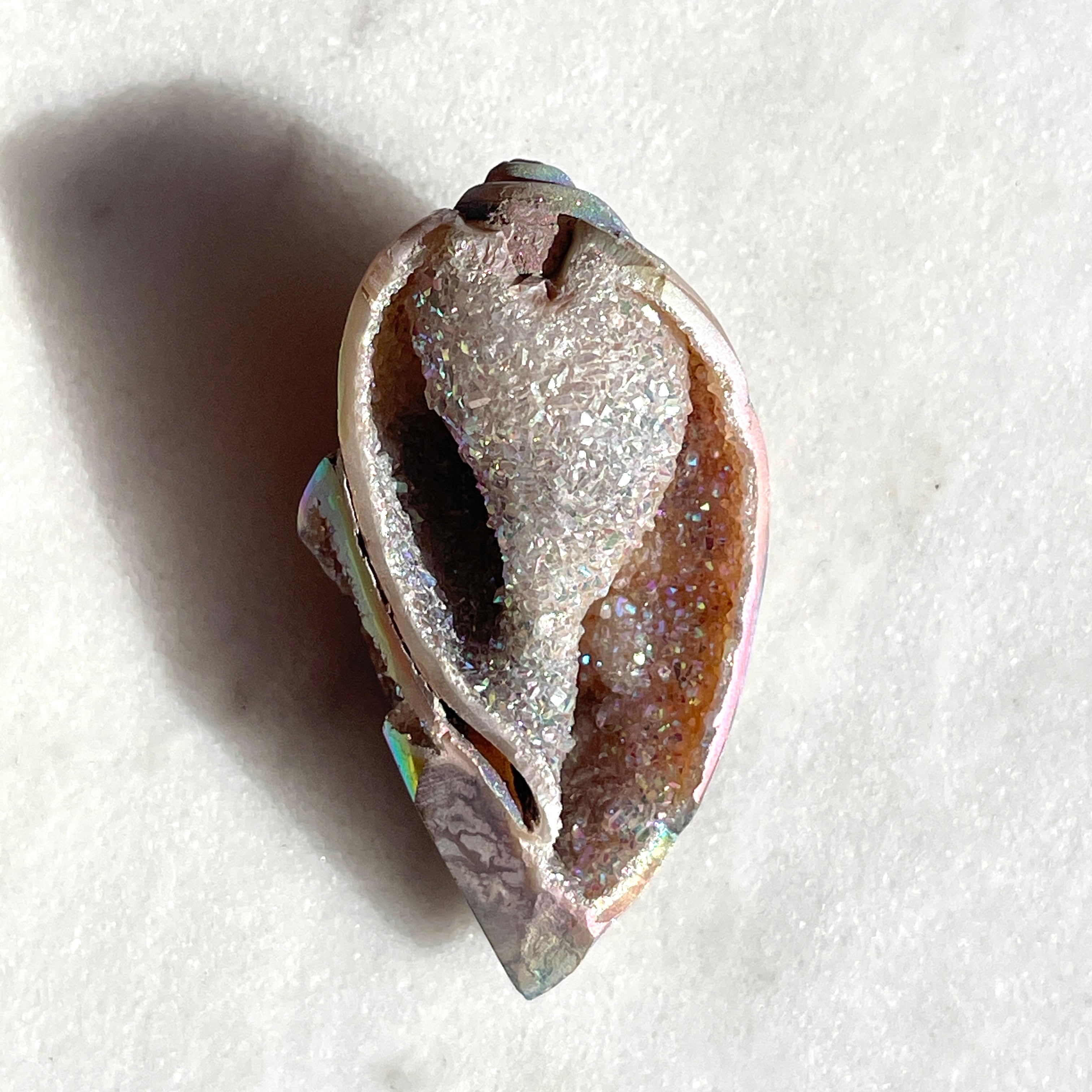 スピラライトジェム・シェルは1億年以上も前の巻貝が化石化し、そこに水晶が結晶化した非常に珍しい貝です。
