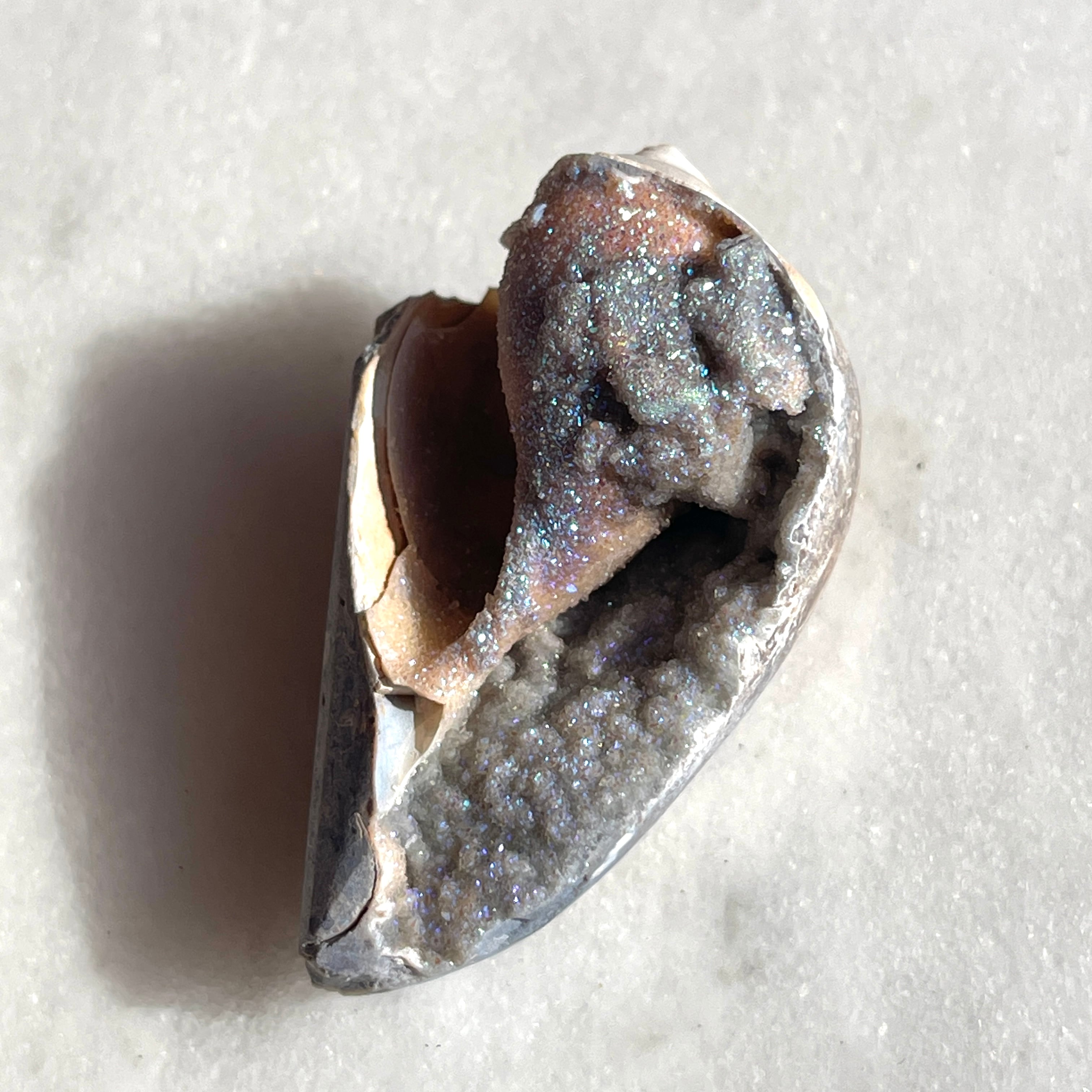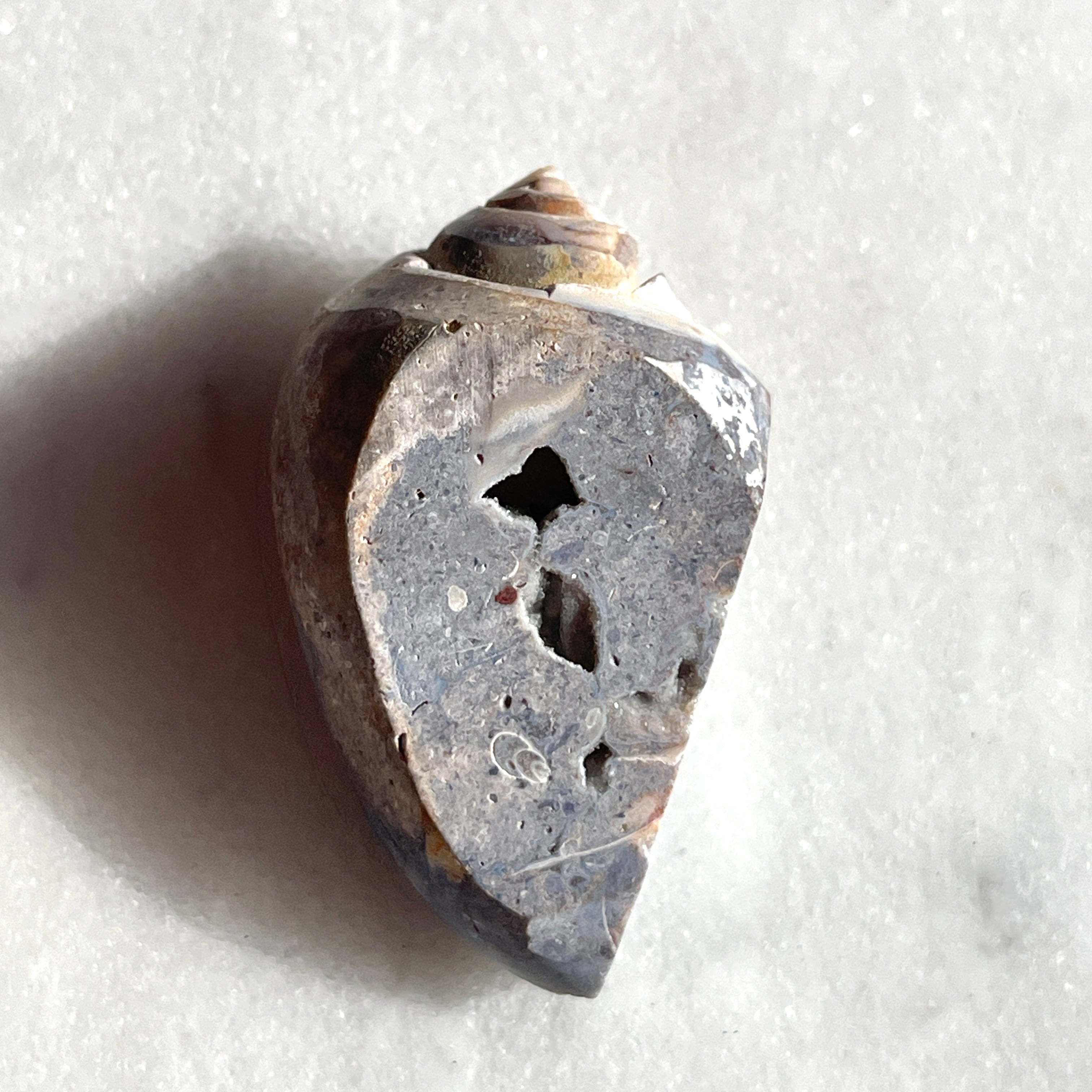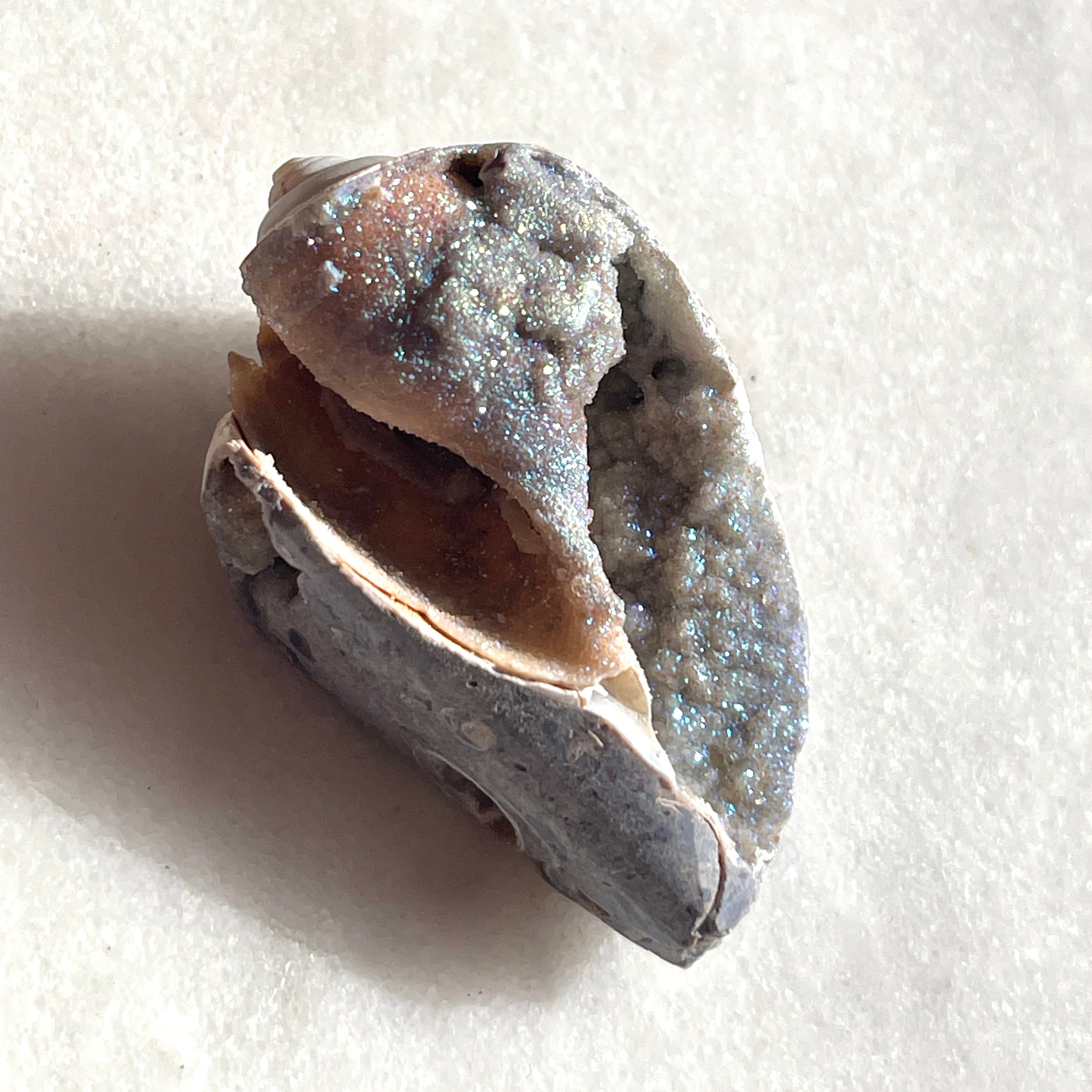スピラライトジェム・シェルは1億年以上も前の巻貝が化石化し、そこに水晶が結晶化した非常に珍しい貝です。