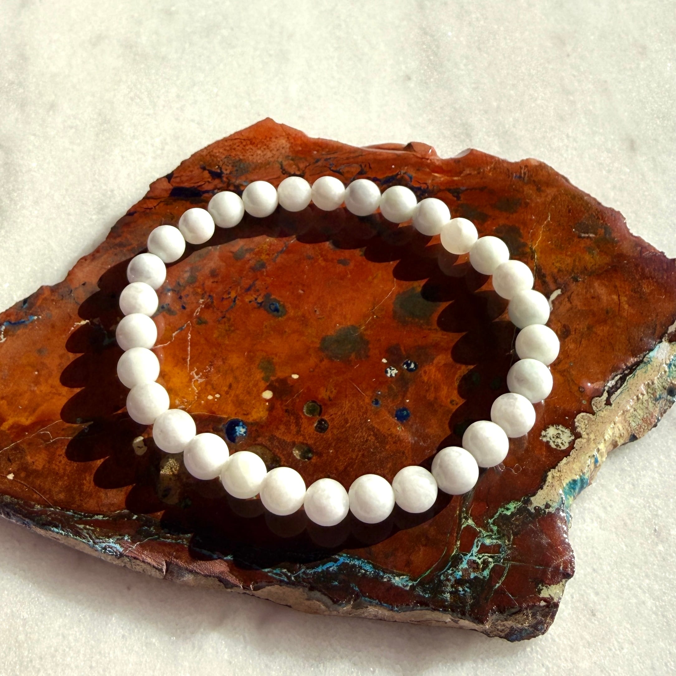 • 【希少・美石】糸魚川産 翡翠 「月白」 6mm ブレスレット(産地証明書つき)  6112