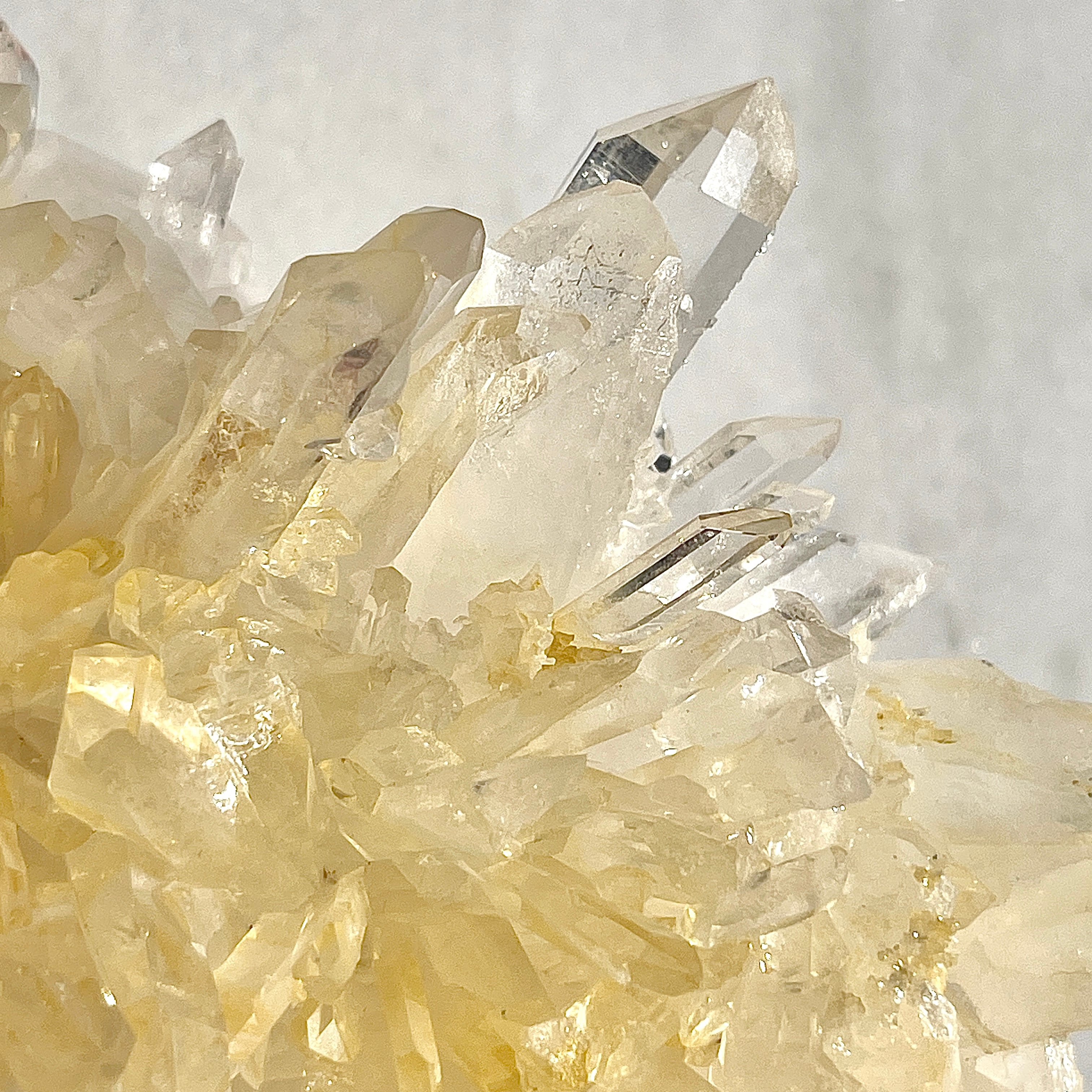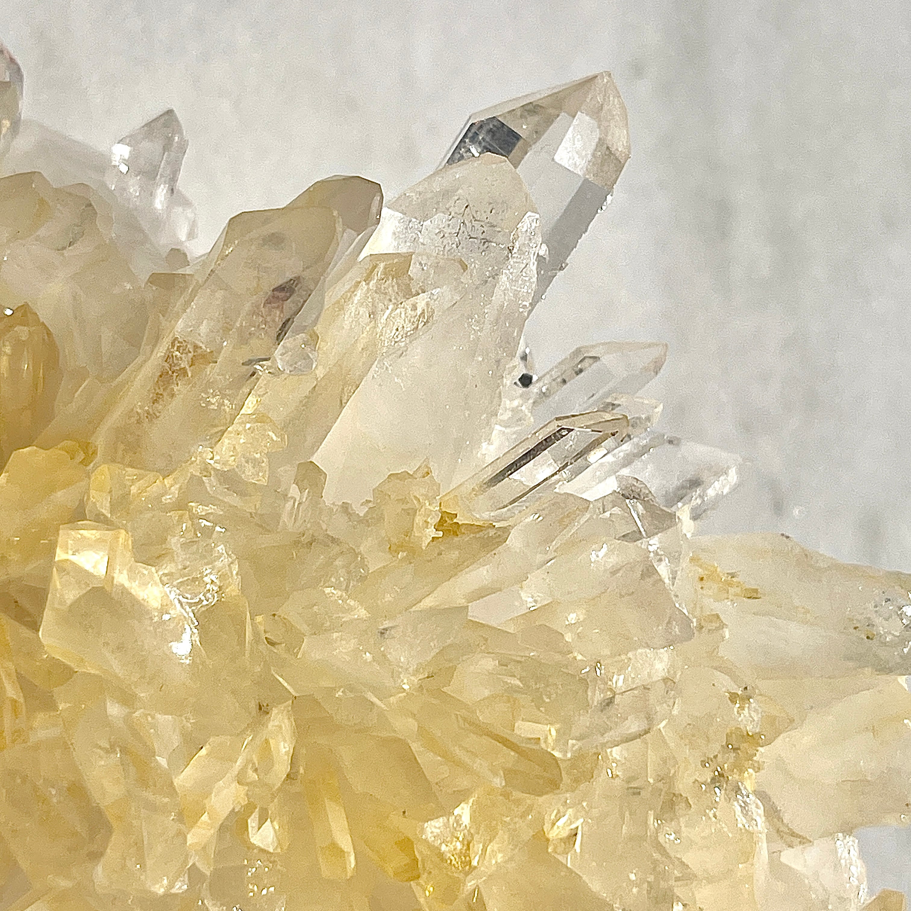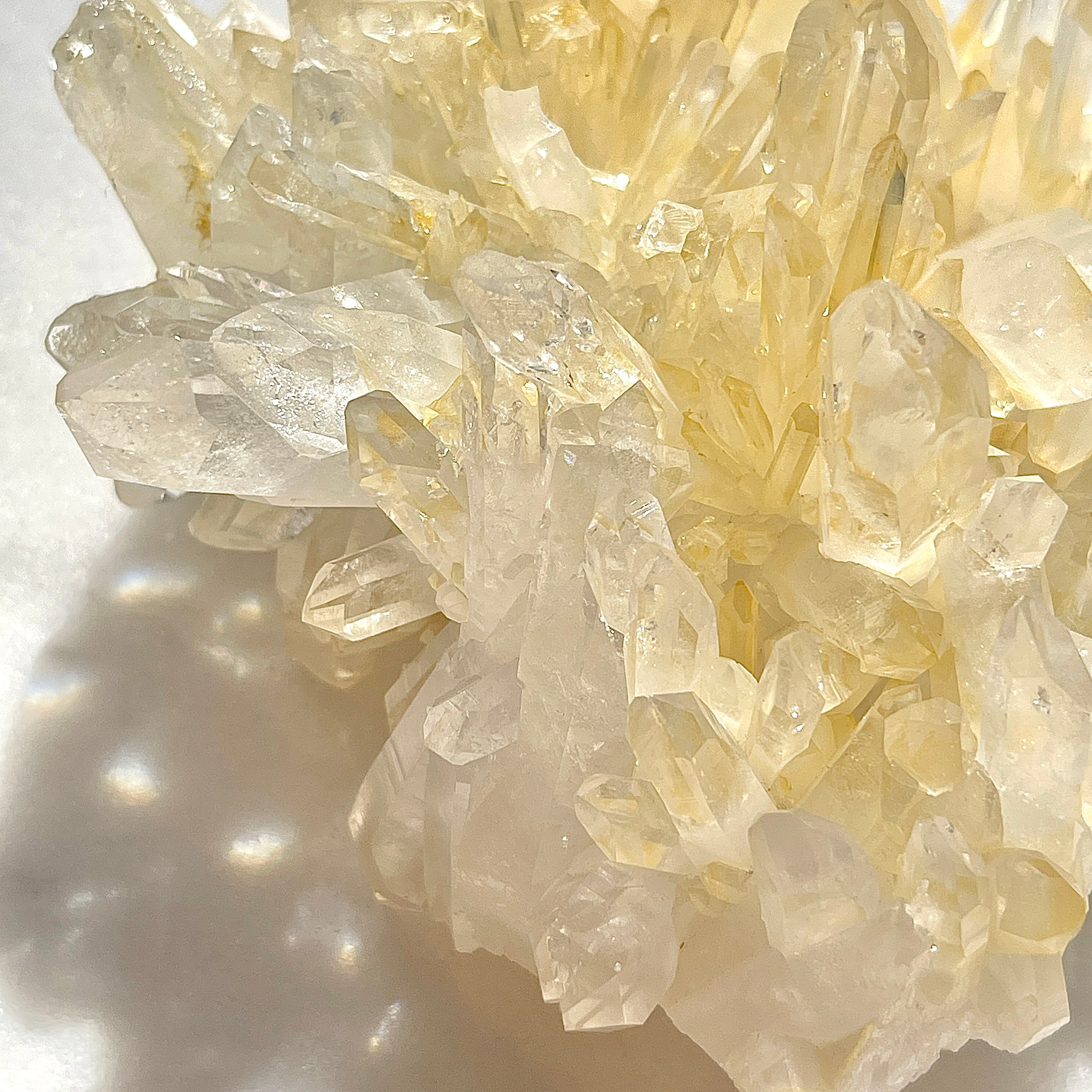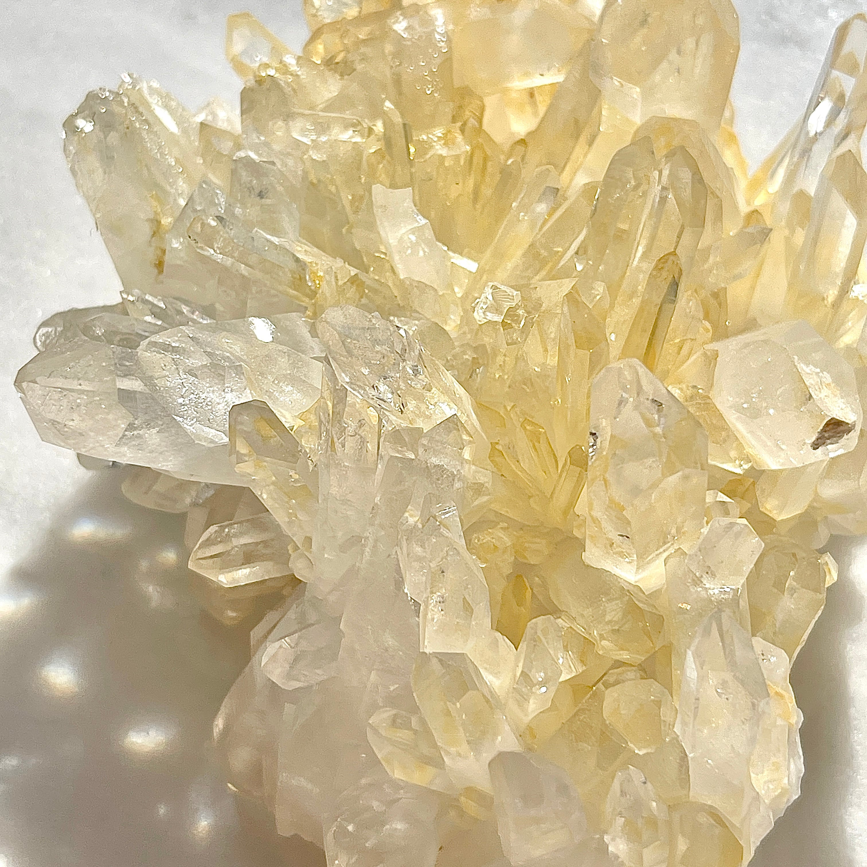 アーカンソー産の水晶クラスターは世界的にも美しい水晶の産地として有名ですが、他の水晶と違った特徴としては透明感が高く、ポイントのエッジが鋭いものが多いです。