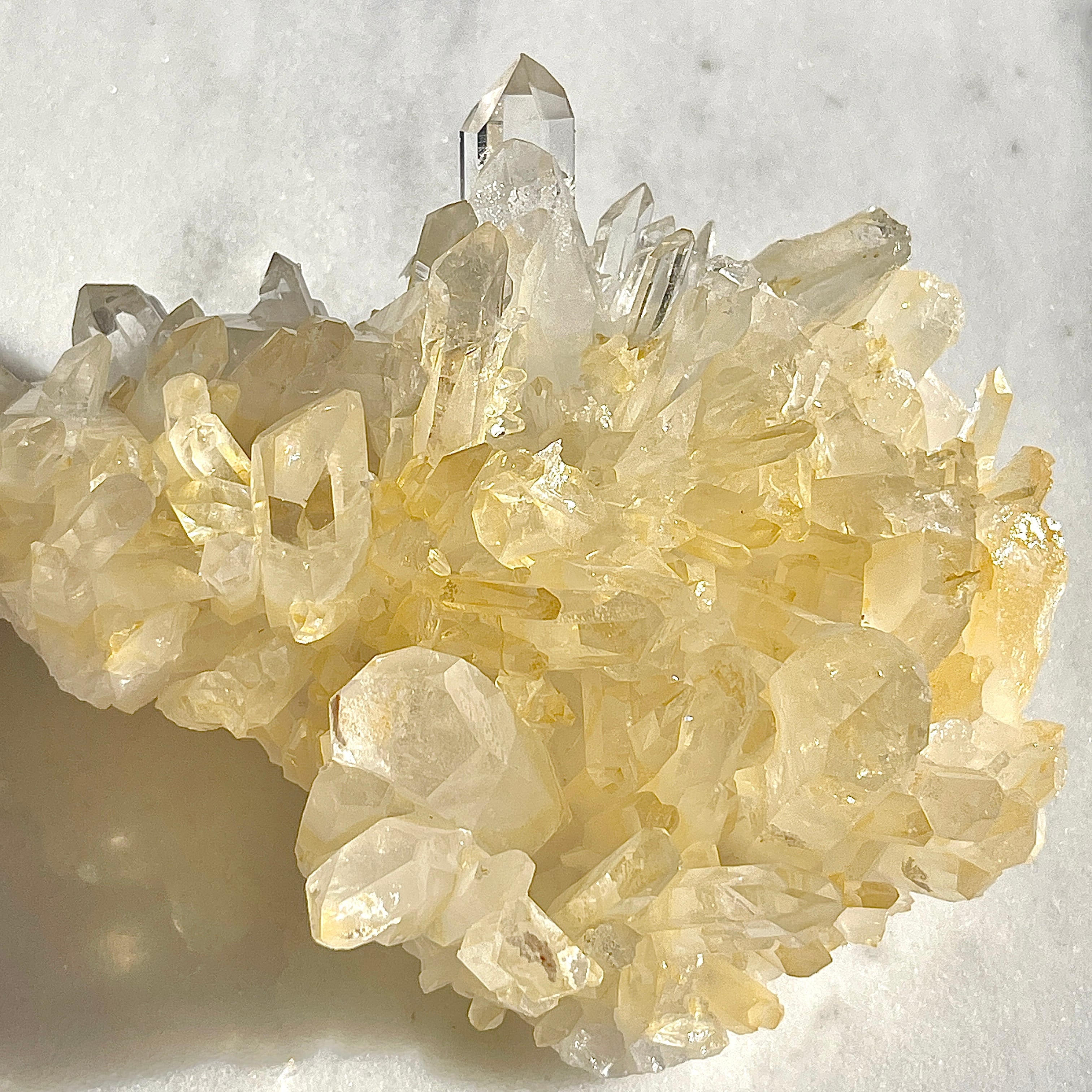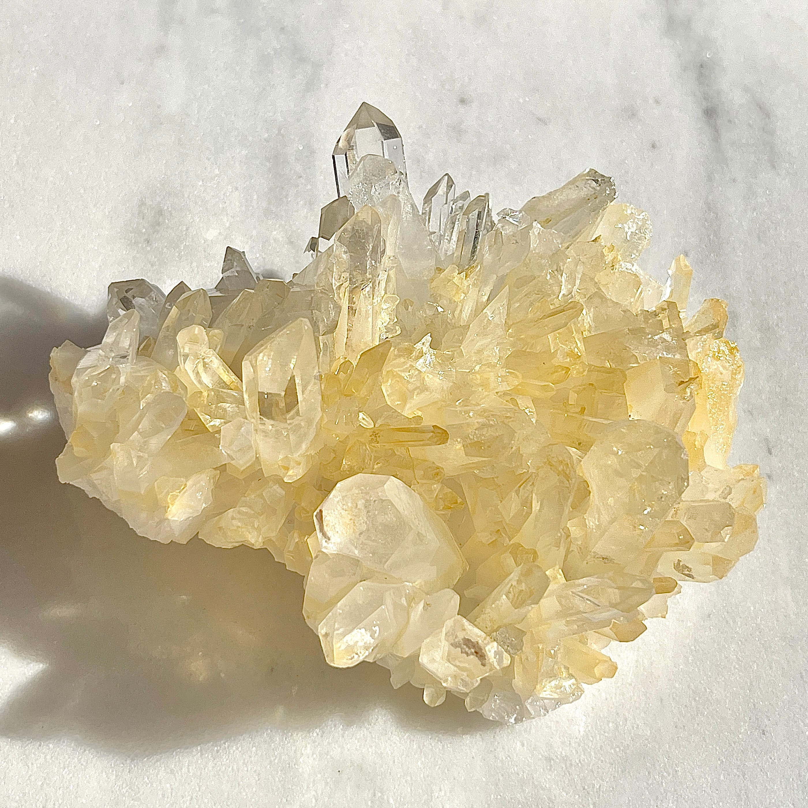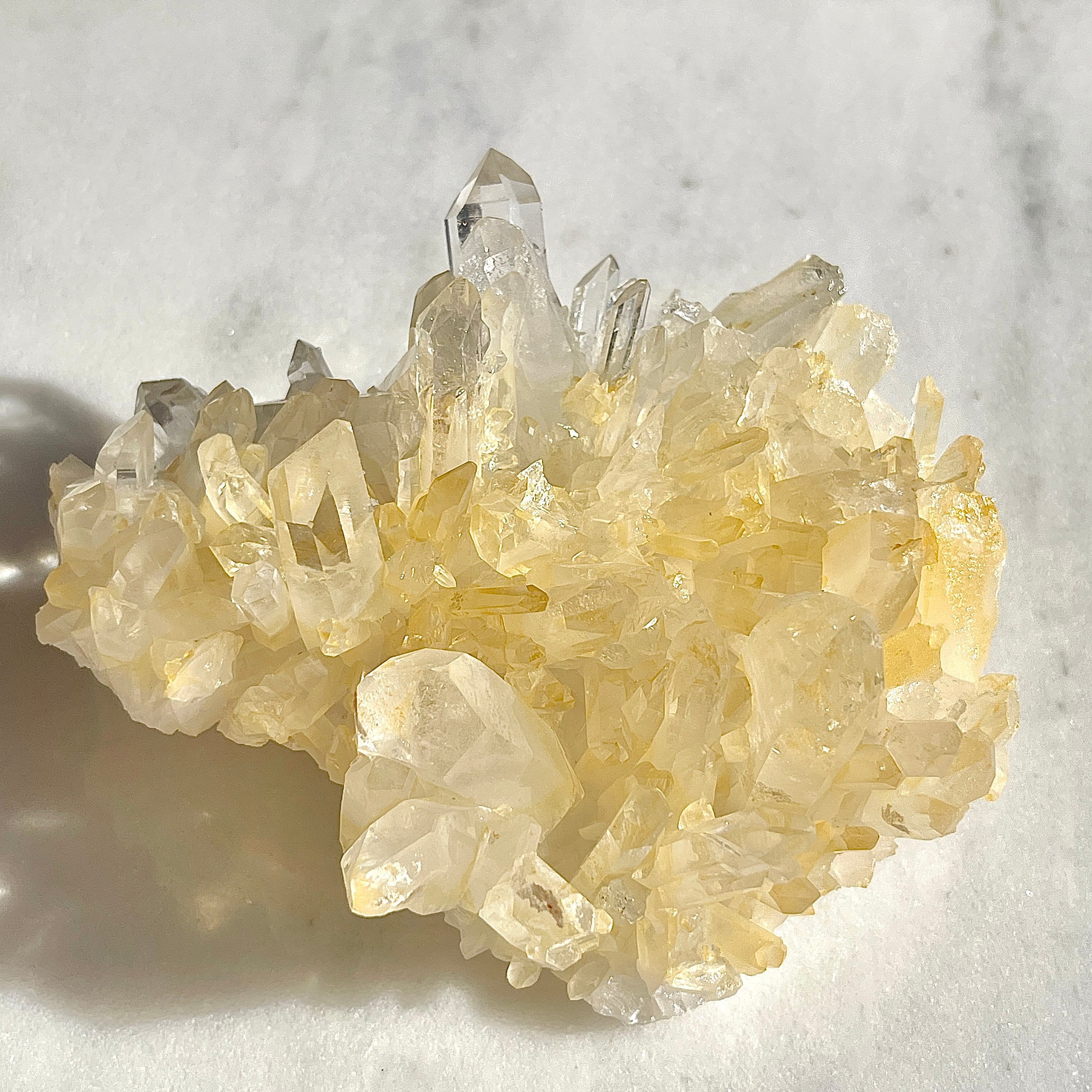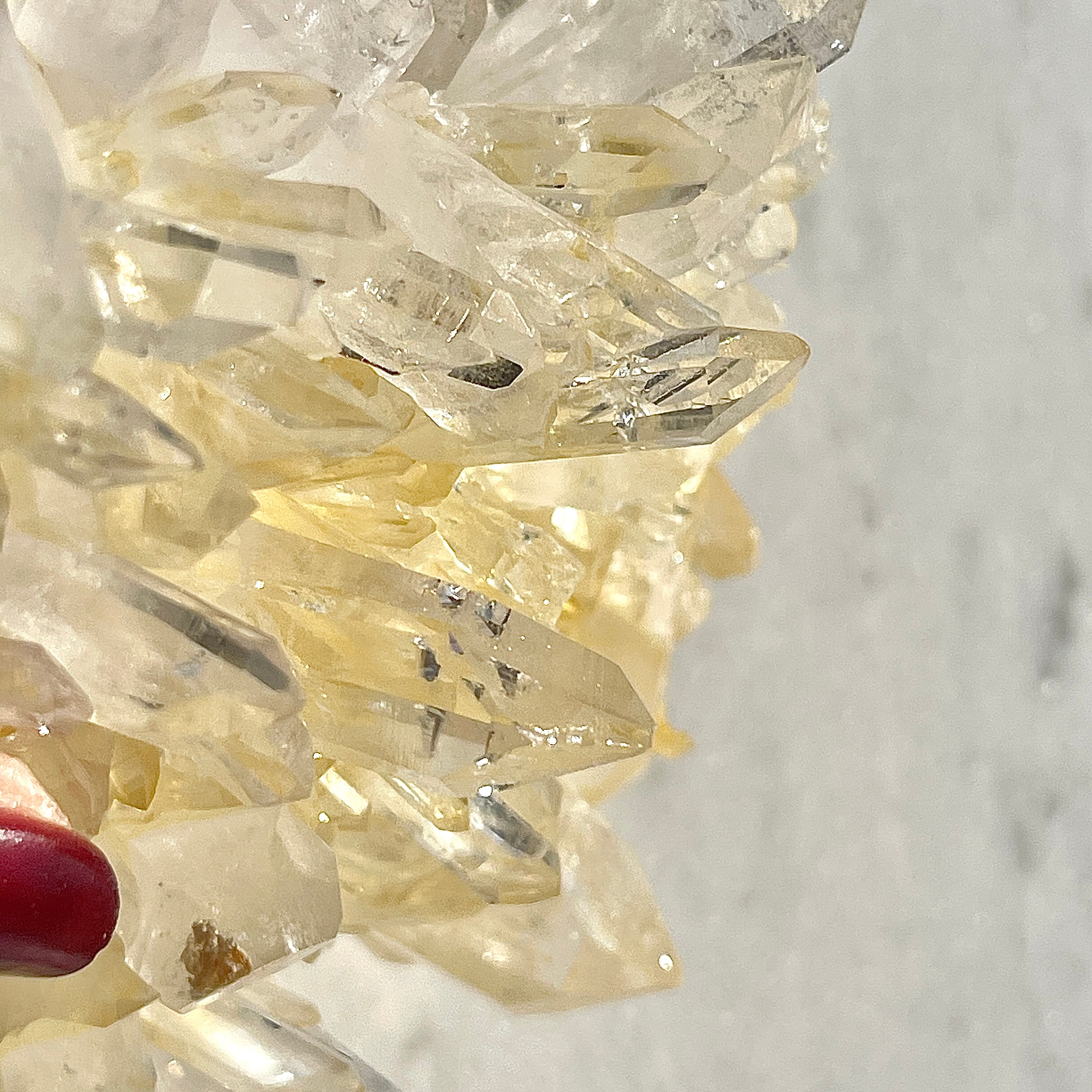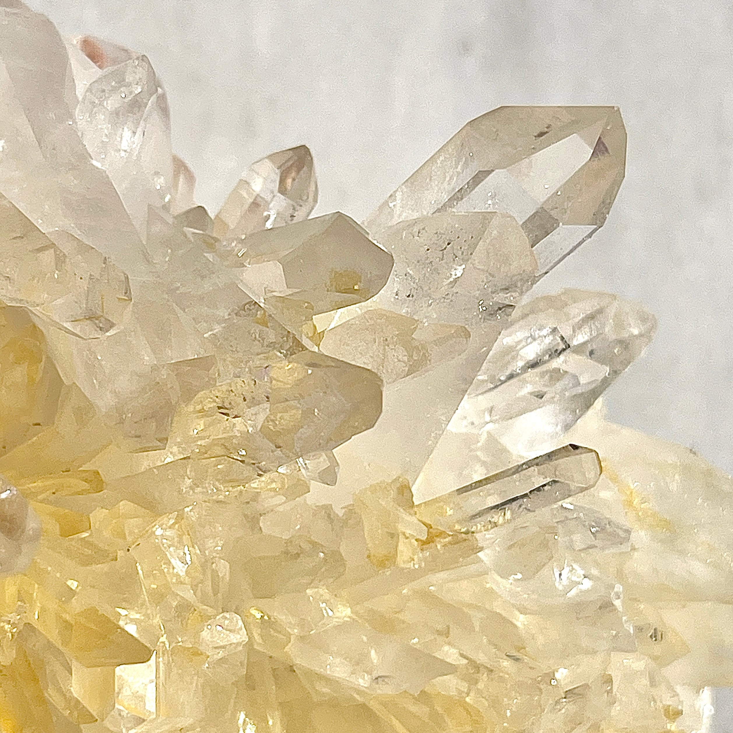 アーカンソー産の水晶クラスターは世界的にも美しい水晶の産地として有名ですが、他の水晶と違った特徴としては透明感が高く、ポイントのエッジが鋭いものが多いです。