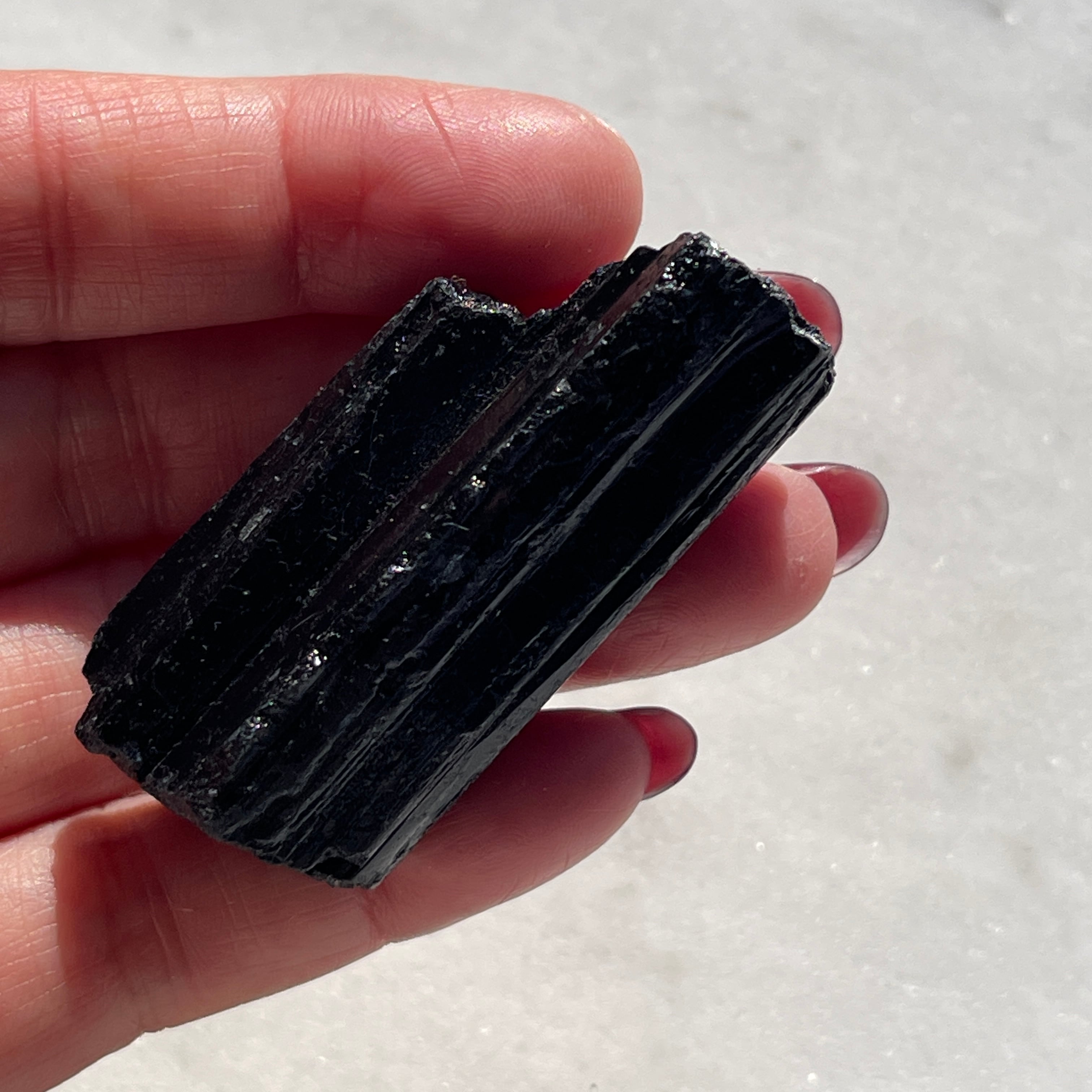 さらっとした感触のエネルギーのオニキスに対して、ブラックトルマリンは手にまとわりつくようなエネルギーを感じます。