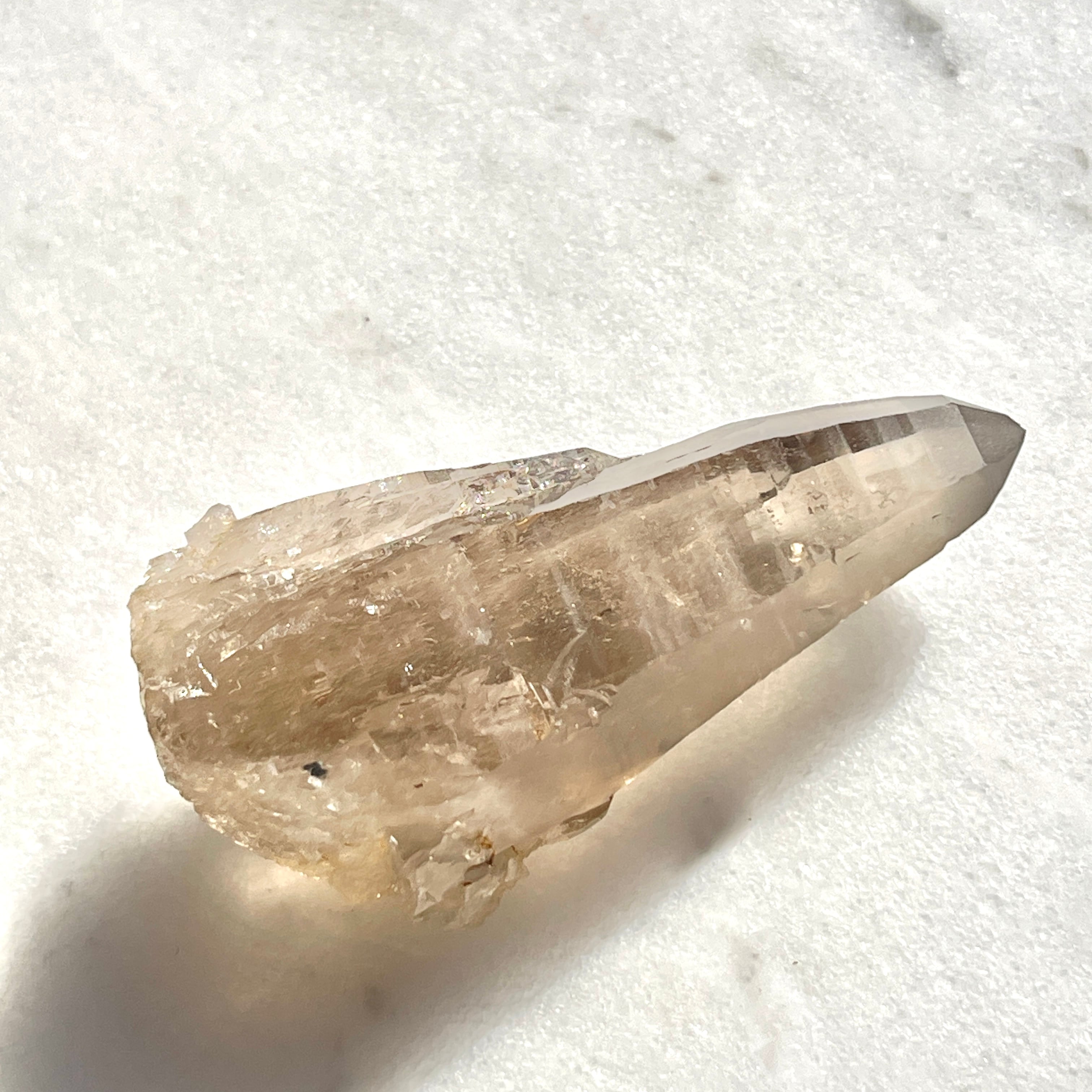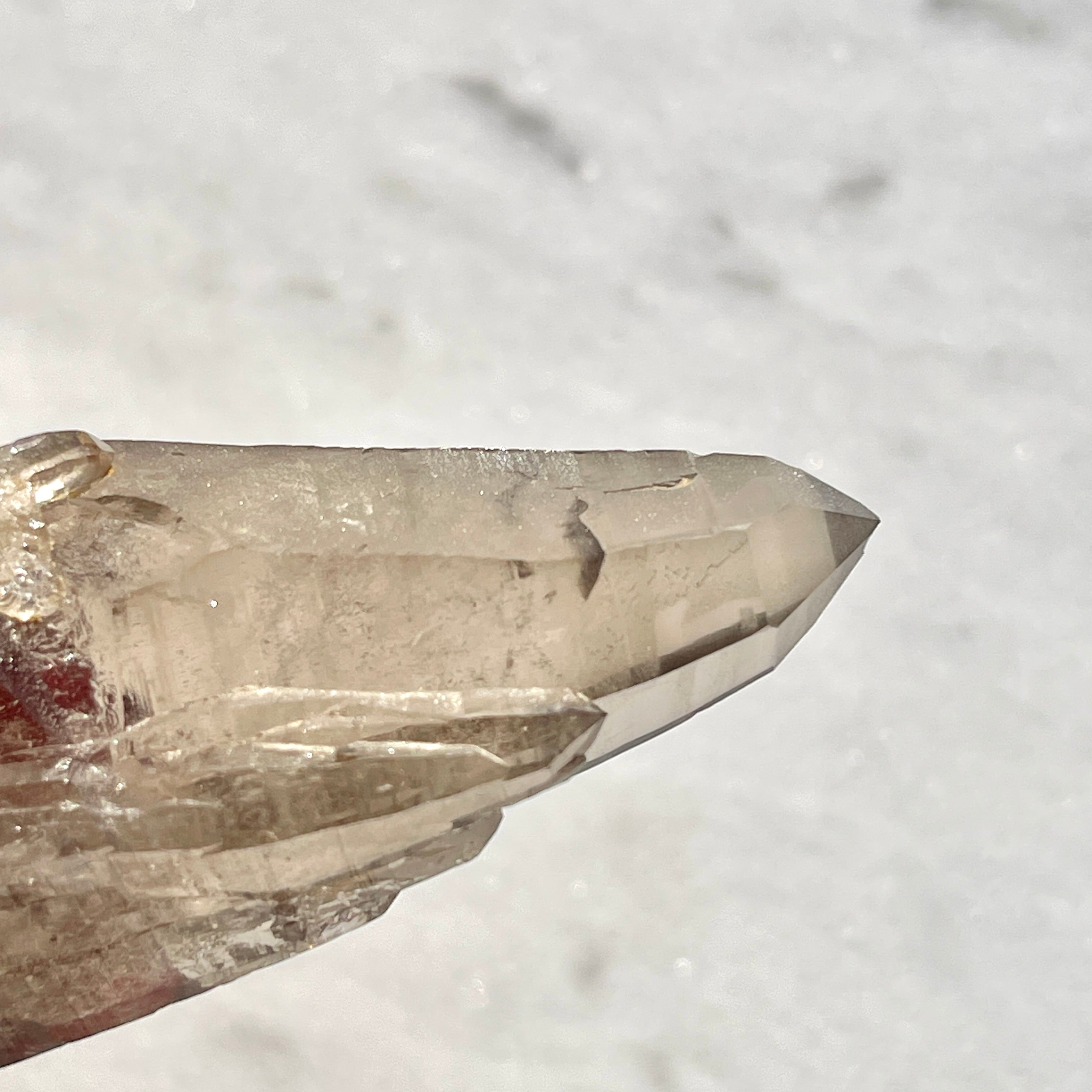 ハーキマーダイヤモンドに劣らない輝きを持ち、照り(光沢)が非常に強いのが特徴で、産出地は8-9ヶ月雪に覆われ、危険なため「水晶未亡人」という言葉もあるほど採掘が困難で知られています。それだけ、希少であるということです。