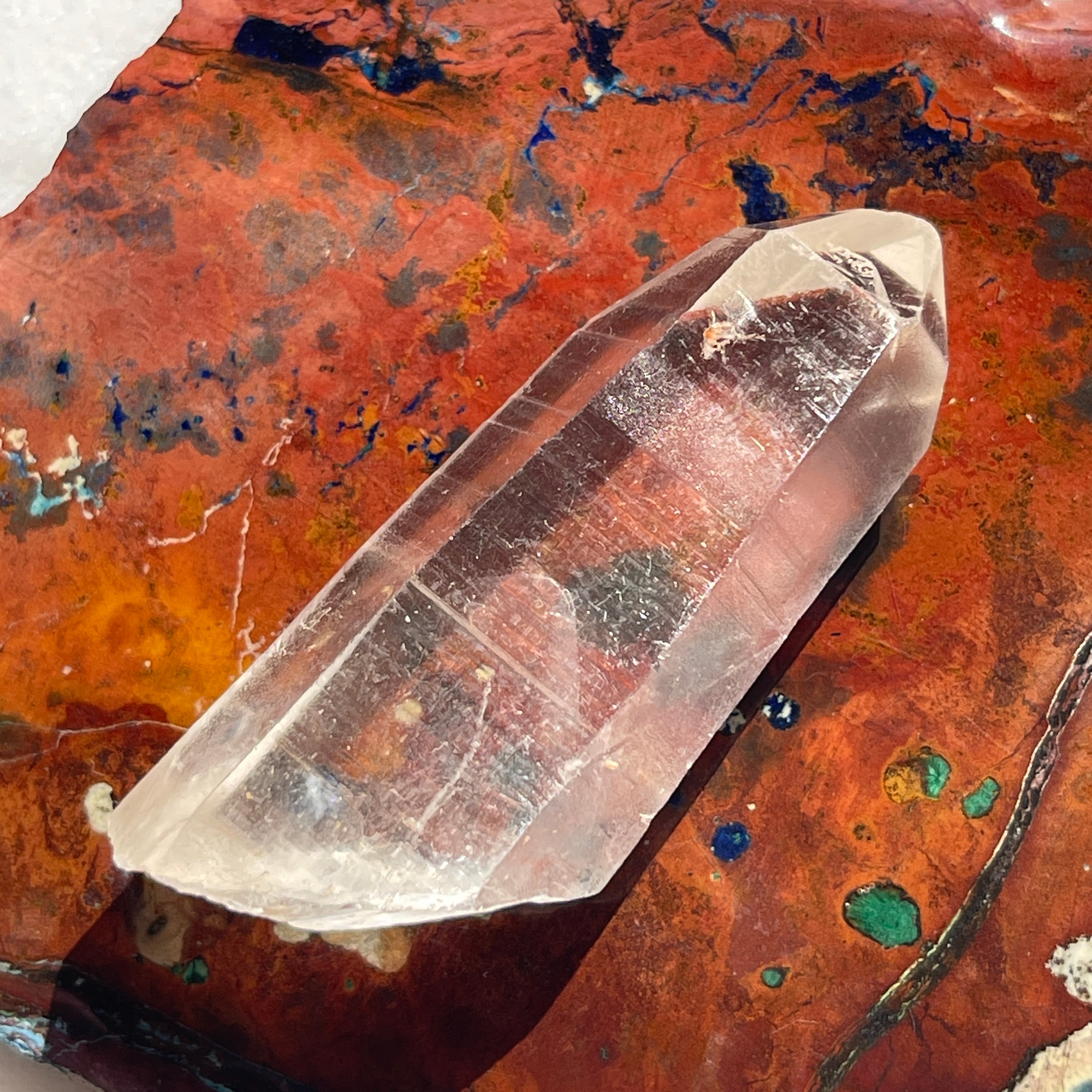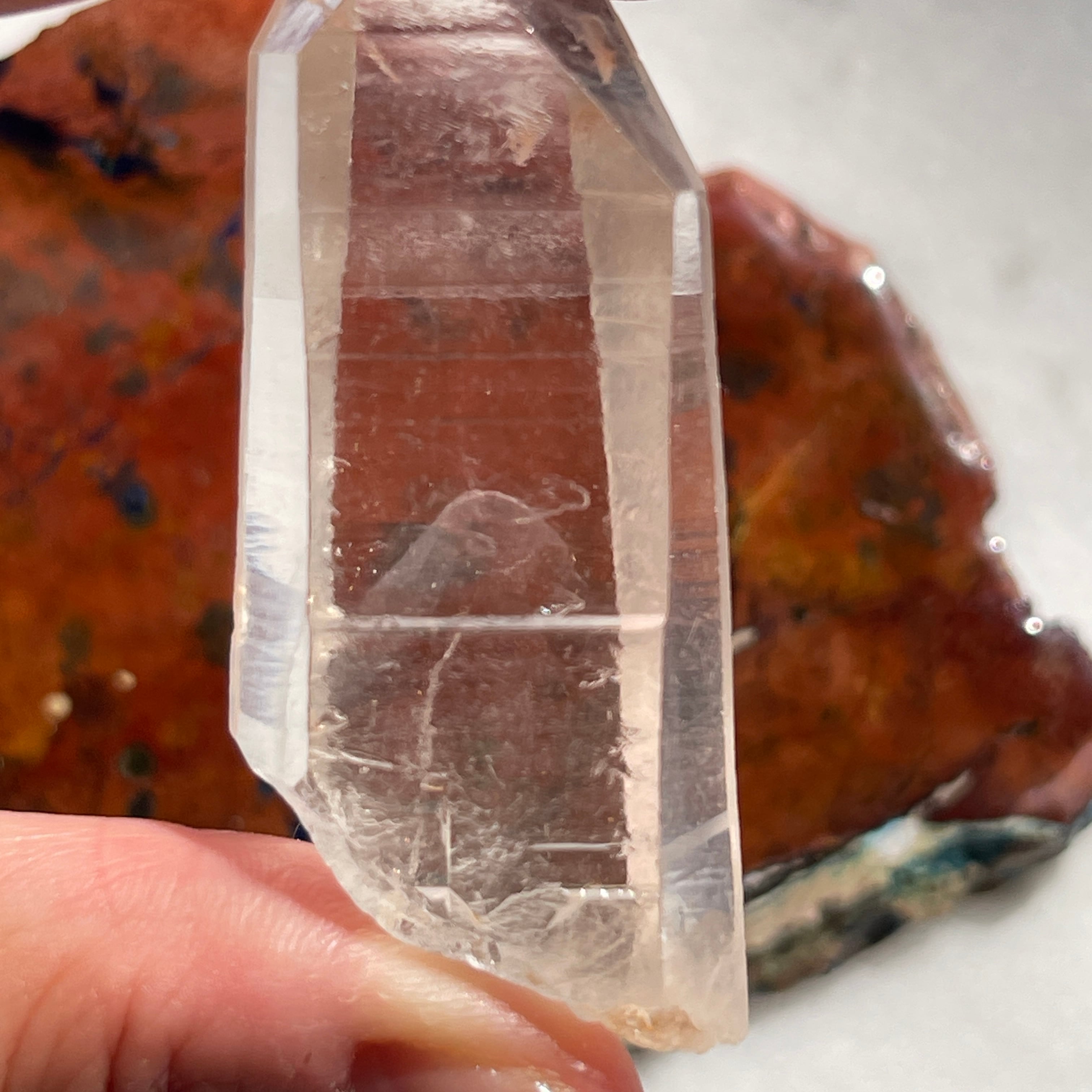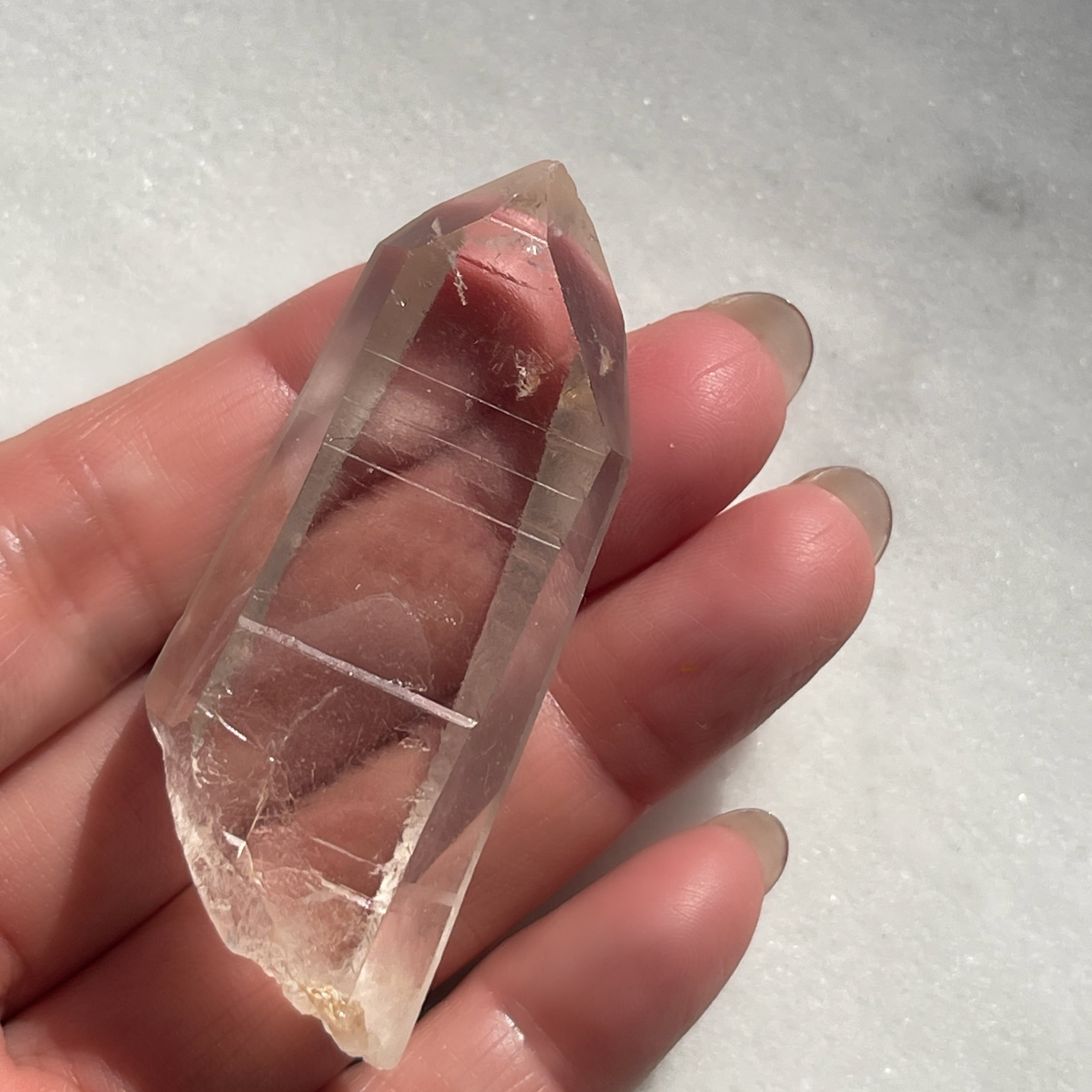 また、7角形のファセット、裏側が3角形のファセットを持ち(ファセット=面)こちらもレアです。「チャネリングクリスタル」と呼ばれる特殊な水晶でマスタークリスタルのひとつです。