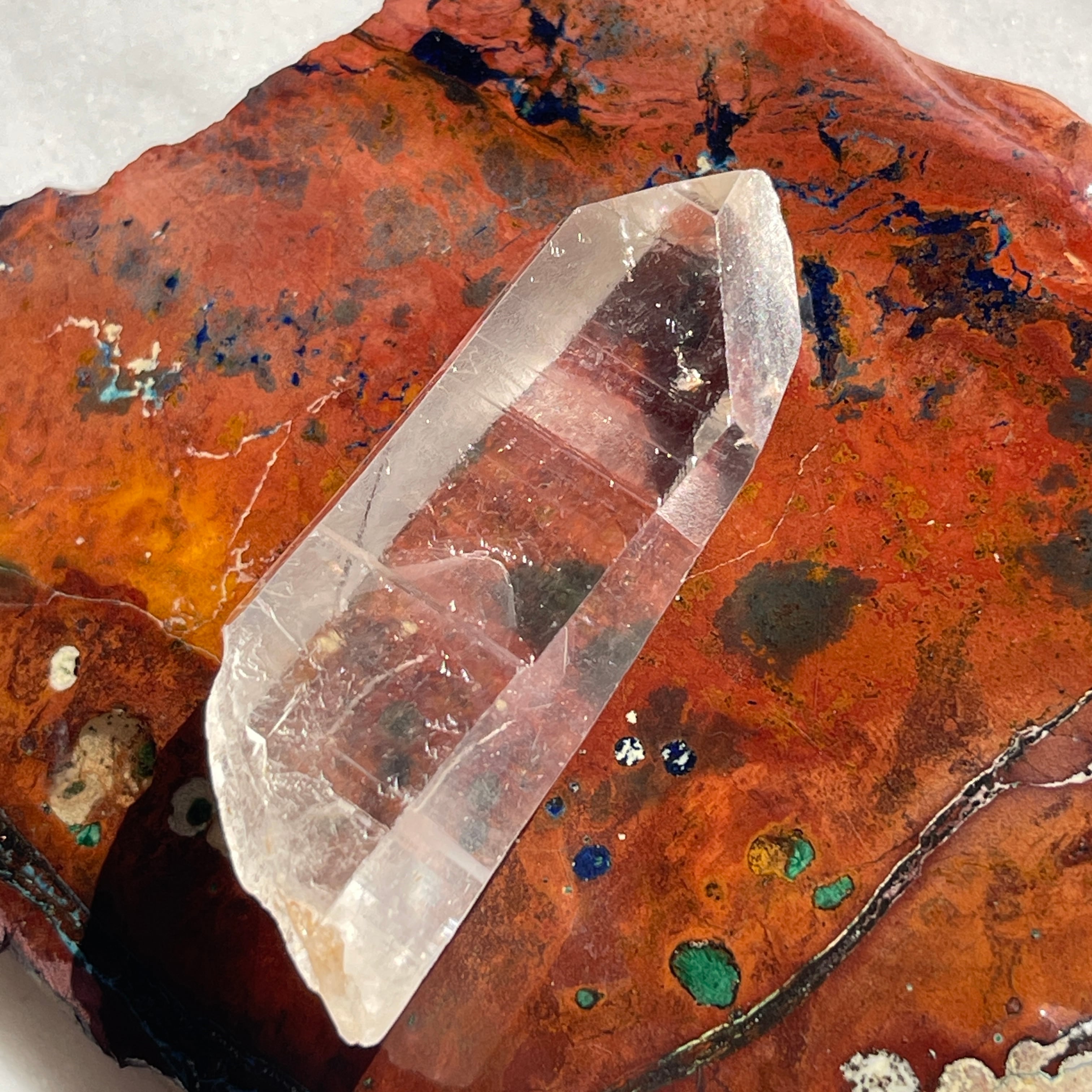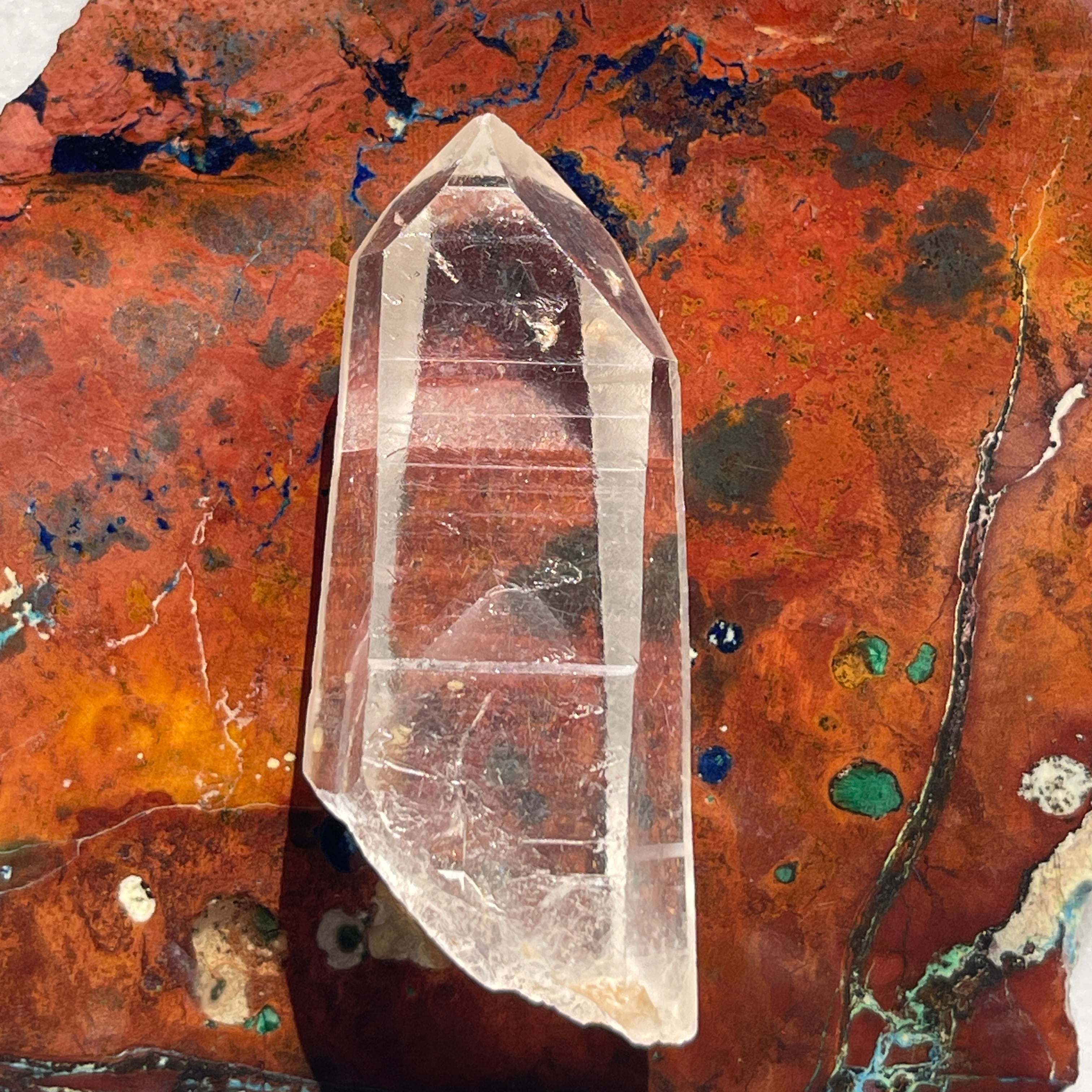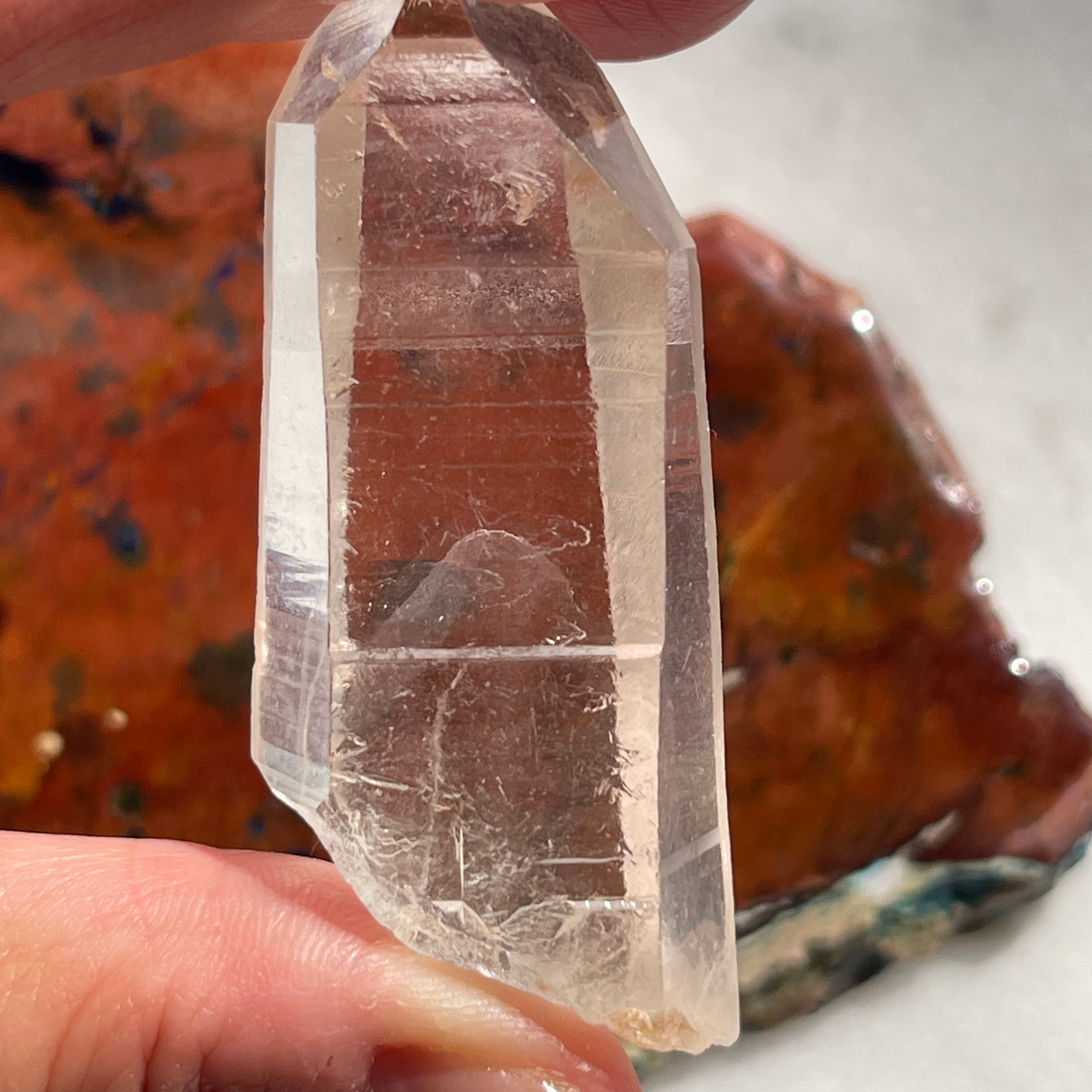 また、7角形のファセット、裏側が3角形のファセットを持ち(ファセット=面)こちらもレアです。「チャネリングクリスタル」と呼ばれる特殊な水晶でマスタークリスタルのひとつです。