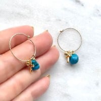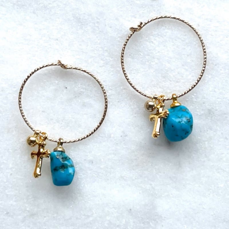 ターコイズの原石をシンプルにフープピアスにしました。
