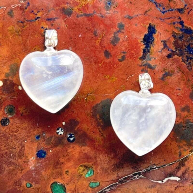 • 【特別販売】【超美石】レインボームーンストーン ハート ペンダント(チェーンつき) 2393