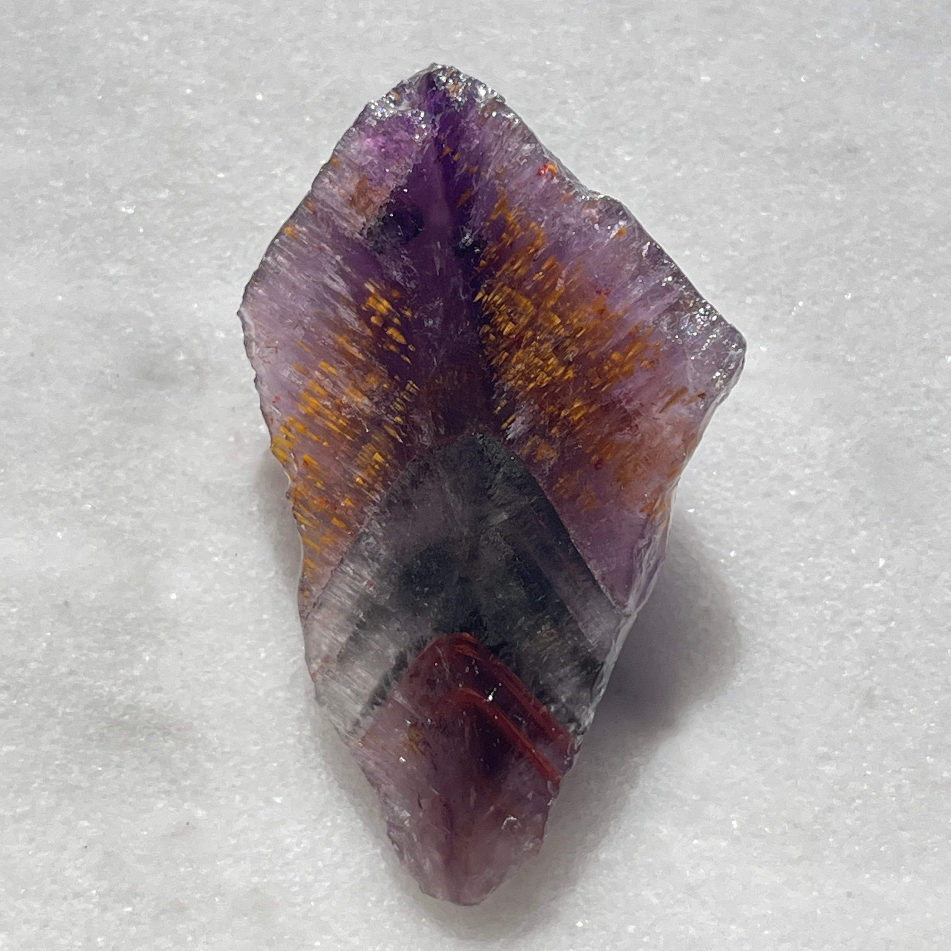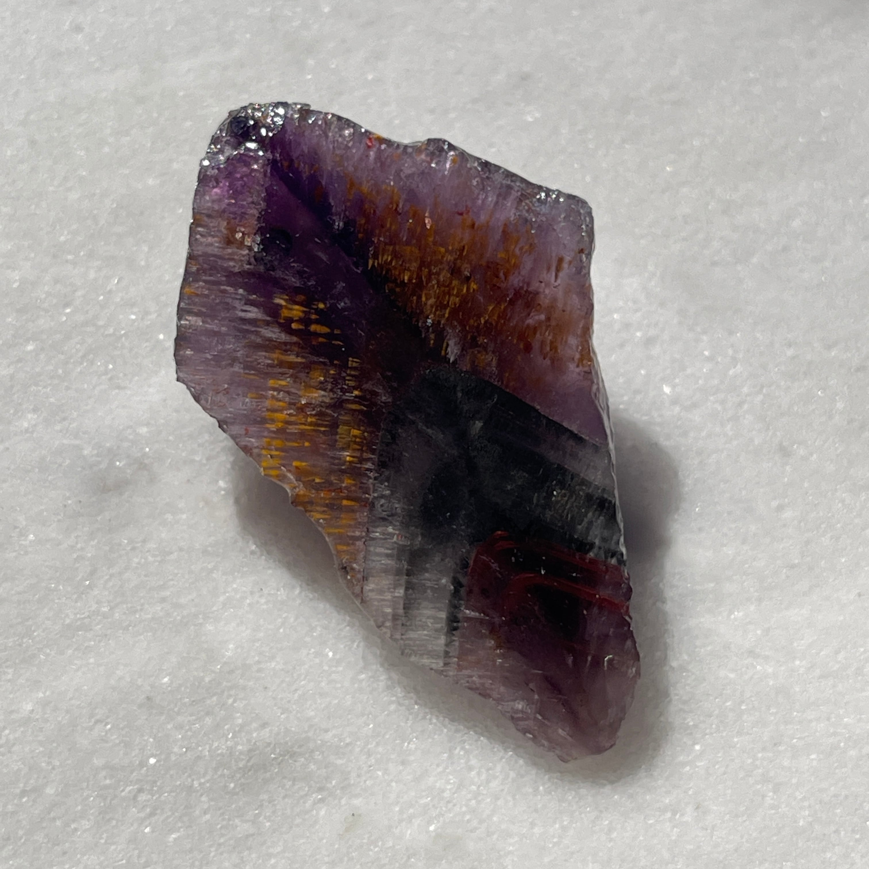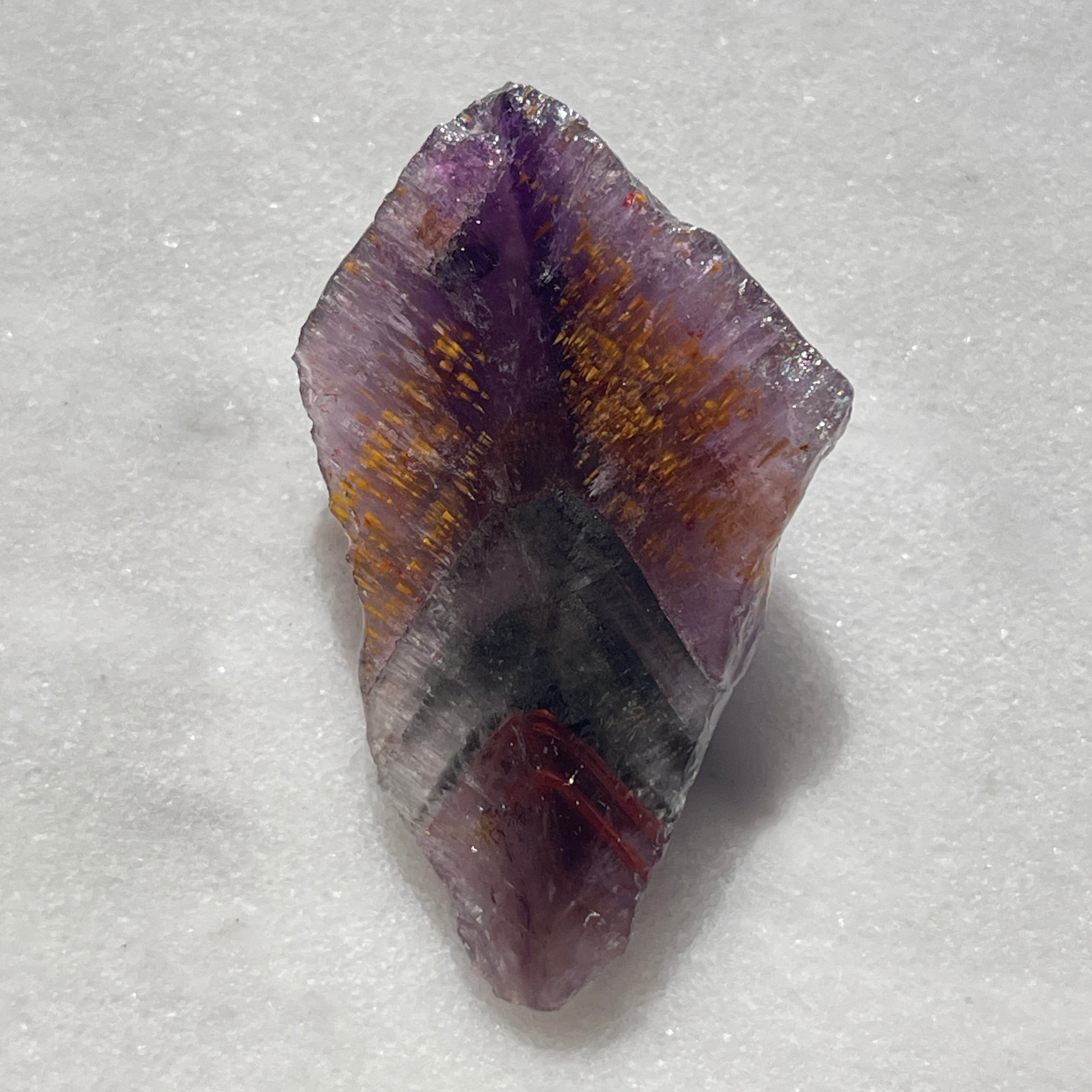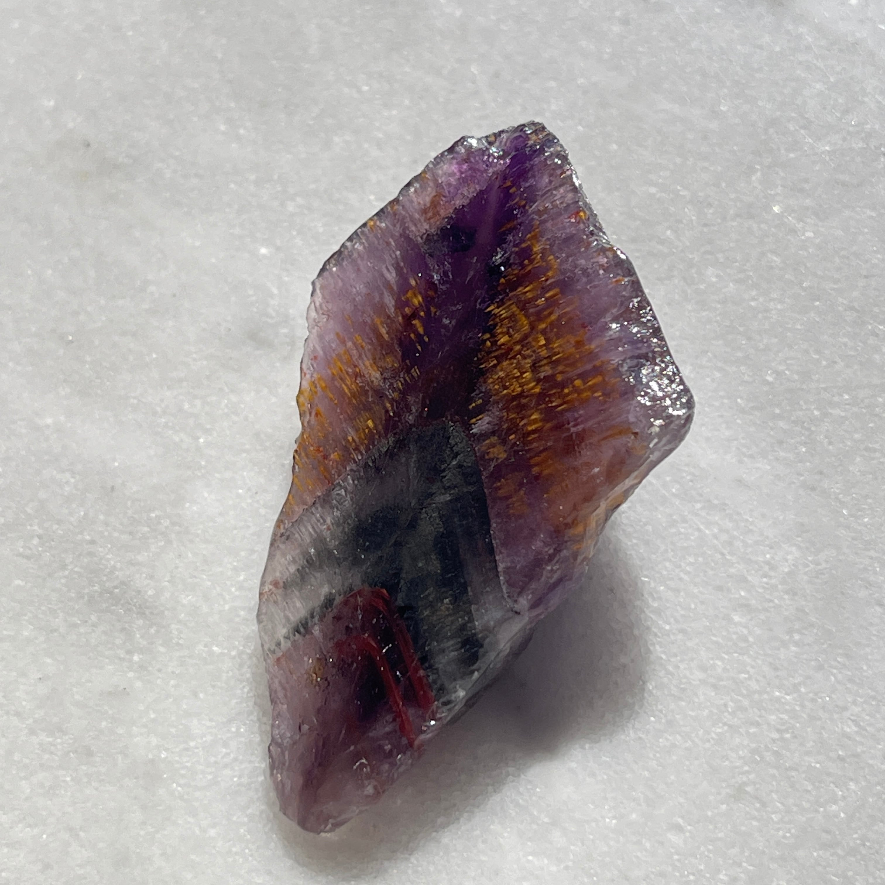・チタン石・カコクセナイト・レピドクロサイト・ヘマタイト・マグネタイト・パイライト・ゲーサイト・軟マンガン鉱・金・銀・プラチナ・ニッケル・銅・鉄・リモナイト・スファラライト・銅藍・ガイアライト・黄銅鉱・アホー石・エピドート・ボーマイト・ルチルです。母岩となる石にこれが含まれています。