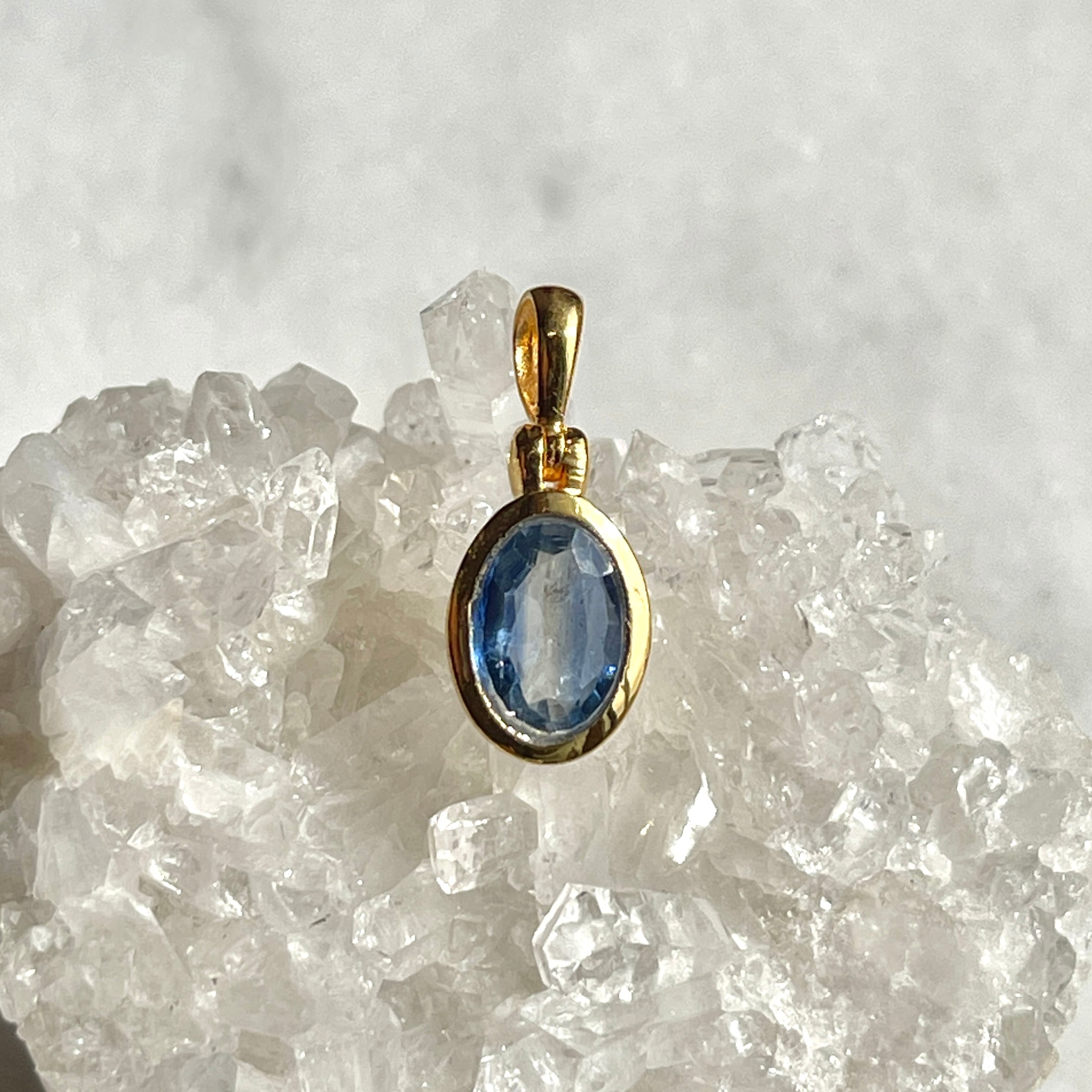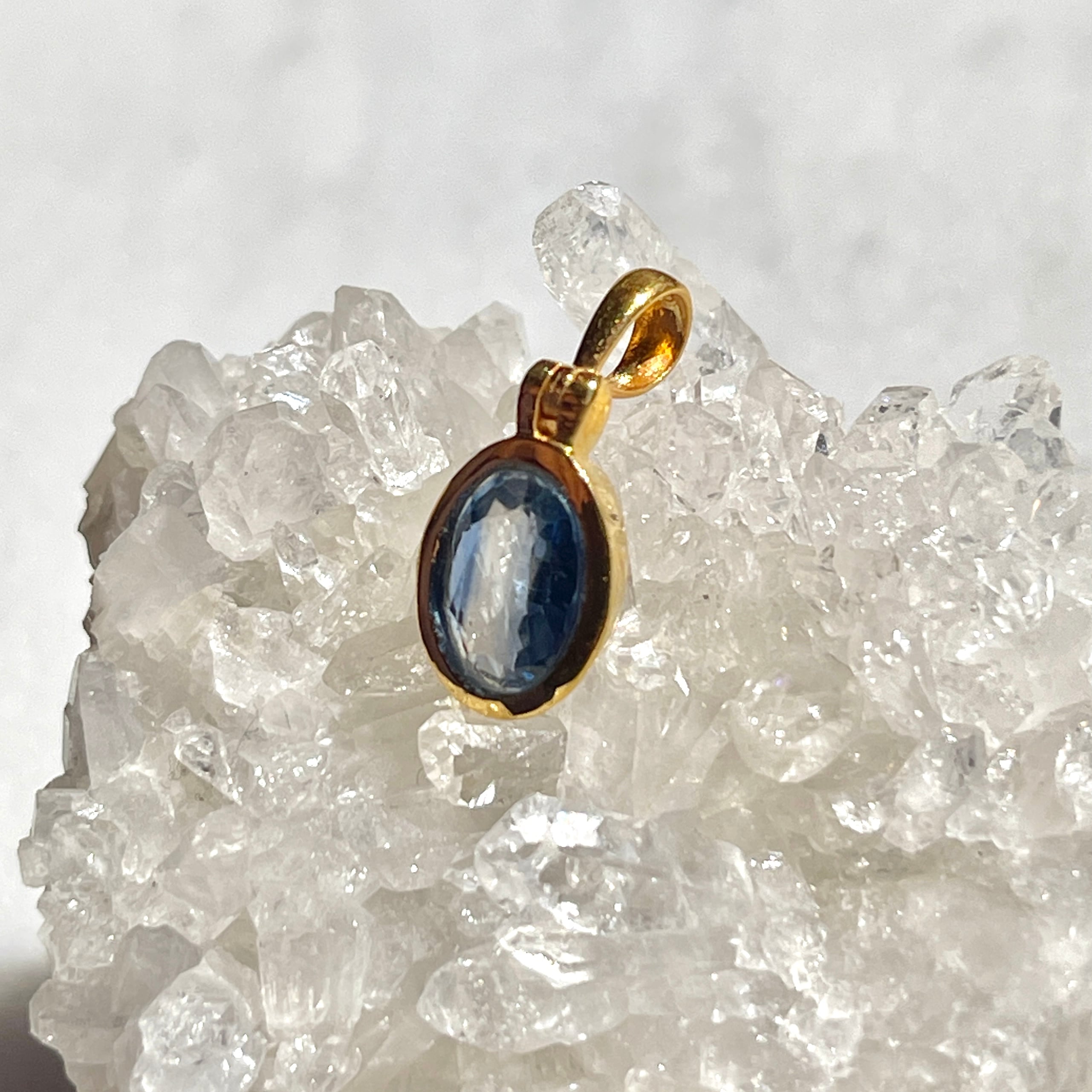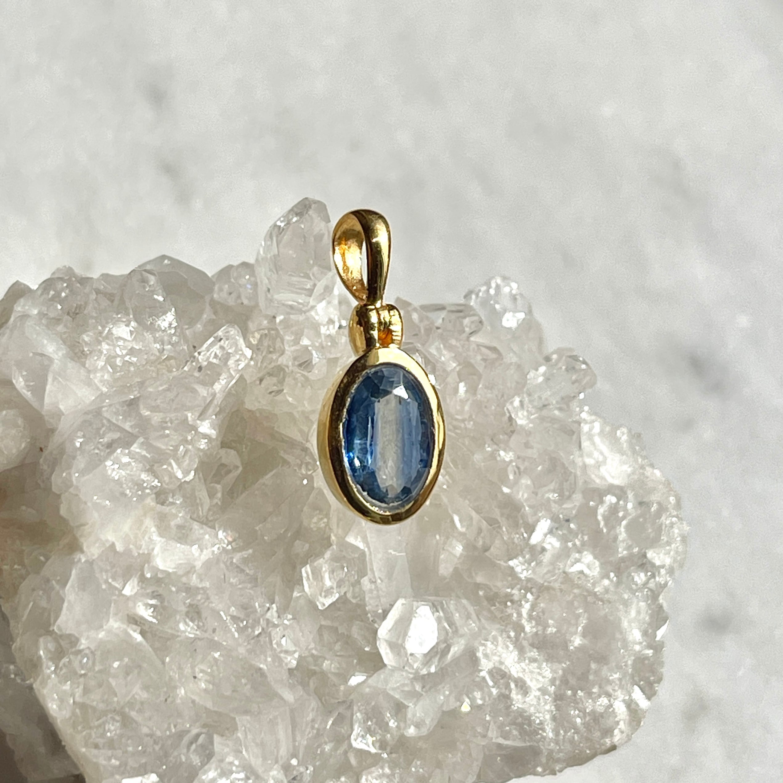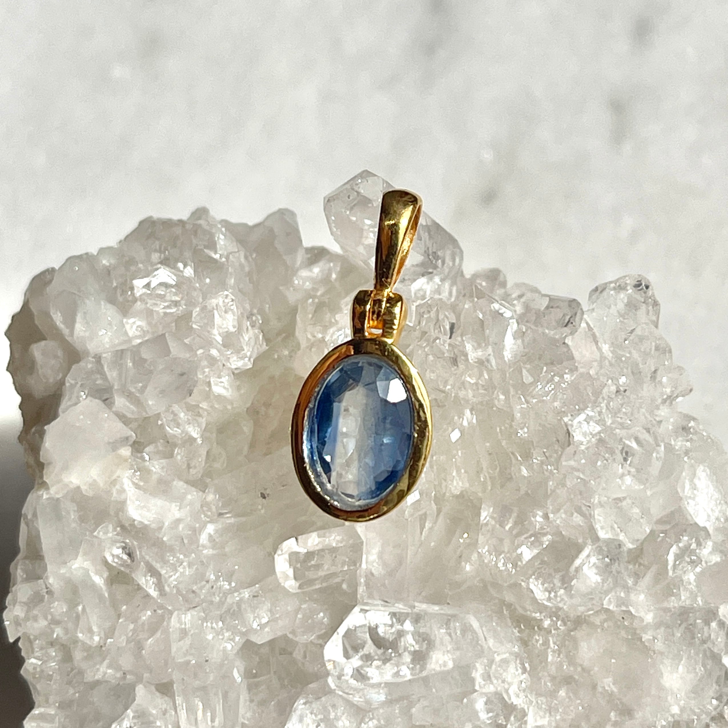 ケニア産らしい透明感溢れるカイヤナイトは光にあてると向こう側が透けて見えます。