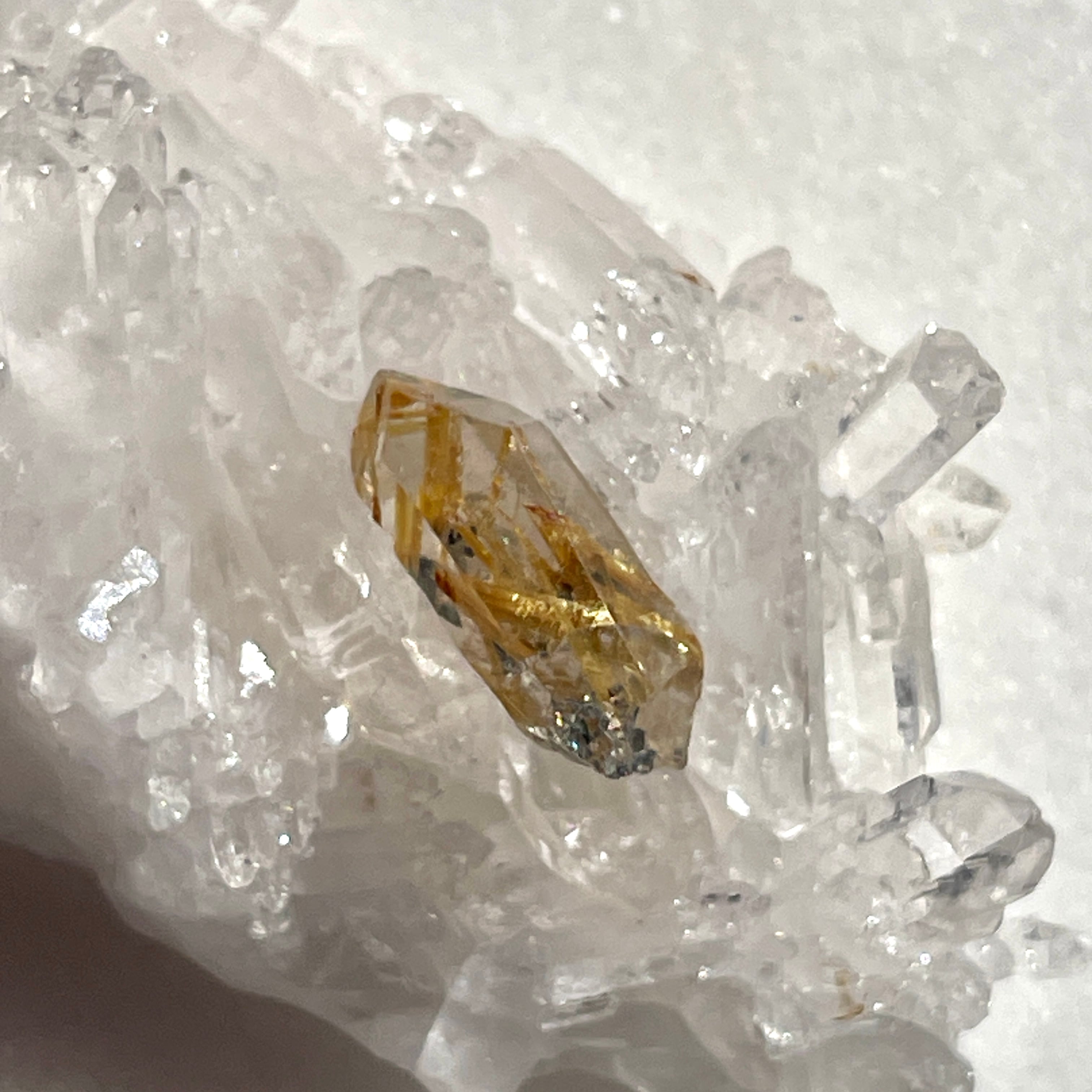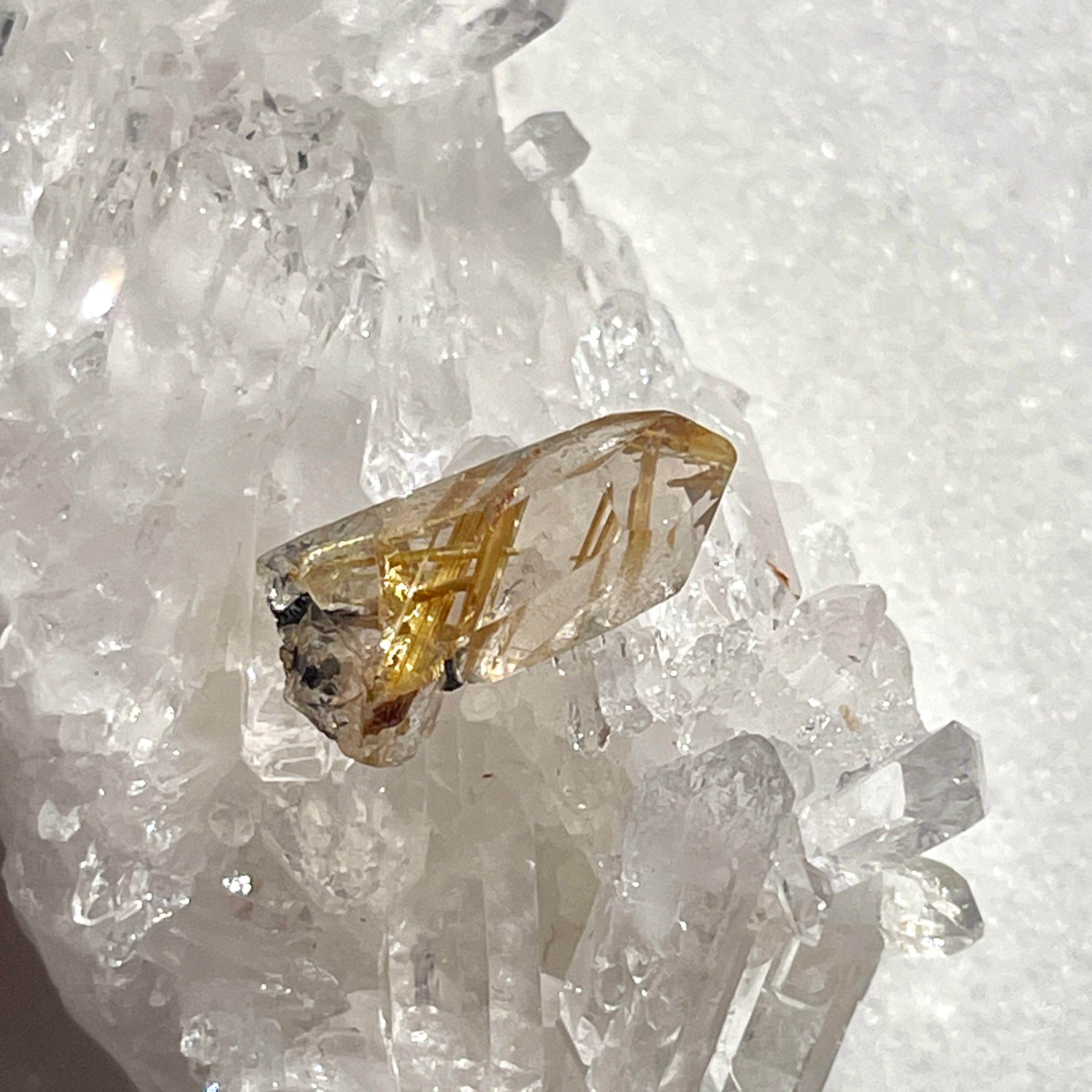 ルチルクォーツと言えばおなじみ「金運」の石として知られています。パワーストーンにあまり詳しくない人でも、「ルチルクォーツの効果だけはわかった」とおっしゃる方に何人も会ってきました。感性の鋭い方ですと、この石は触った瞬間にピリピリと毛虫に刺されるような皮膚感覚を覚えるような石です。視覚からは、見ていて目が疲れるような感覚(強い光を長時間見た後のような)があります。