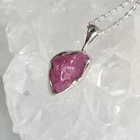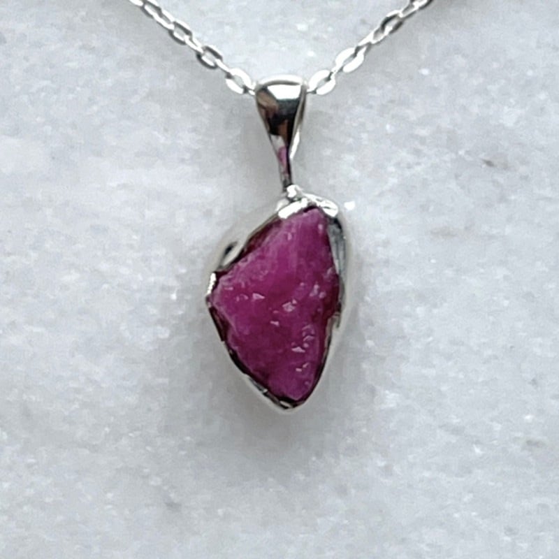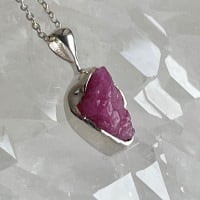 こちらは美しいルビーの原石ペンダントです。もちろん、天然の色です。