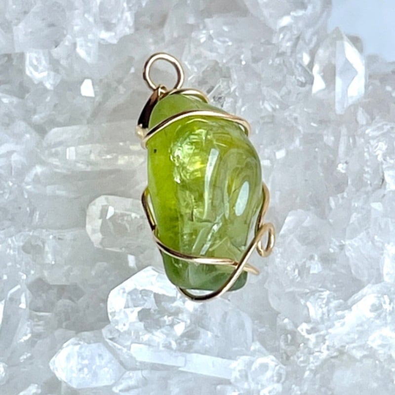 【超美石】ペリドット 原石 18金 ペンダント (虹入り) 5915