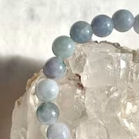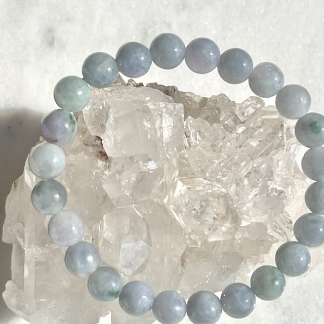 この子のような白翡翠というよりもブルー寄りの青味がかった色は濃淡は石によりますが総称して「青翡翠」と呼ばれます。