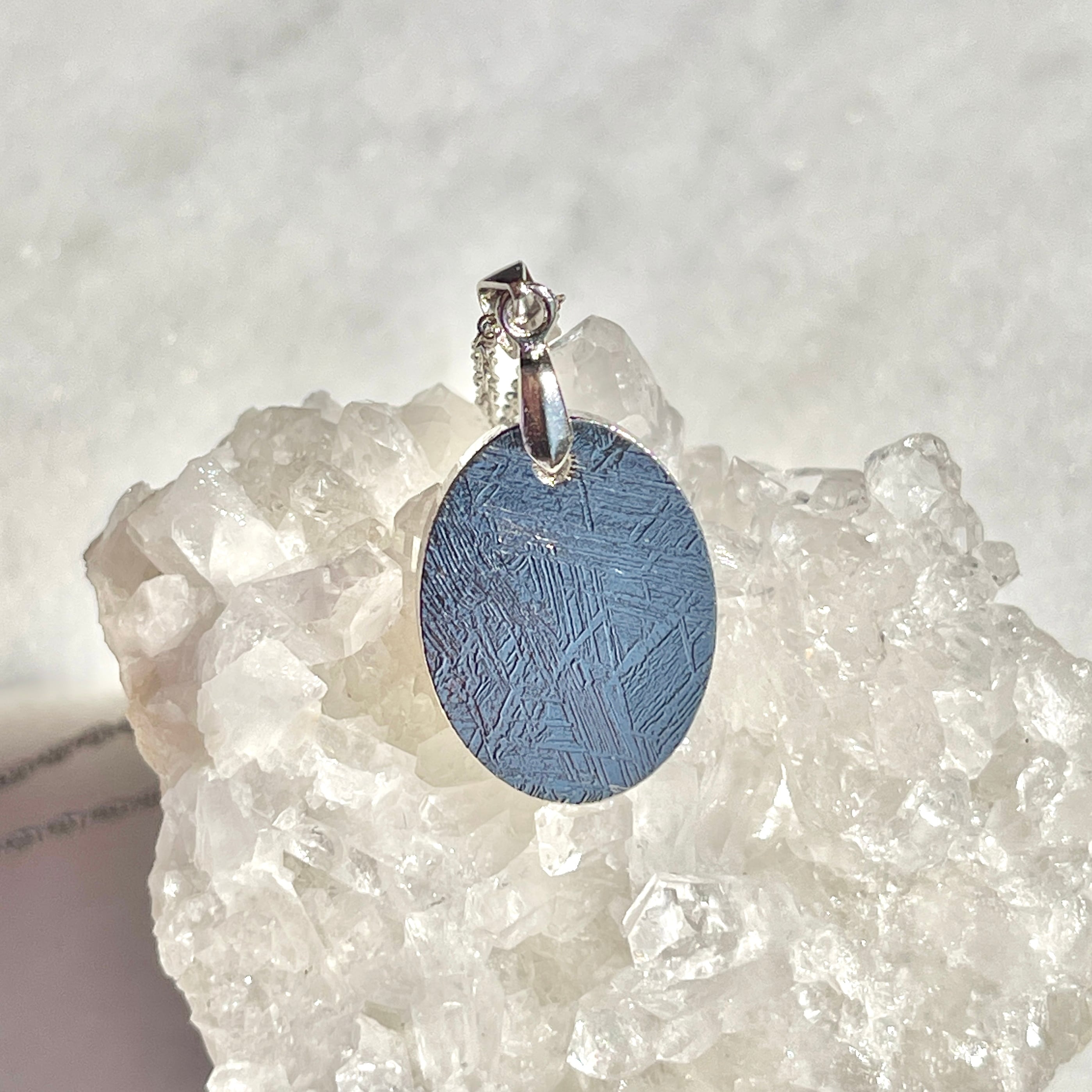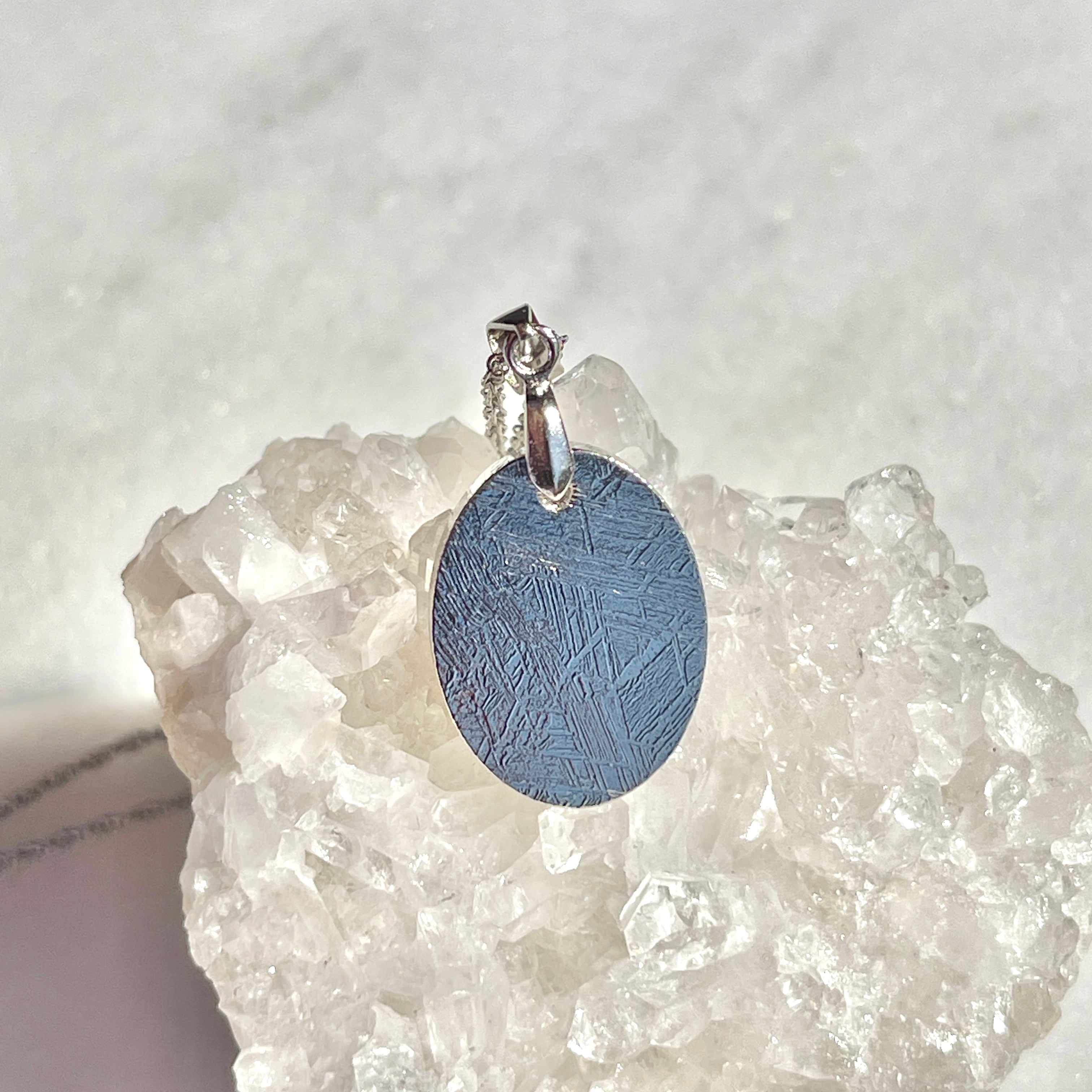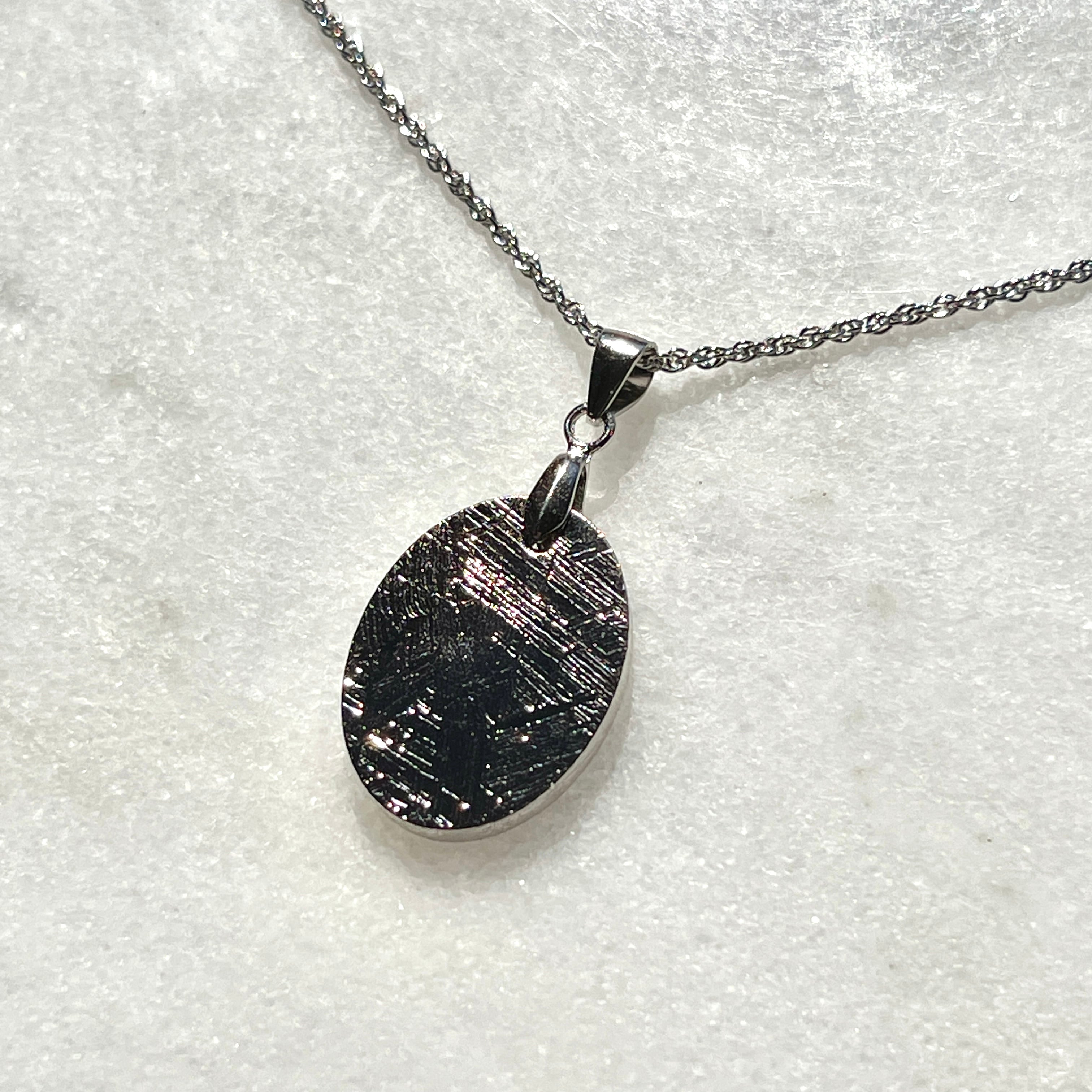 【レア】【超美石】メテオライト ペンダントトップ(オーバル型) (チェーンつき) 3142