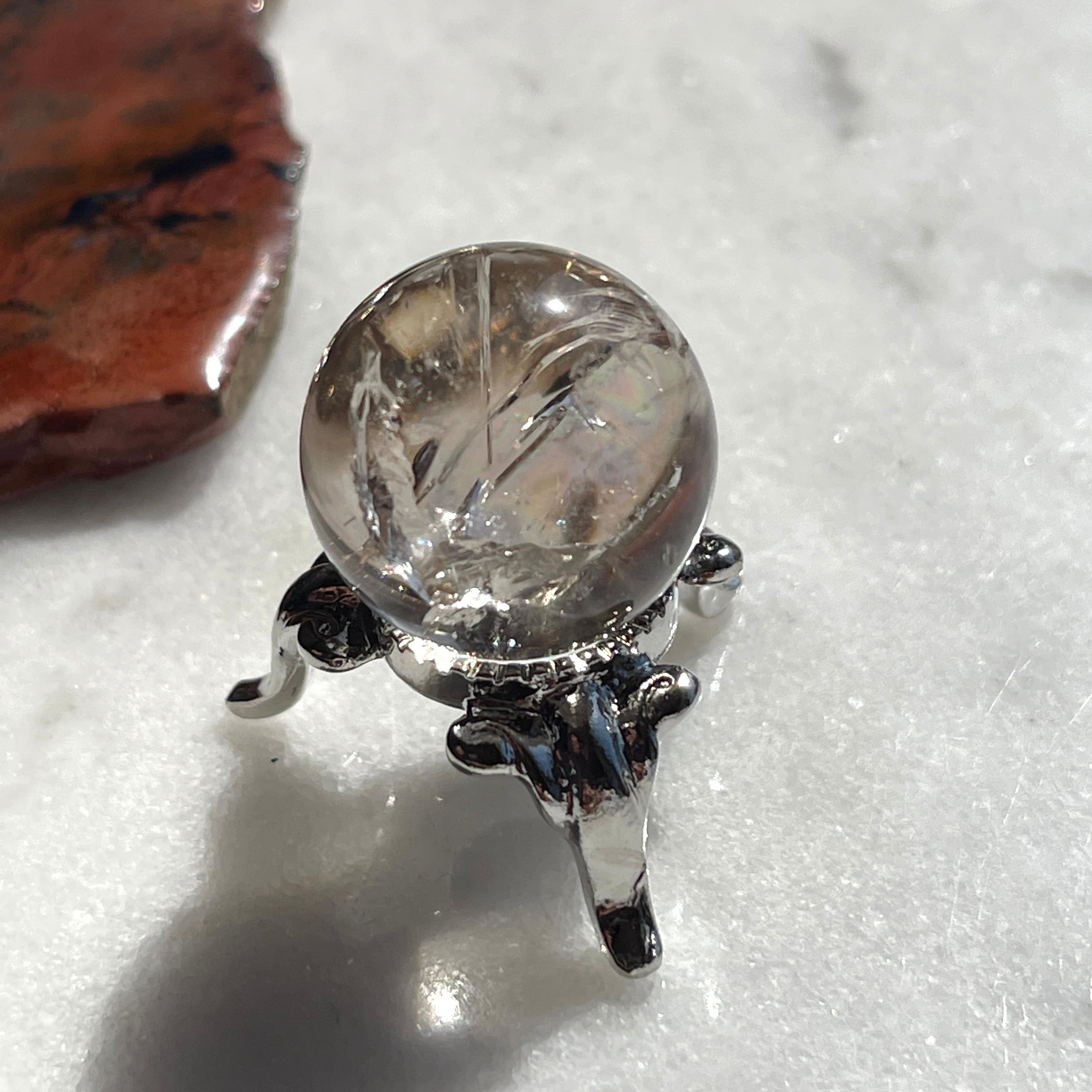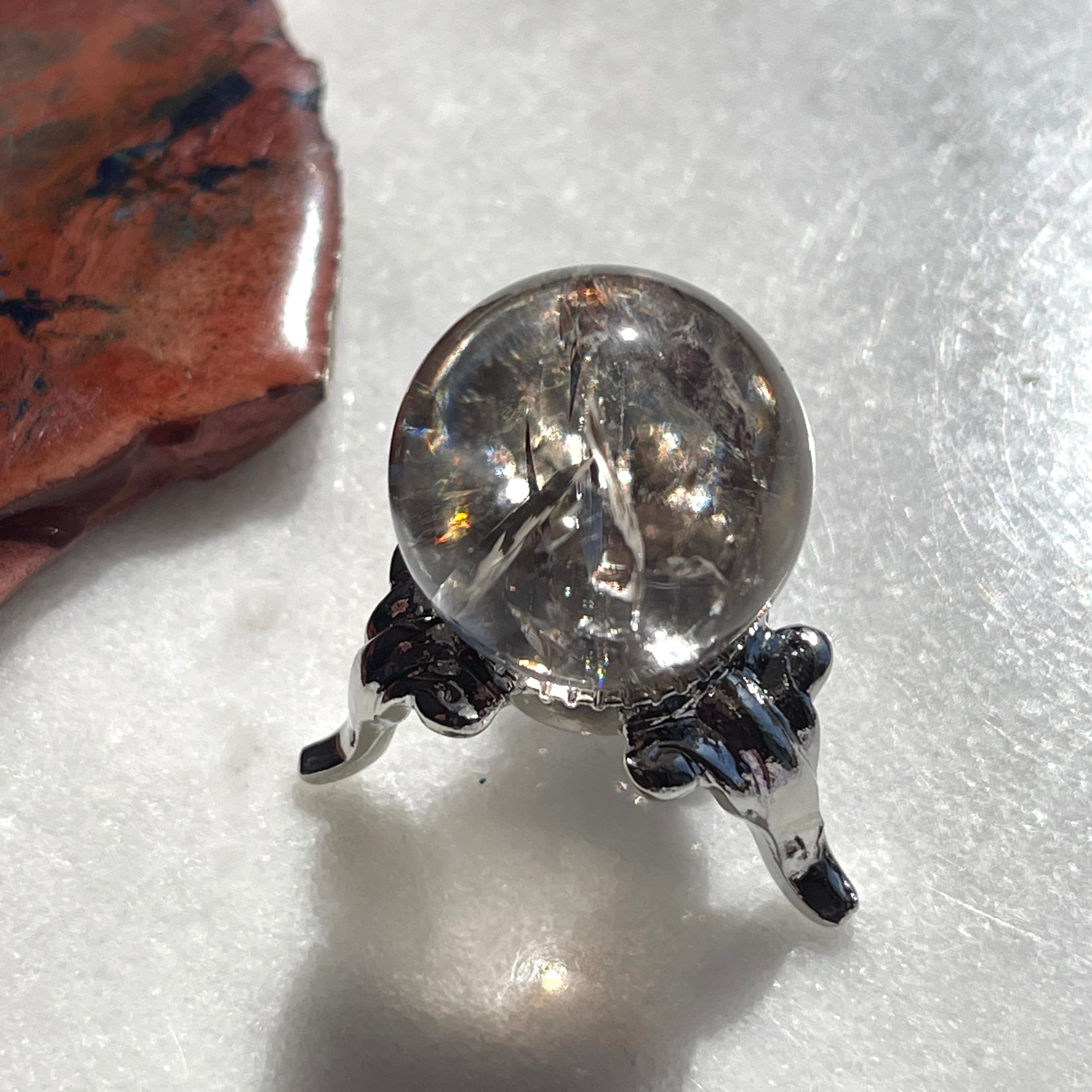 虹入りのスモーキークォーツの丸玉です。