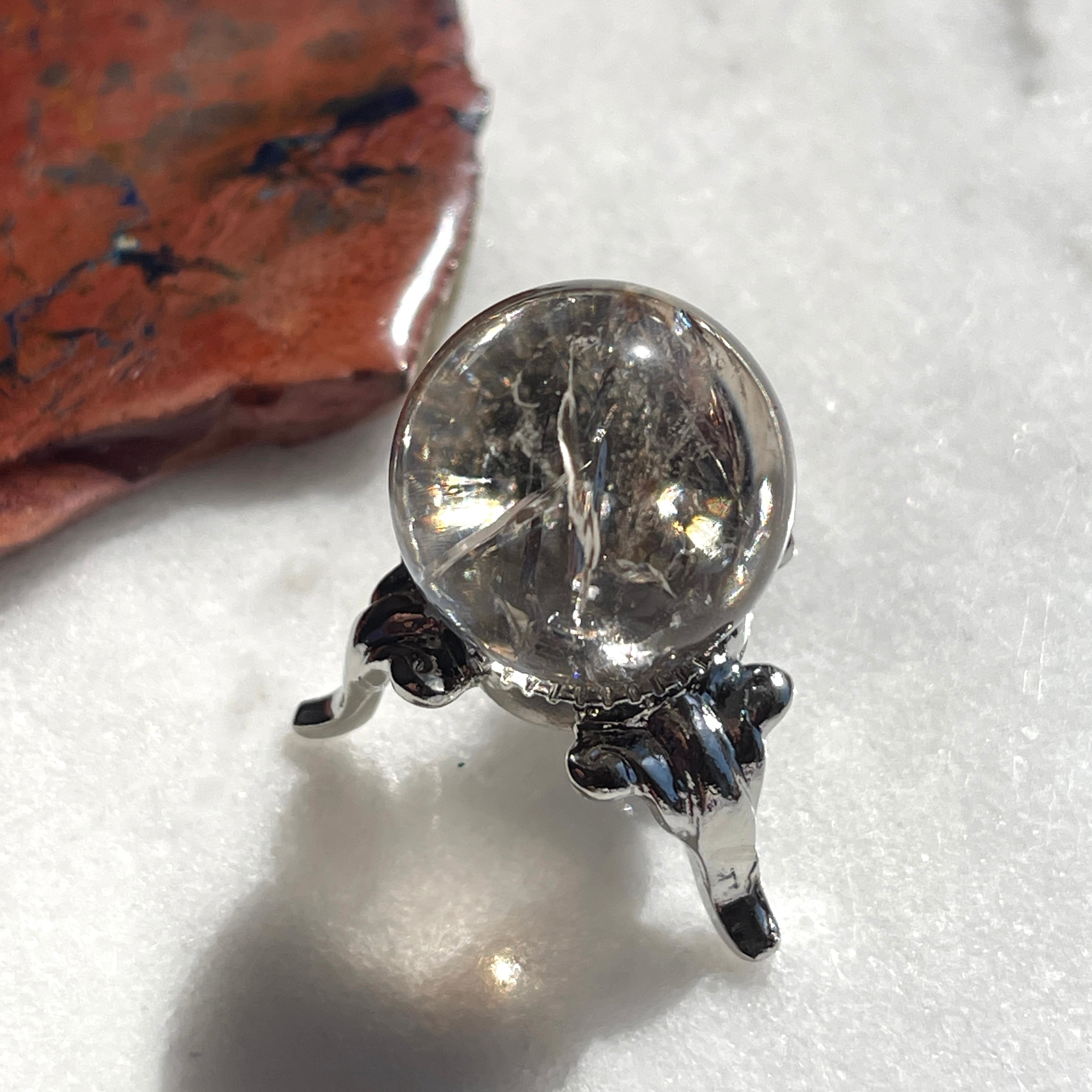 【訳アリ】【超美石】スモーキークォーツ 丸玉 (虹入り) (台座つき) 3159